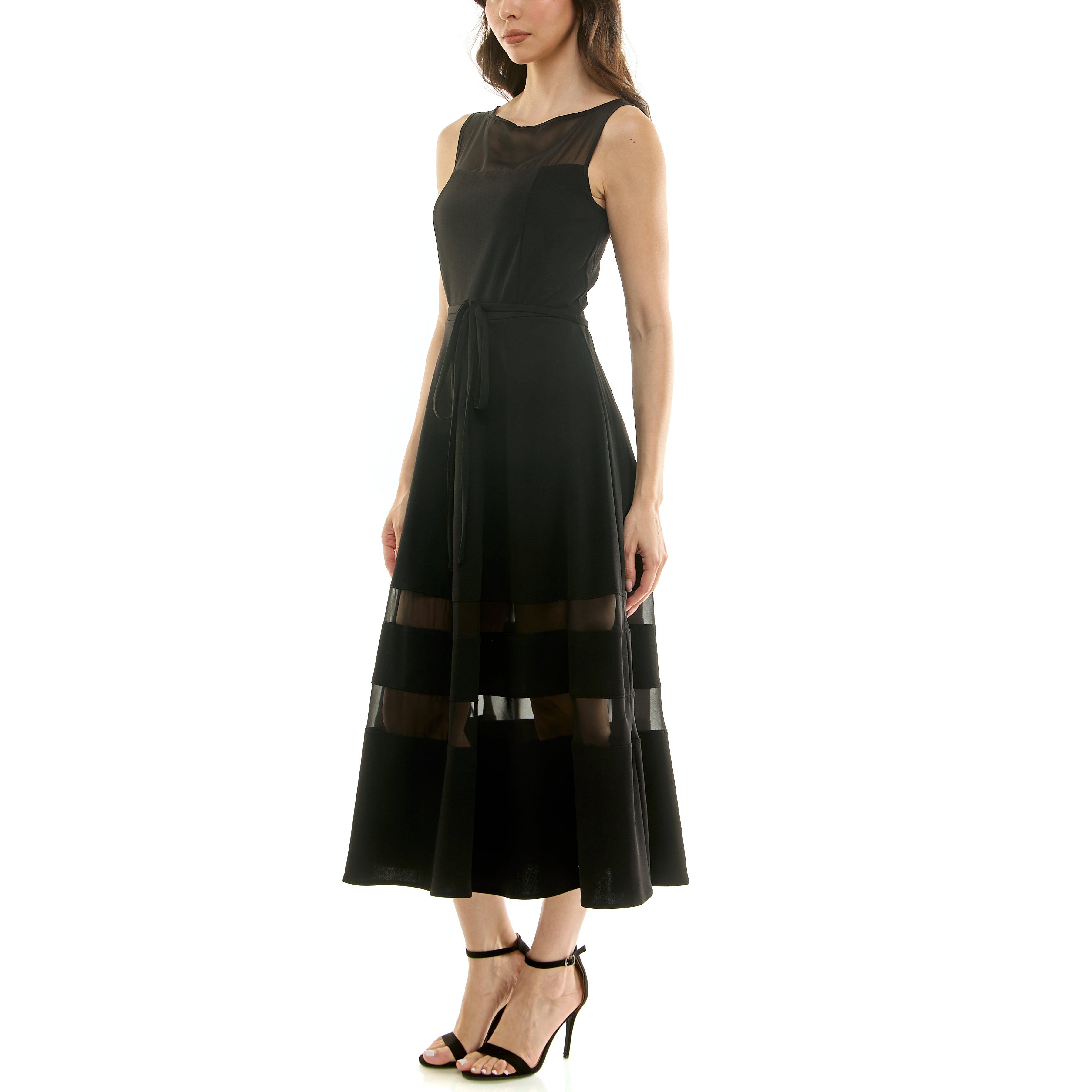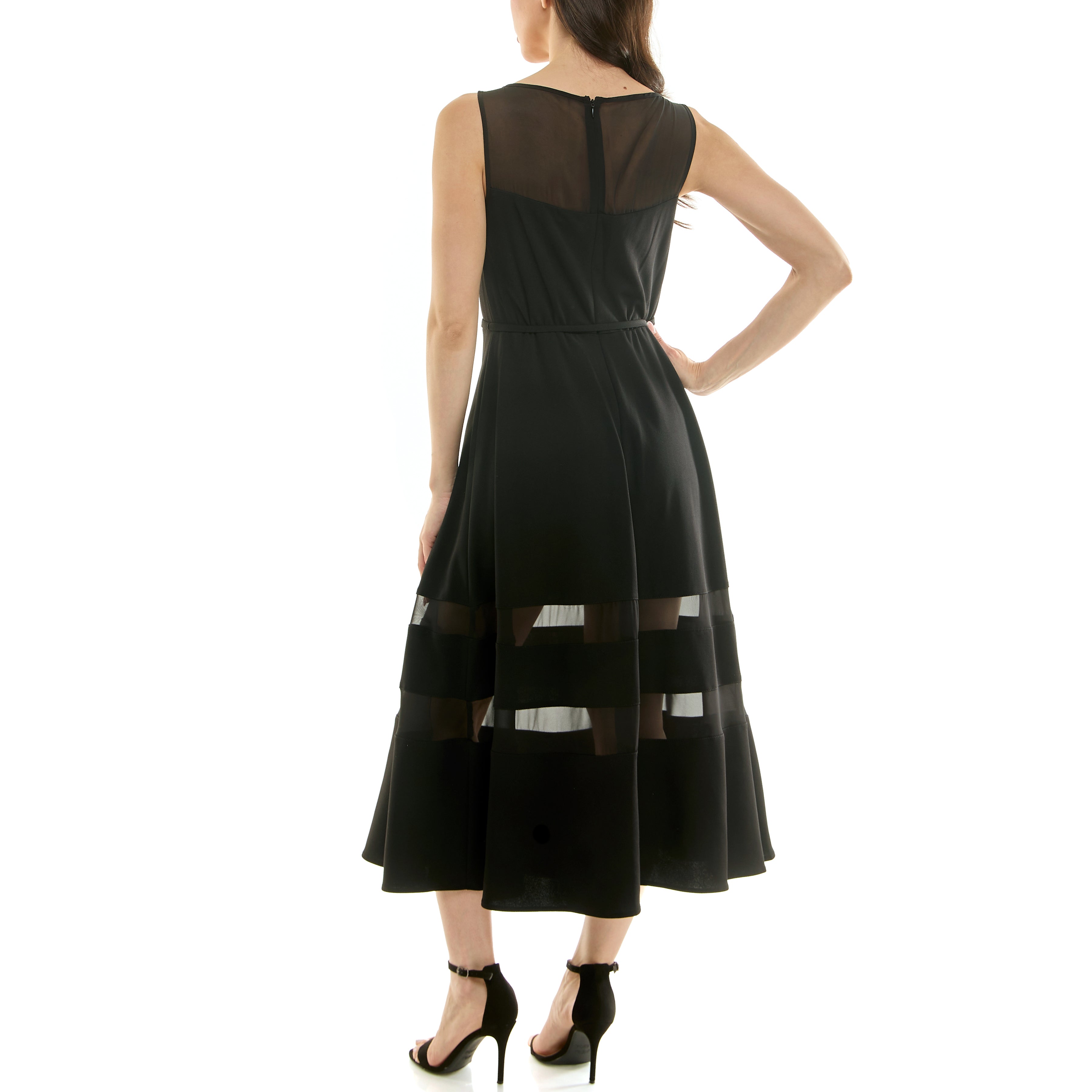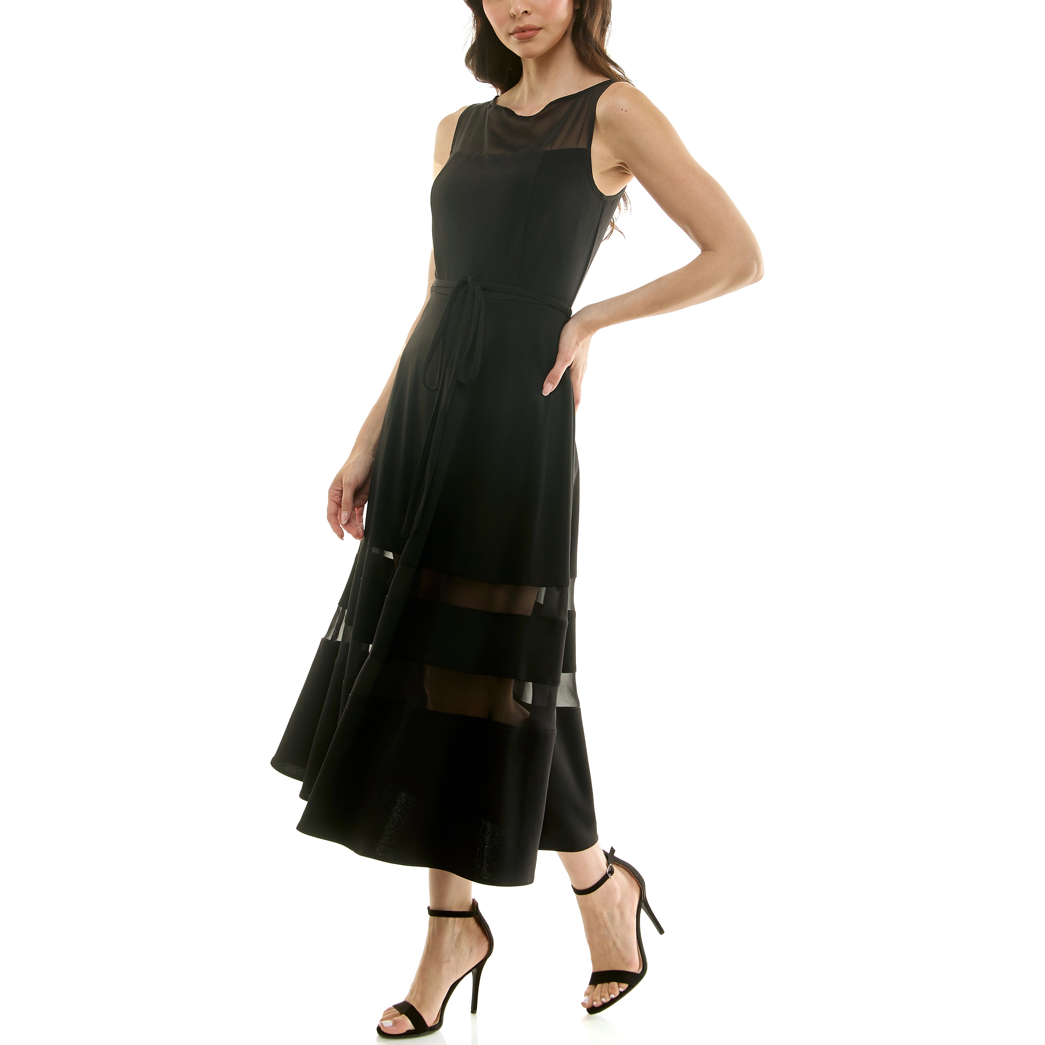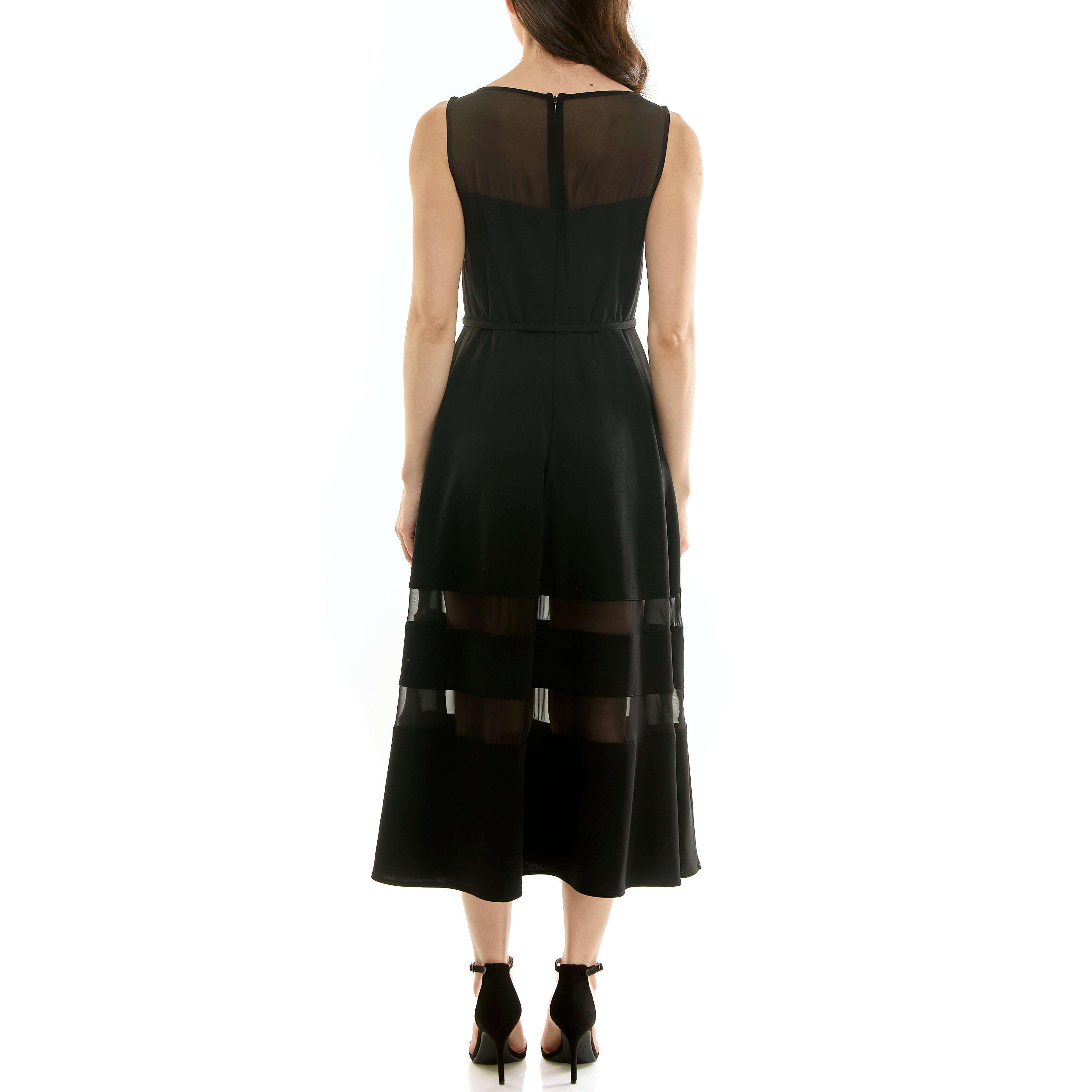 MAISON TARA SLEEVELESS CREPE SEMI-SHEER CURVE MIDI DRESS