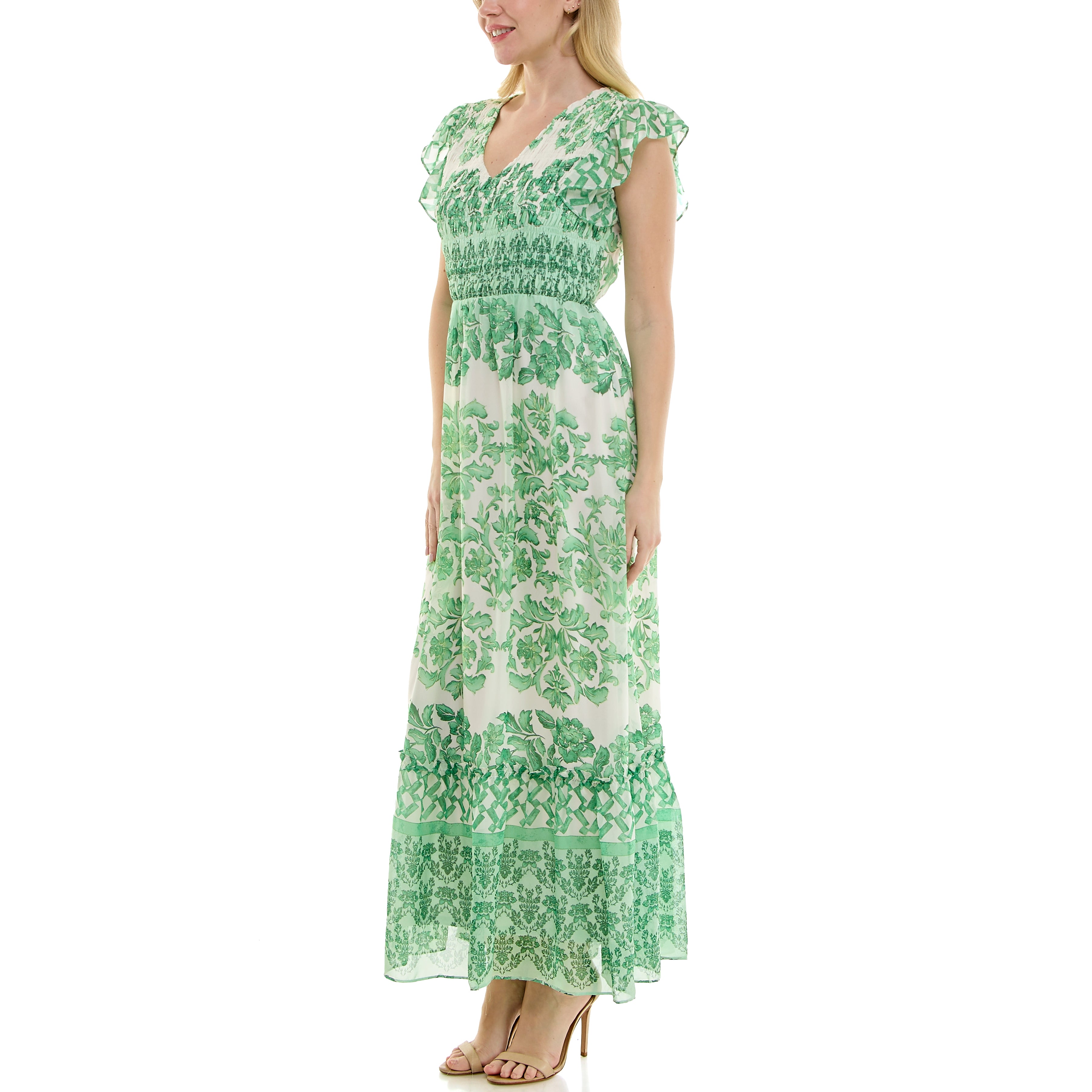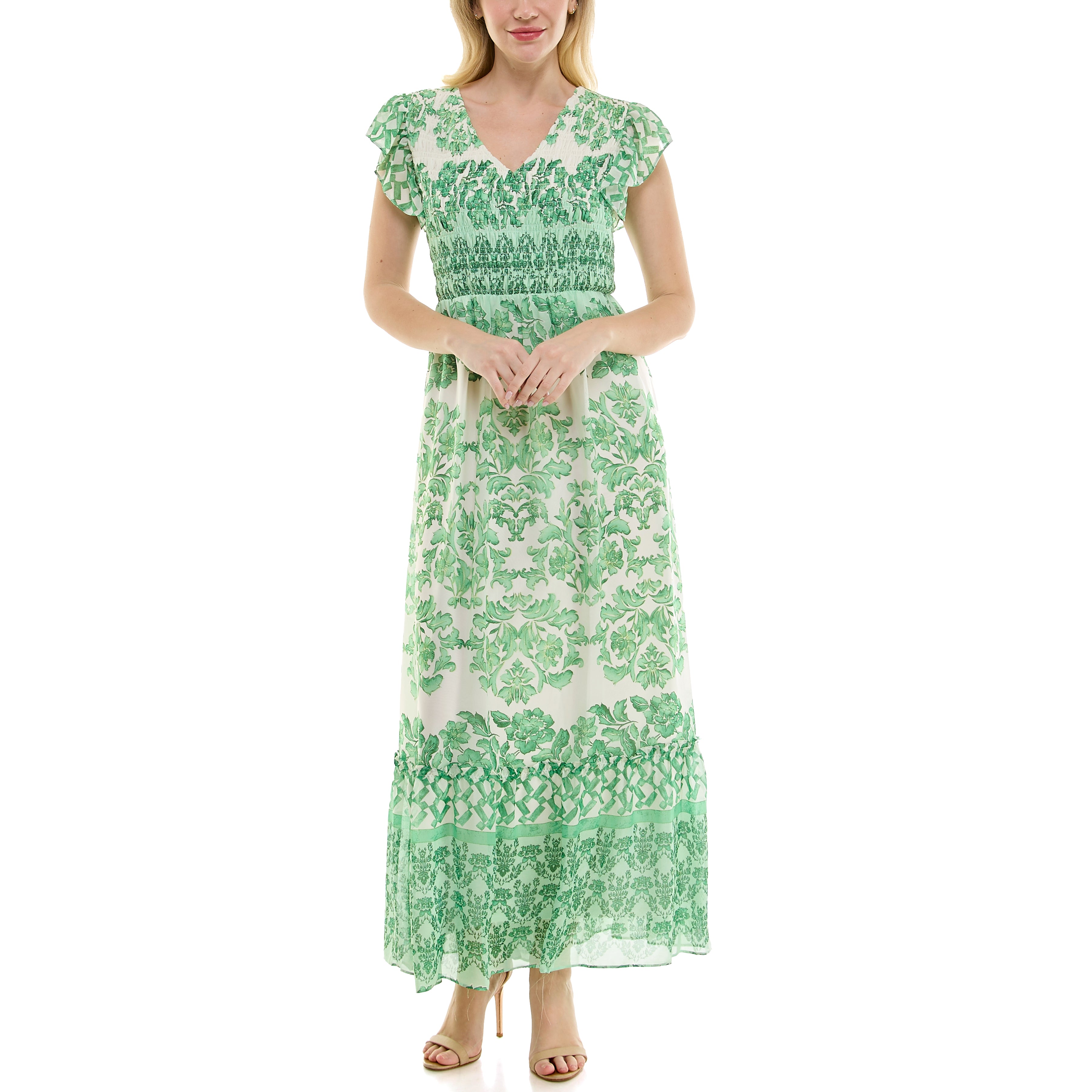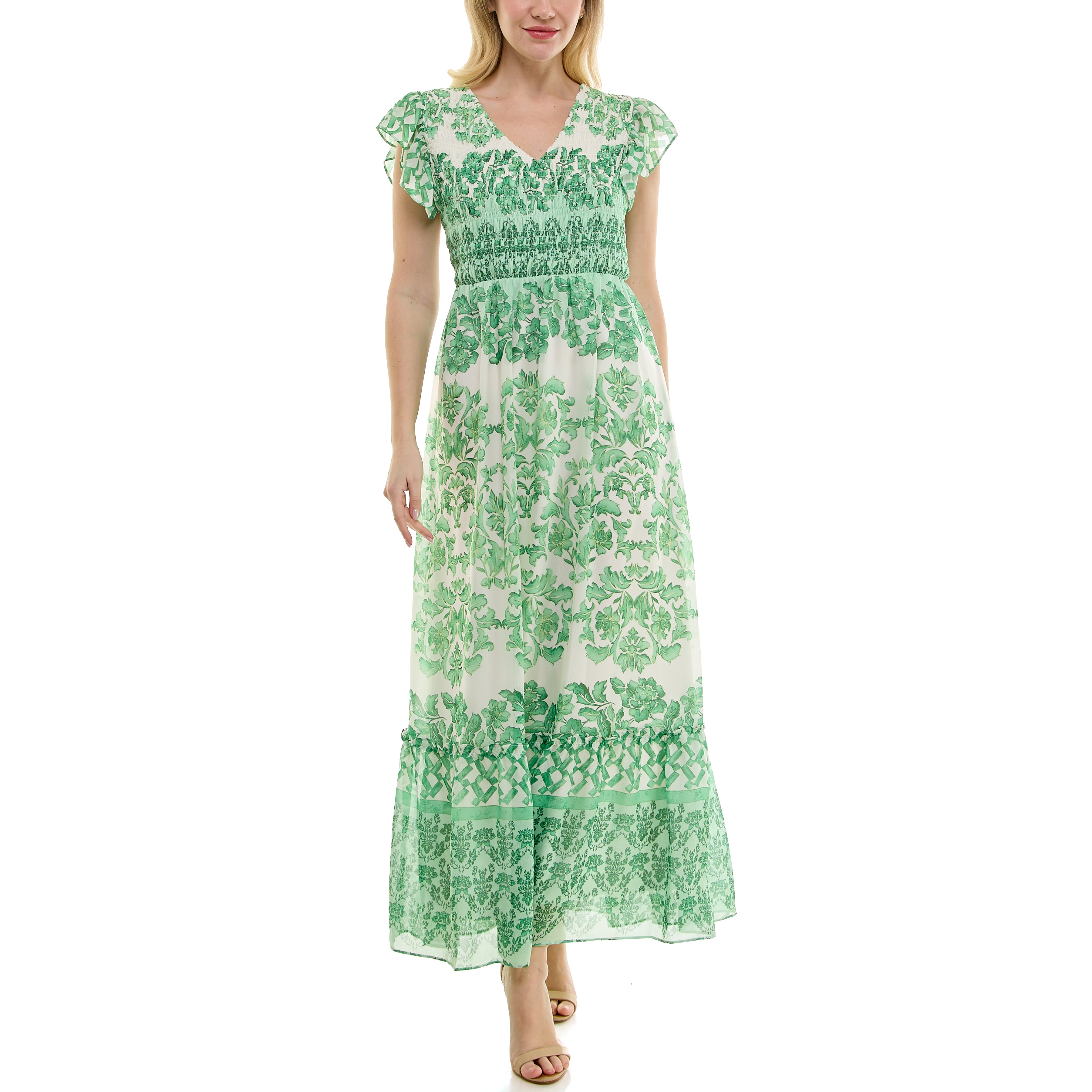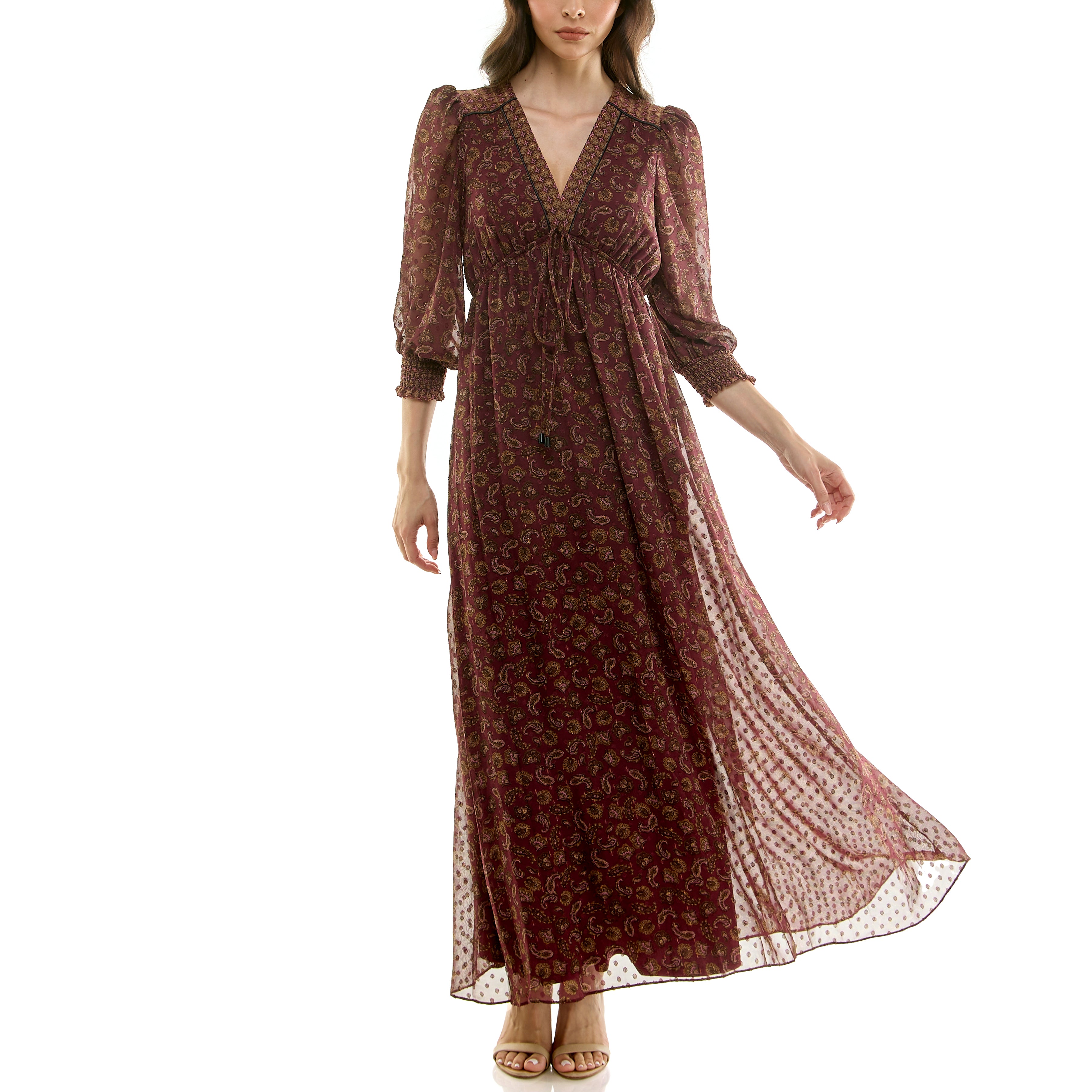 MAISON TARA PATTERNED CHIFFON MAXI DRESS - EXCHANGES ONLY