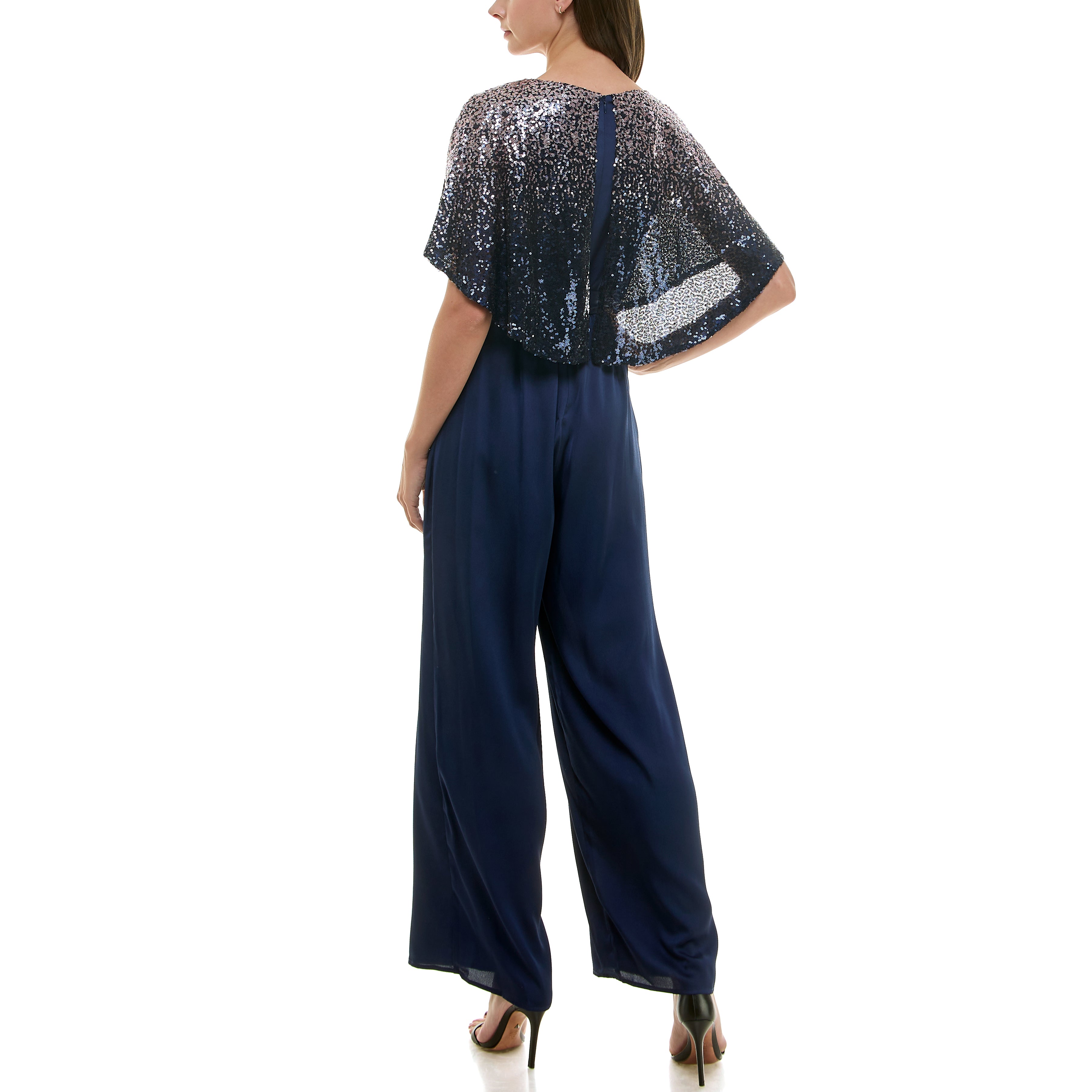 MAISON TARA OMBRE SEQUINED CAPELET FLARE LEG JUMPSUIT