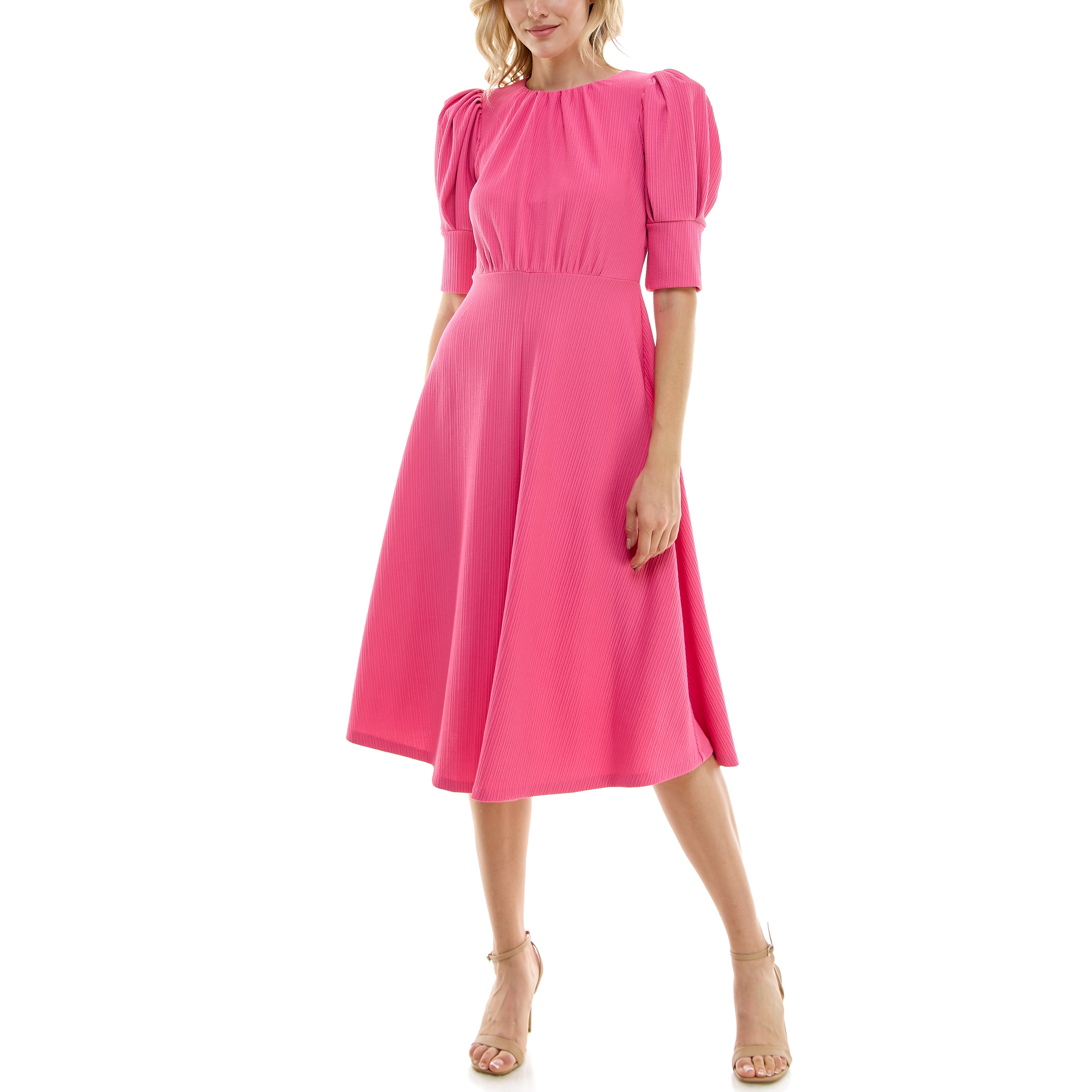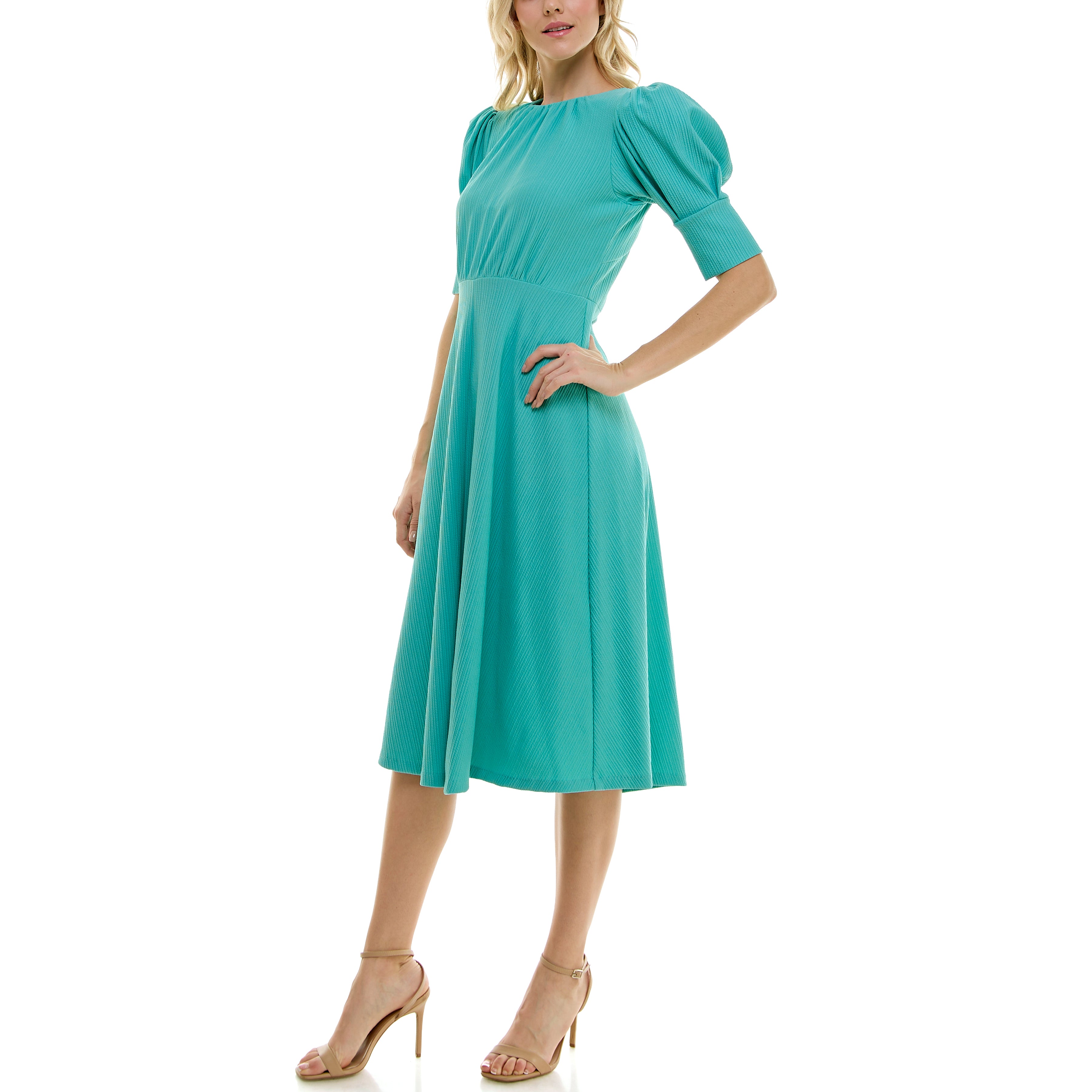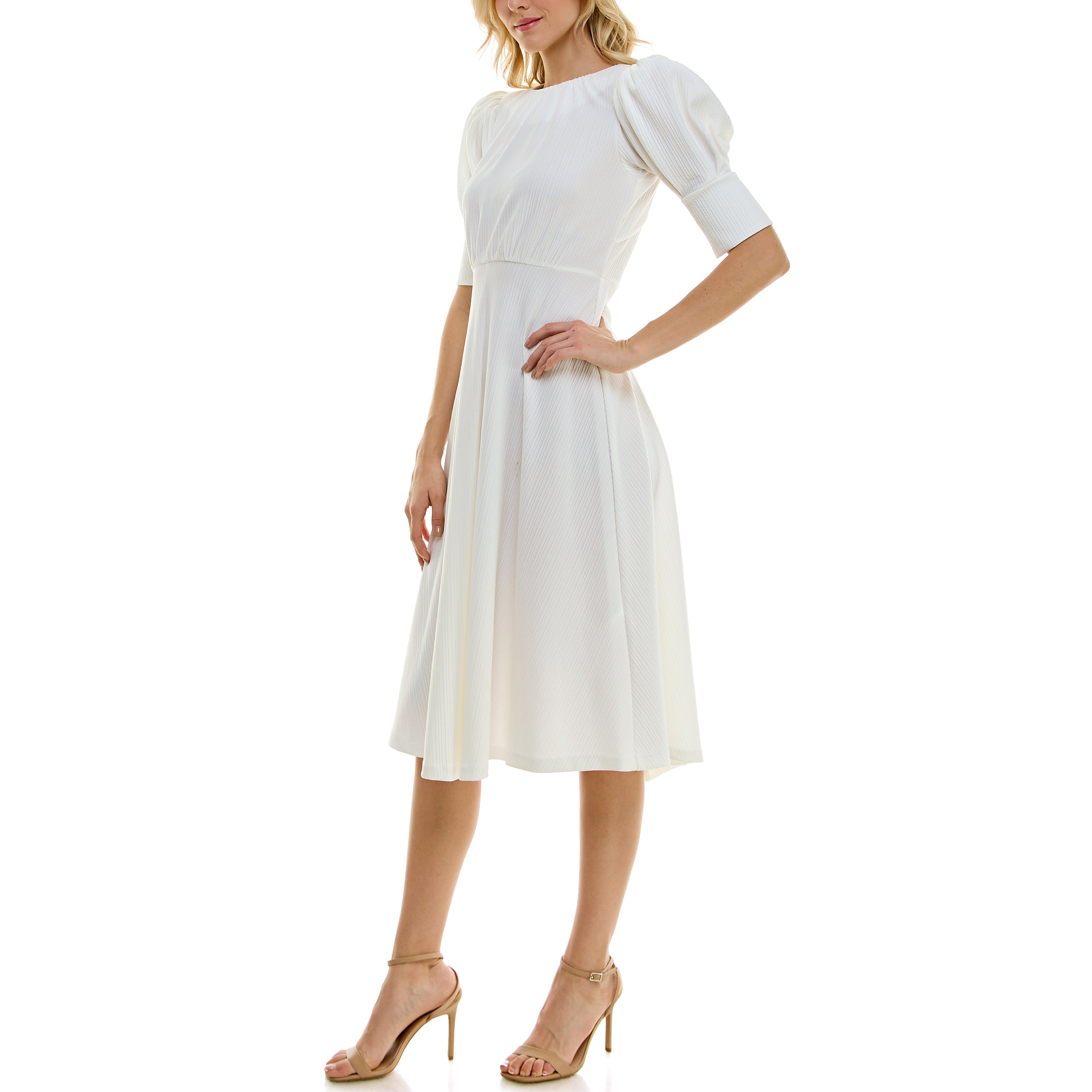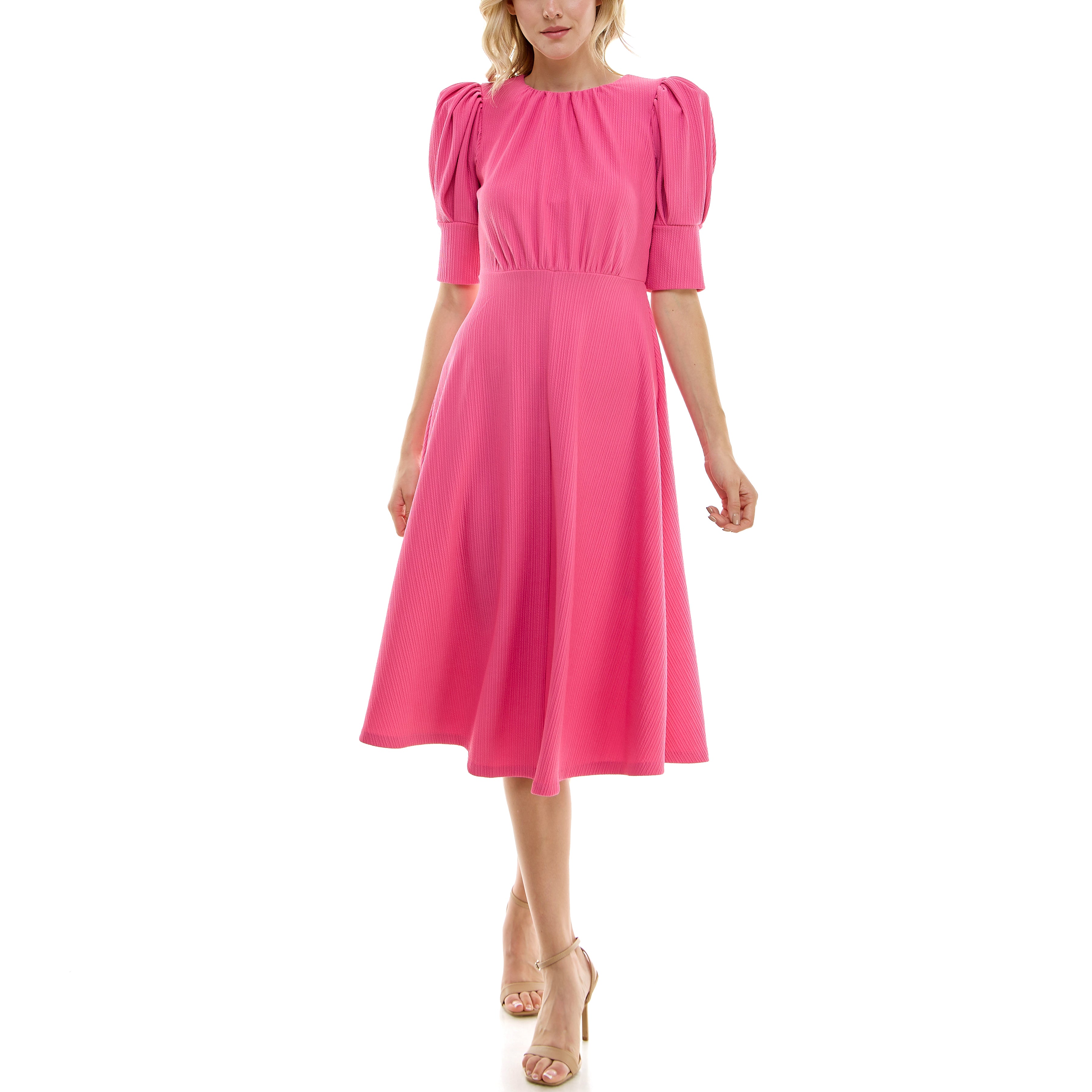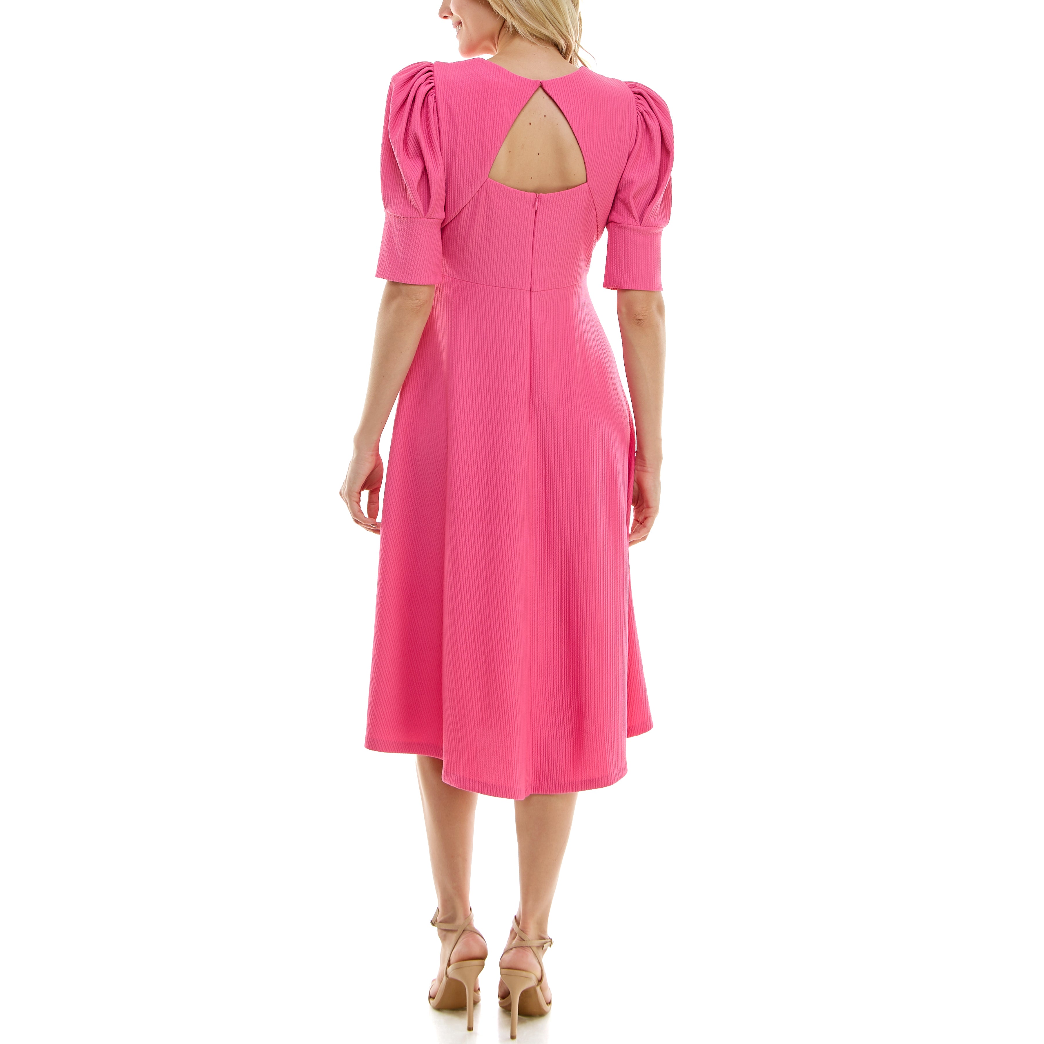 MAISON TARA PUFF ELBOW SLEEVE OTTOMAN KNIT MIDI DRESS