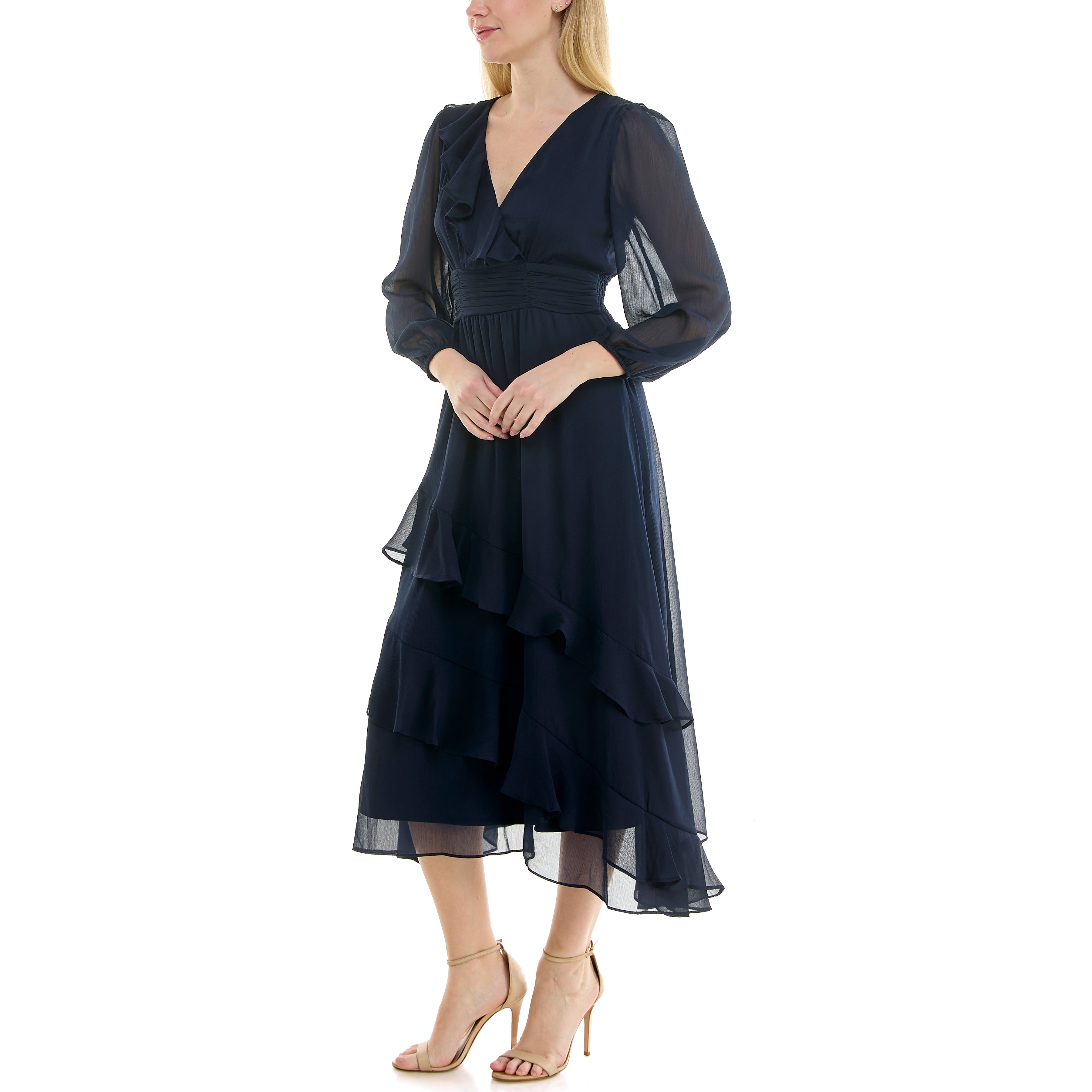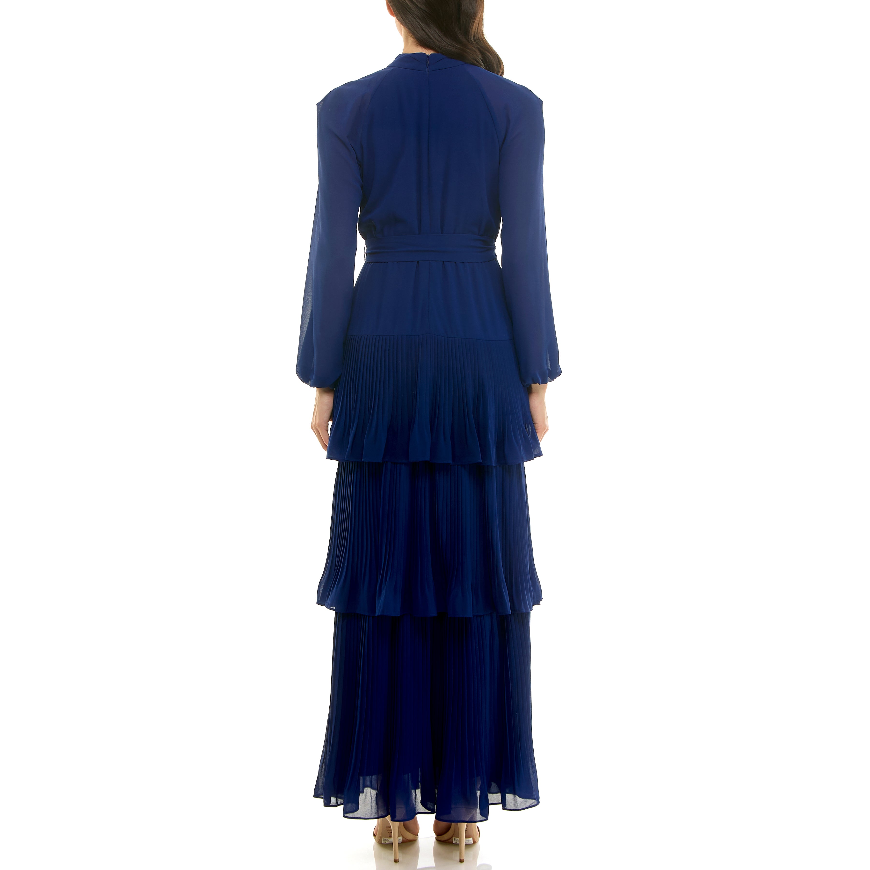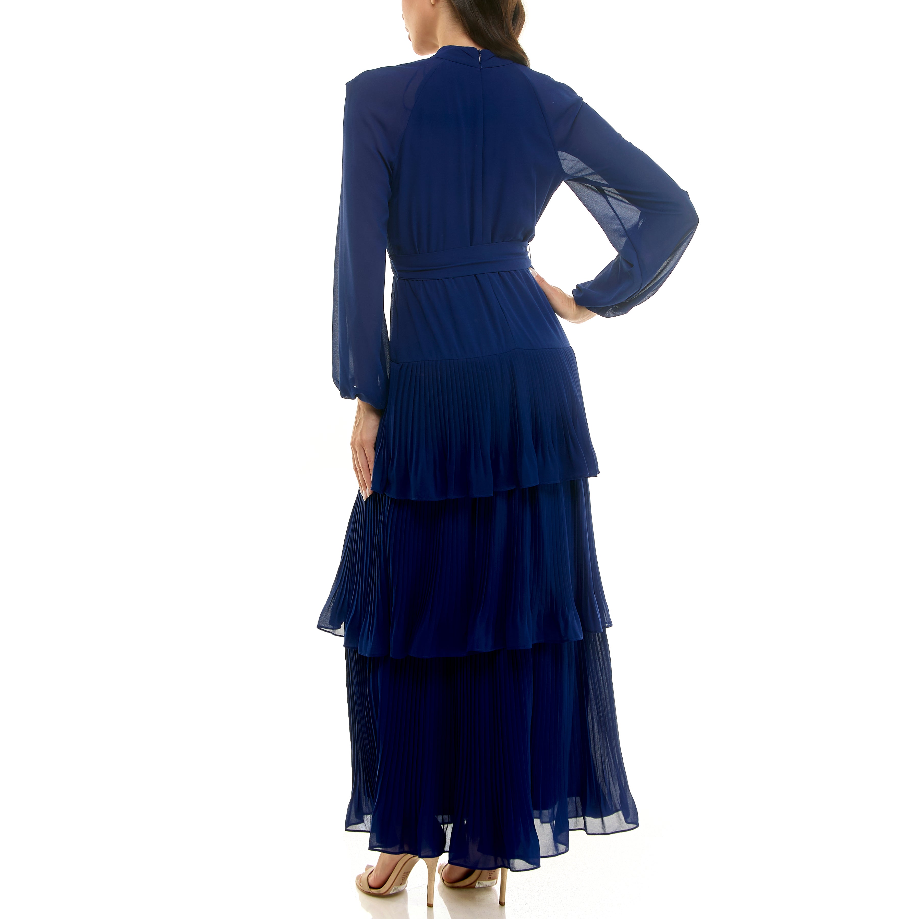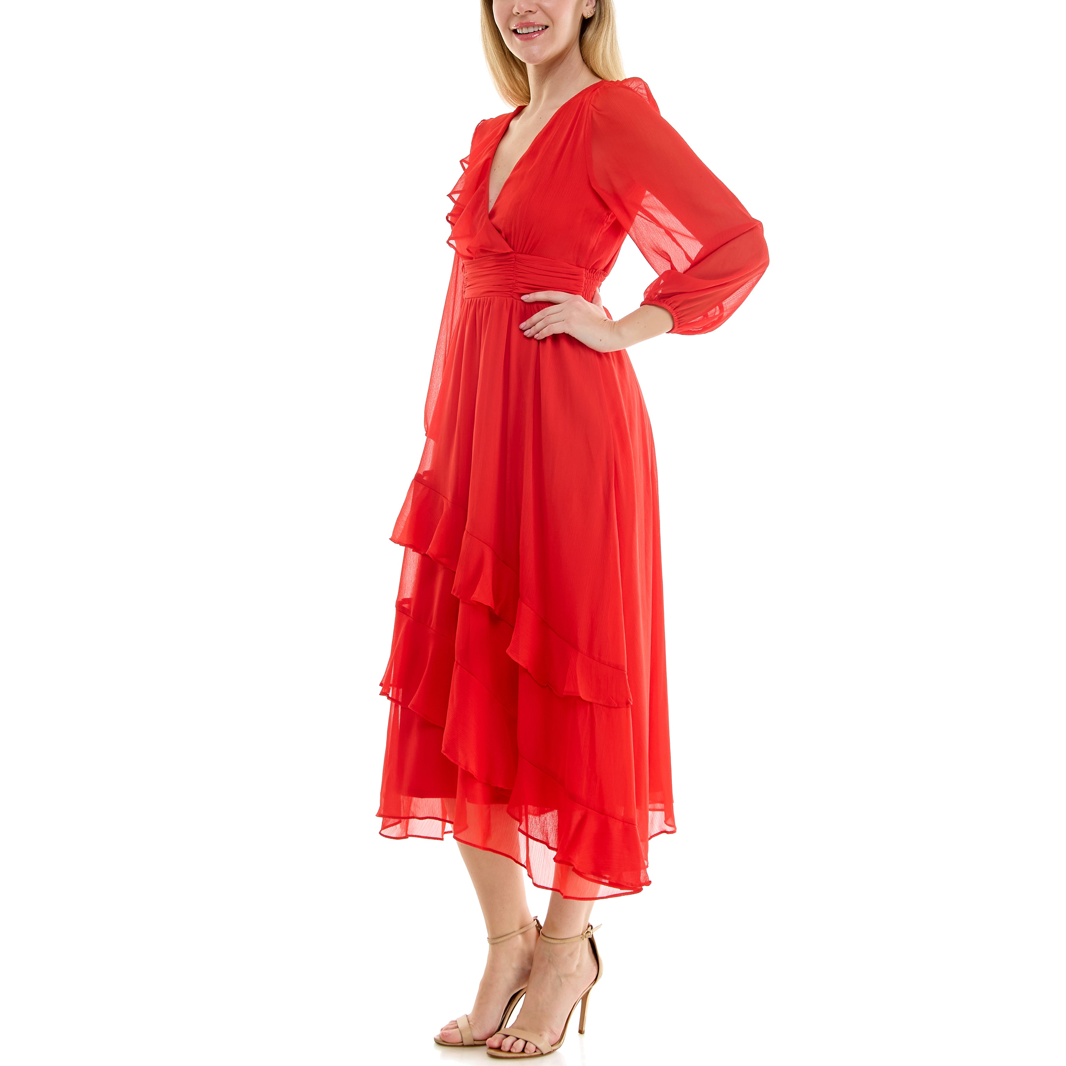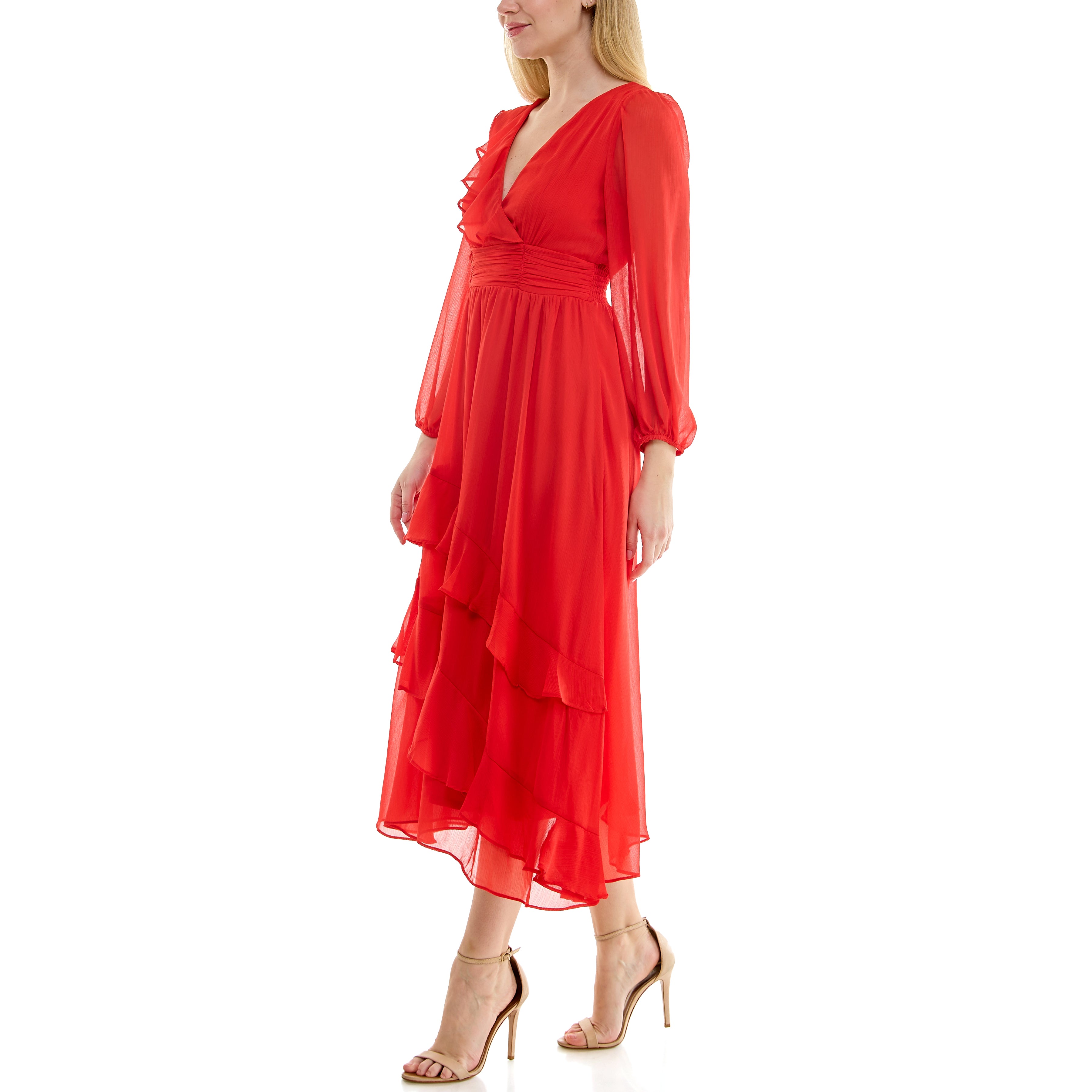 MAISON TARA RUFFLE TIERED CHIFFON MAXI DRESS