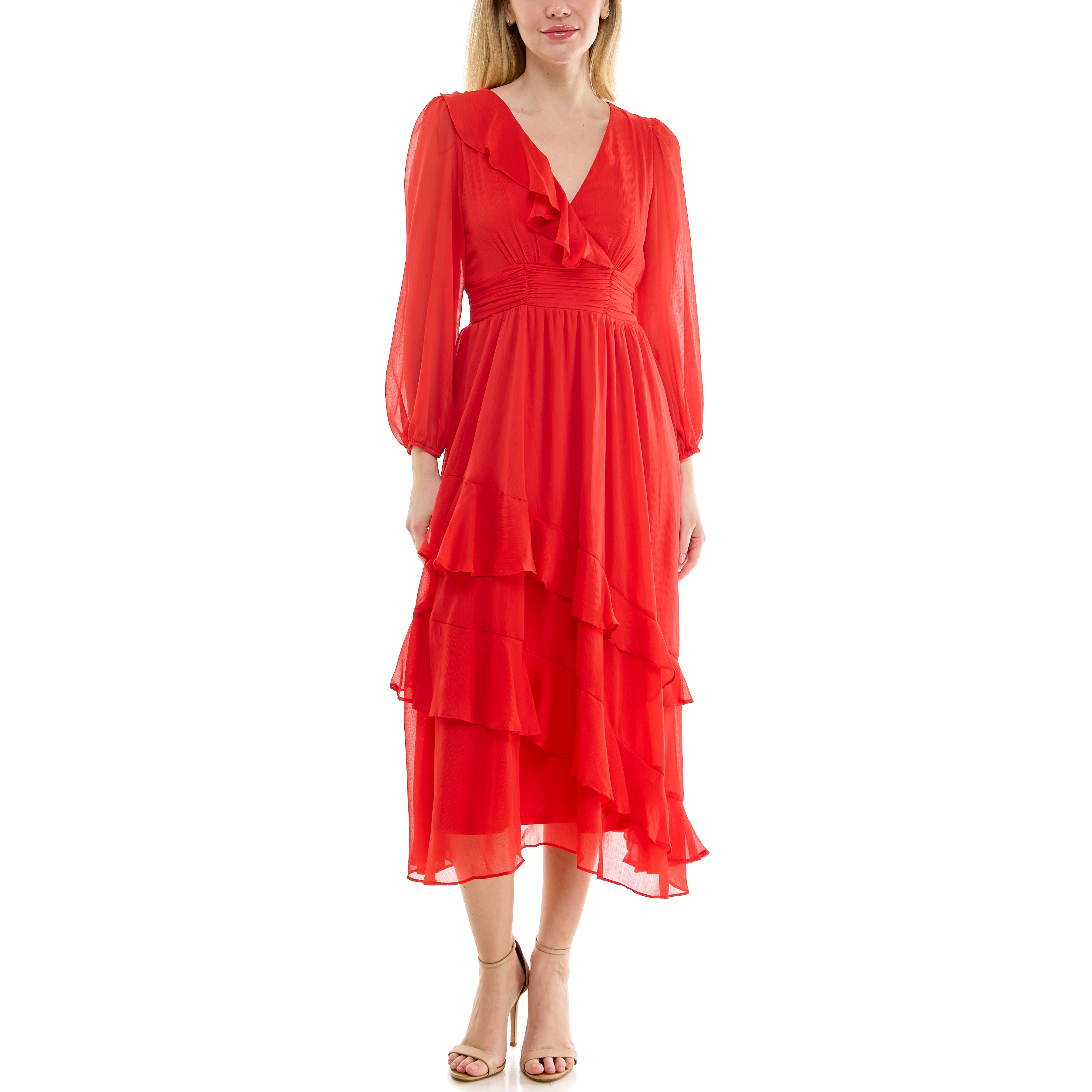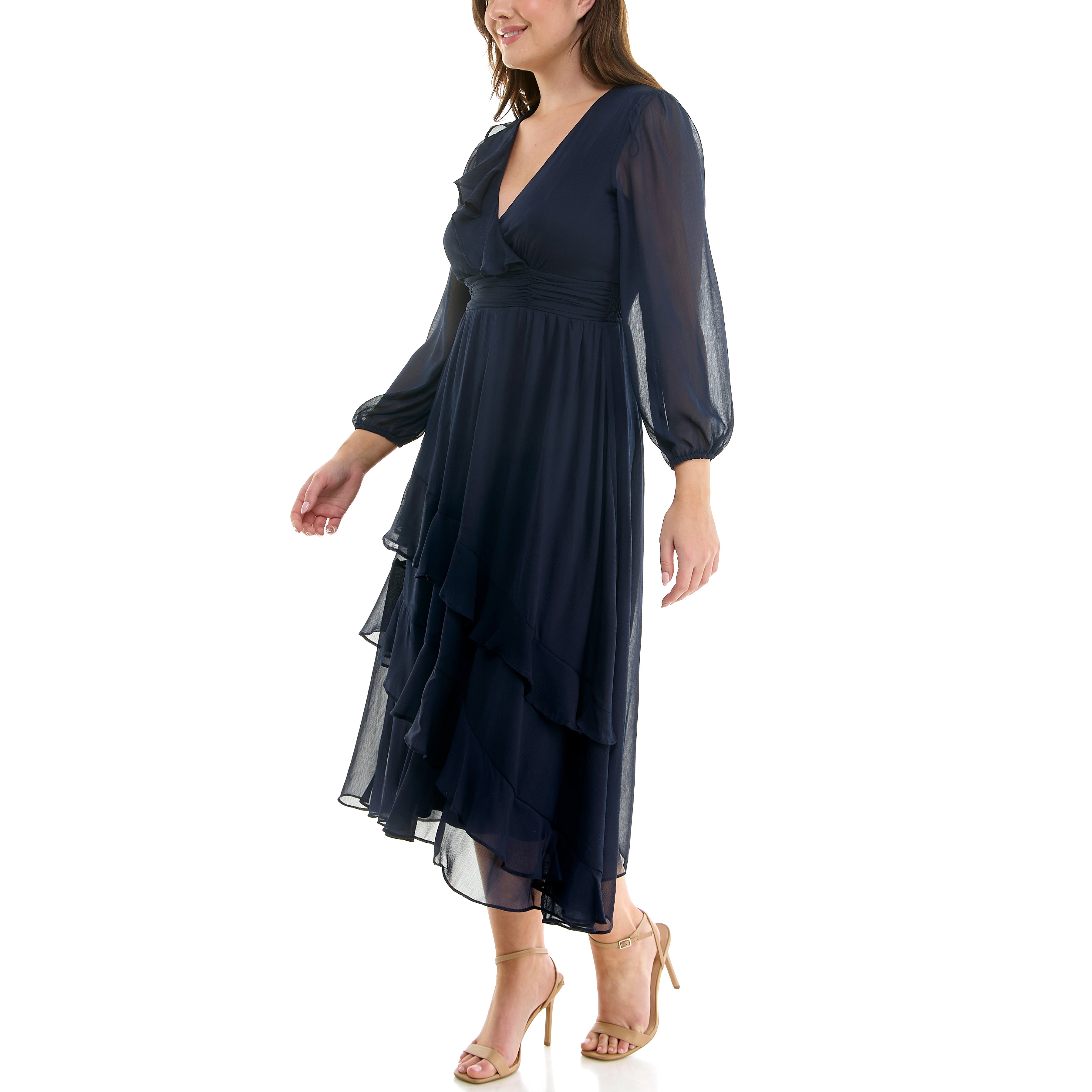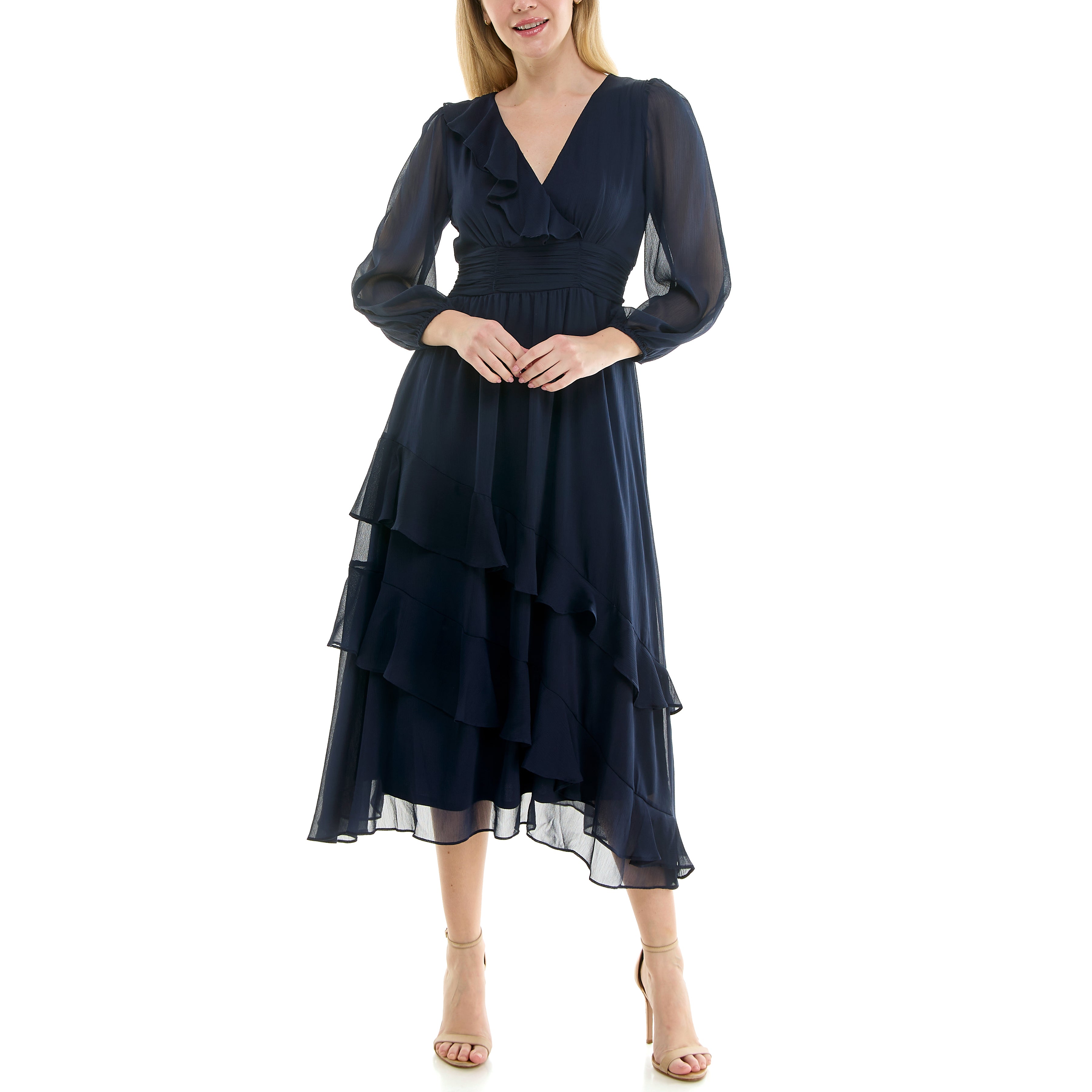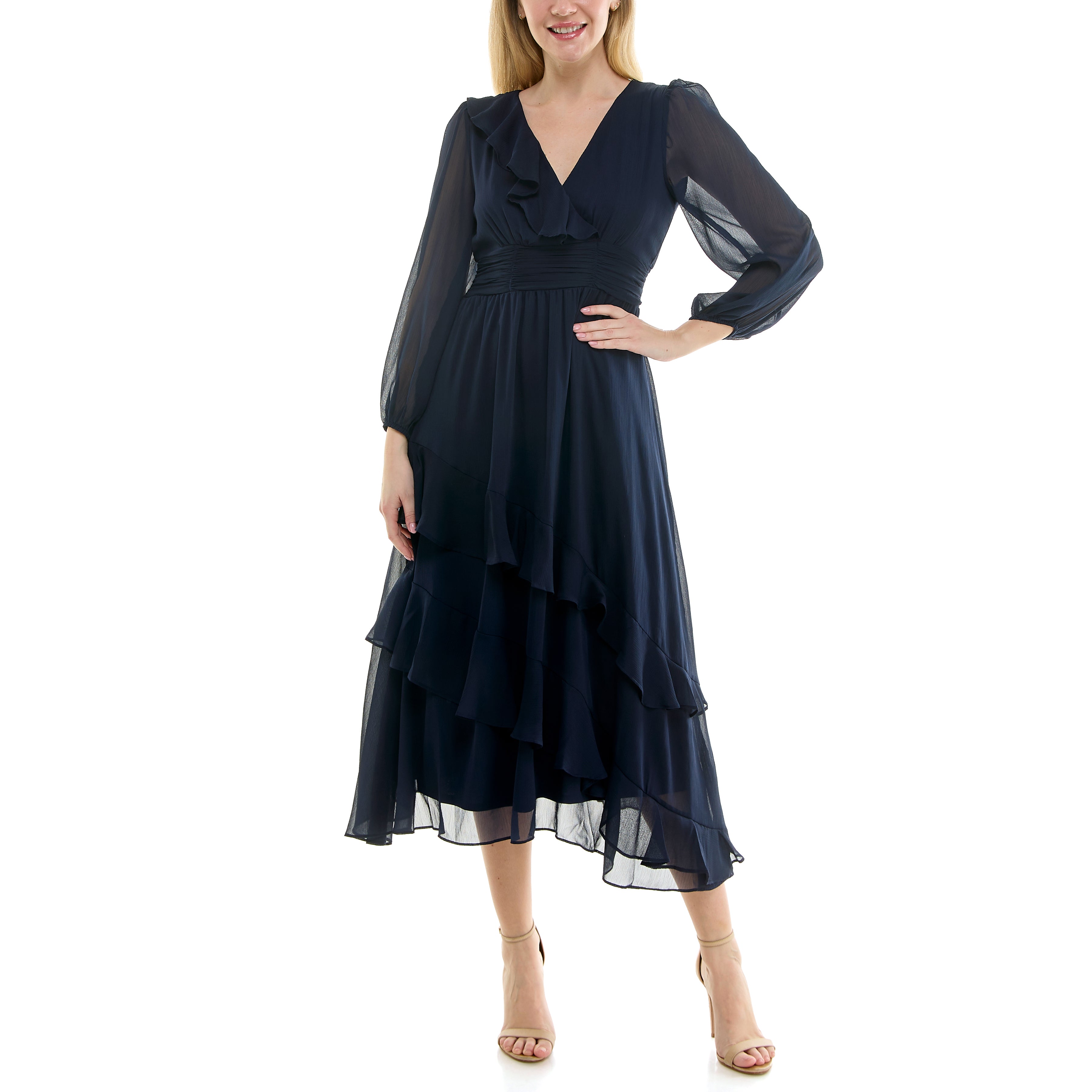 MAISON TARA RUFFLE TIERED CHIFFON MAXI DRESS