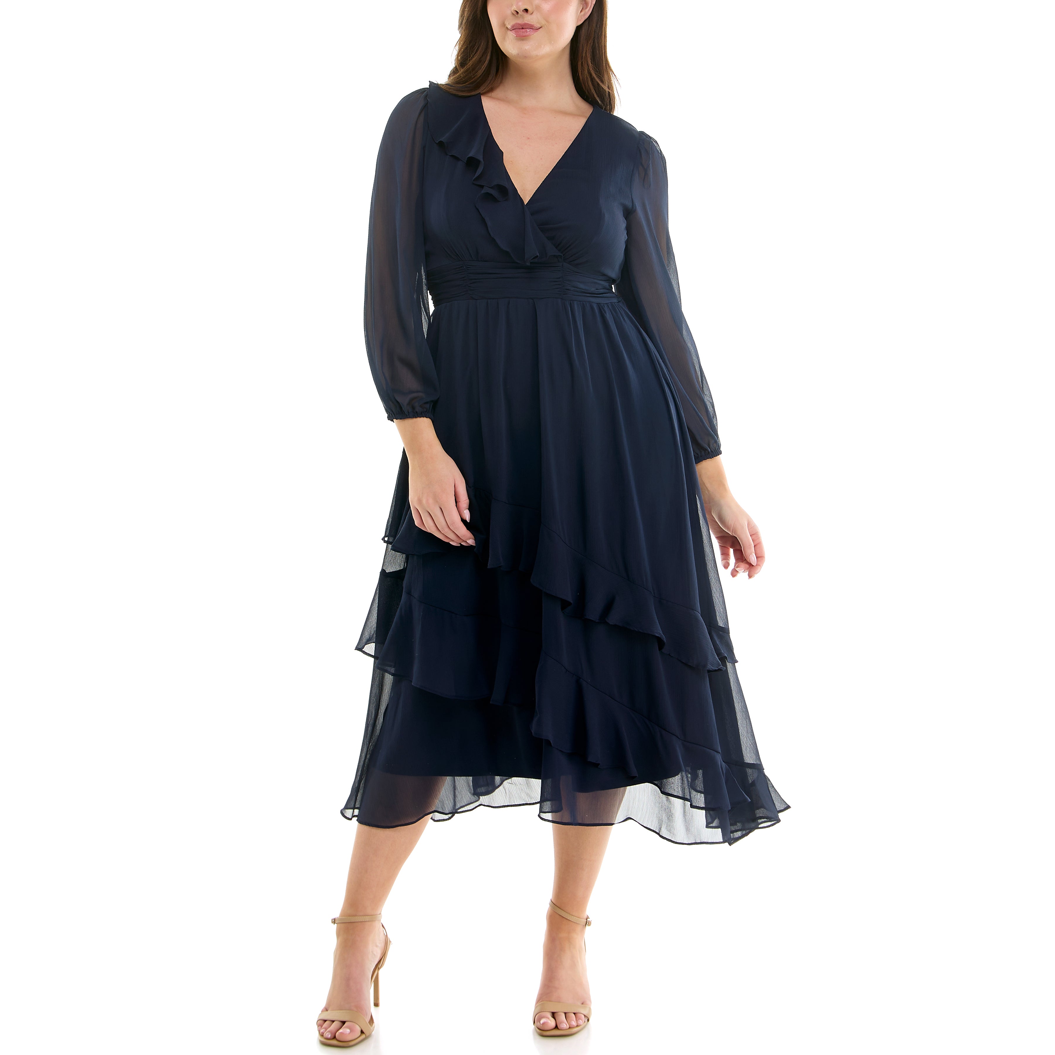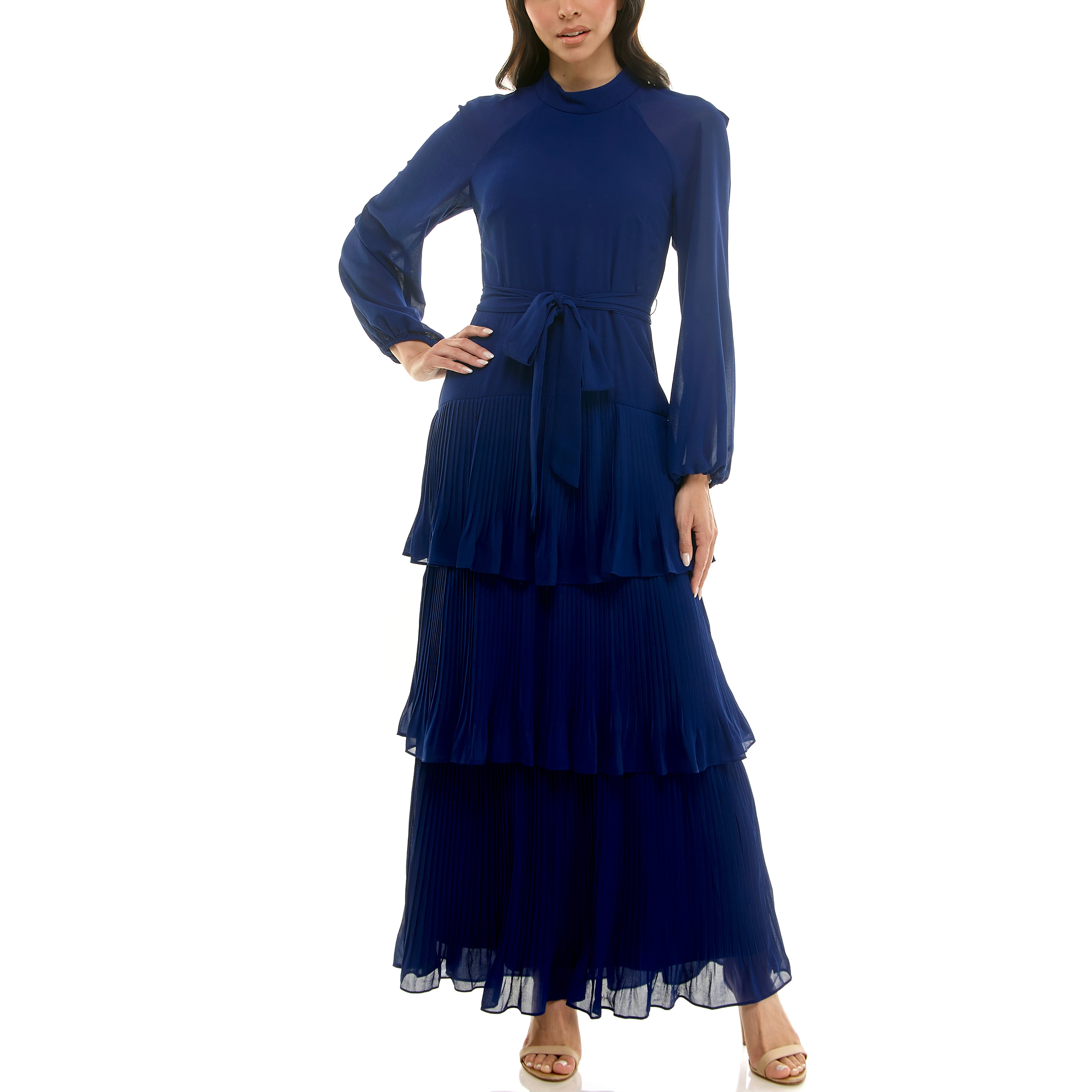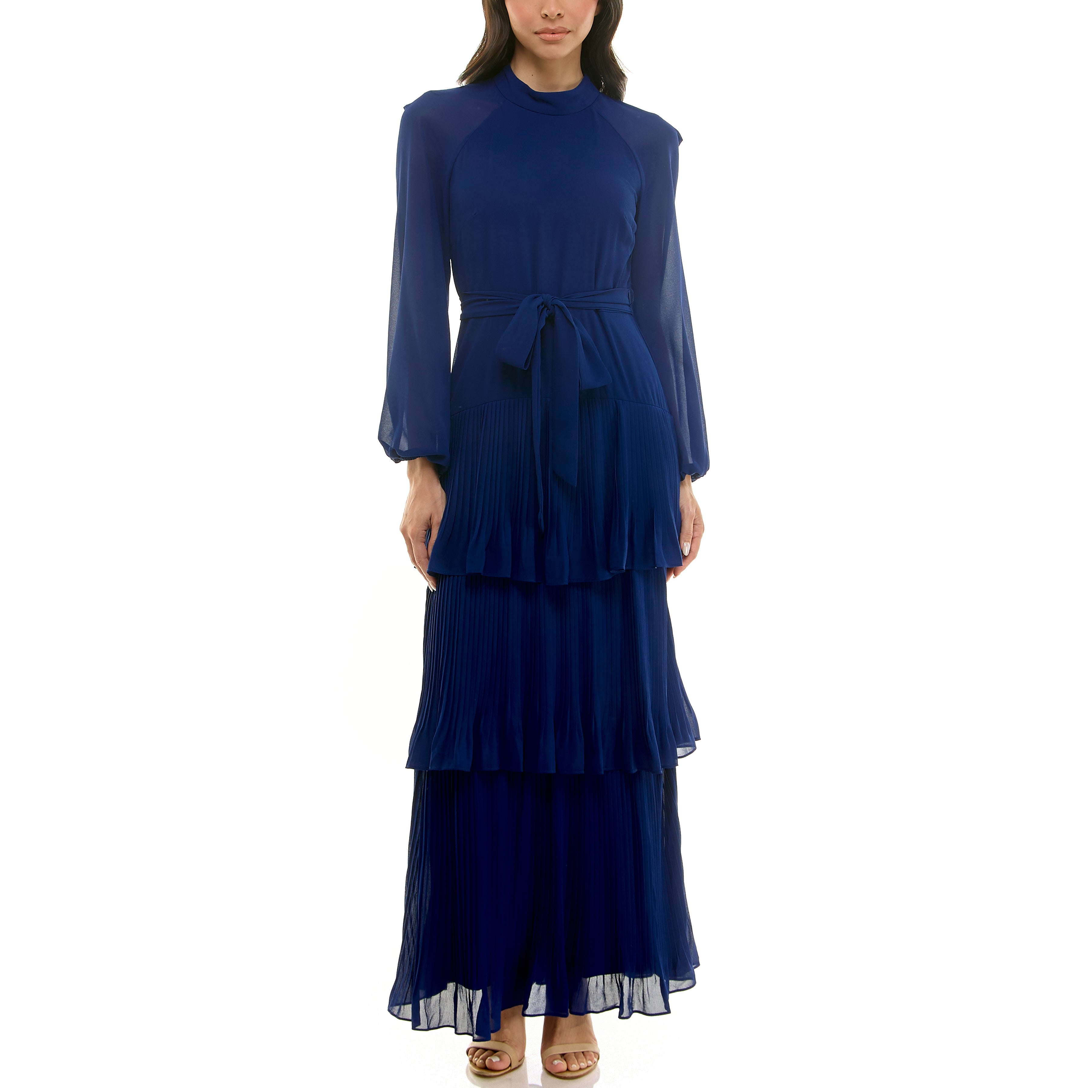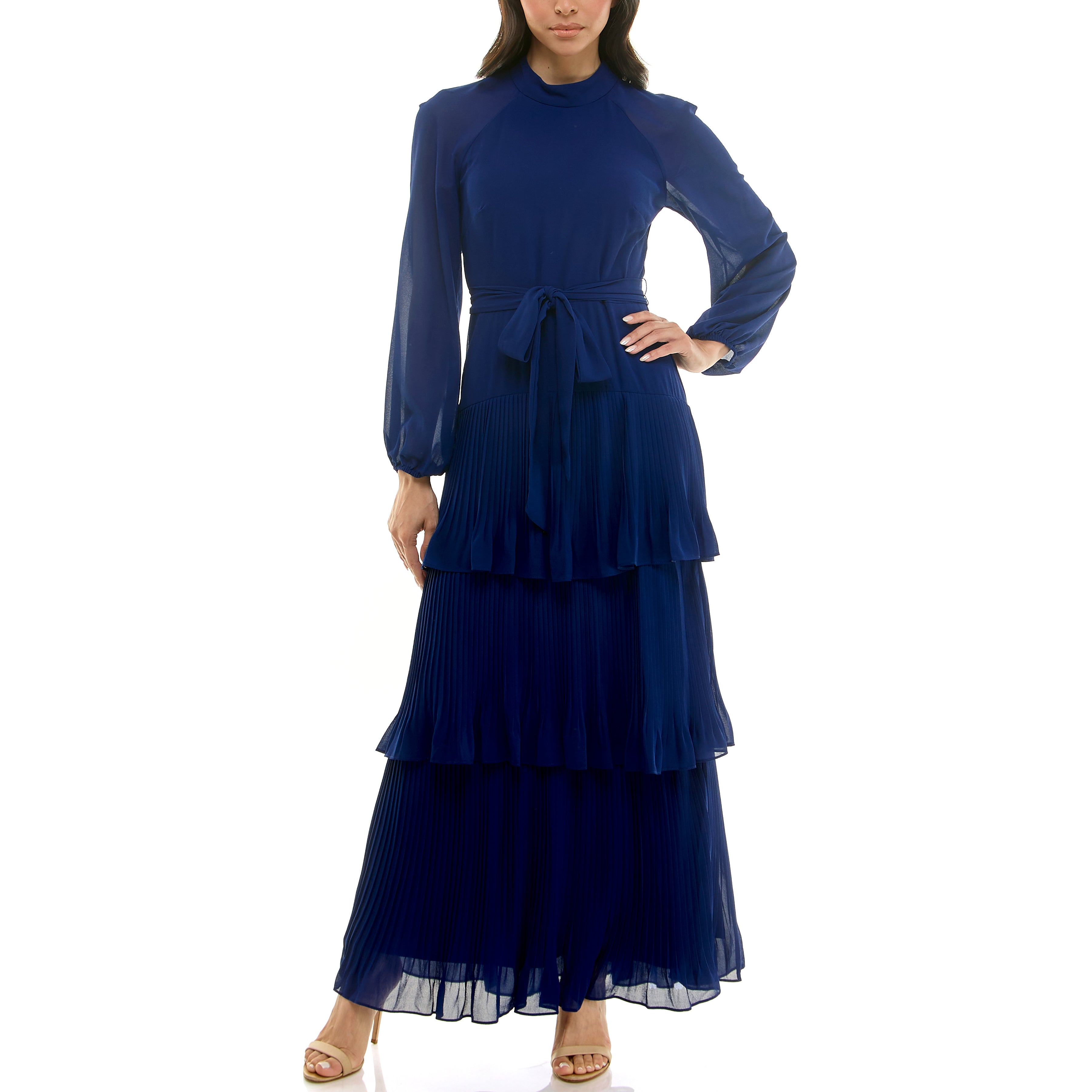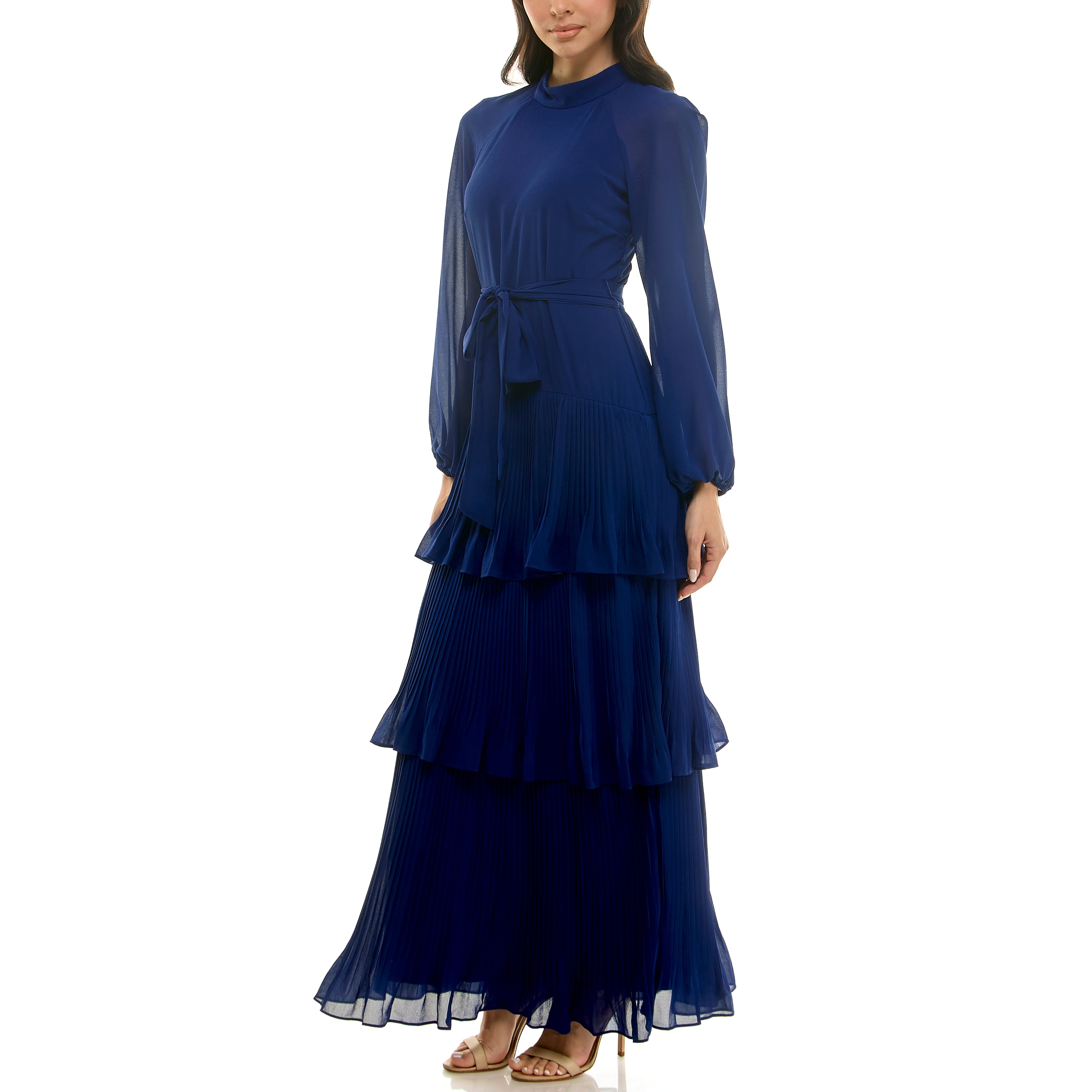 MAISON TARA RUFFLE TIERED CHIFFON MAXI DRESS