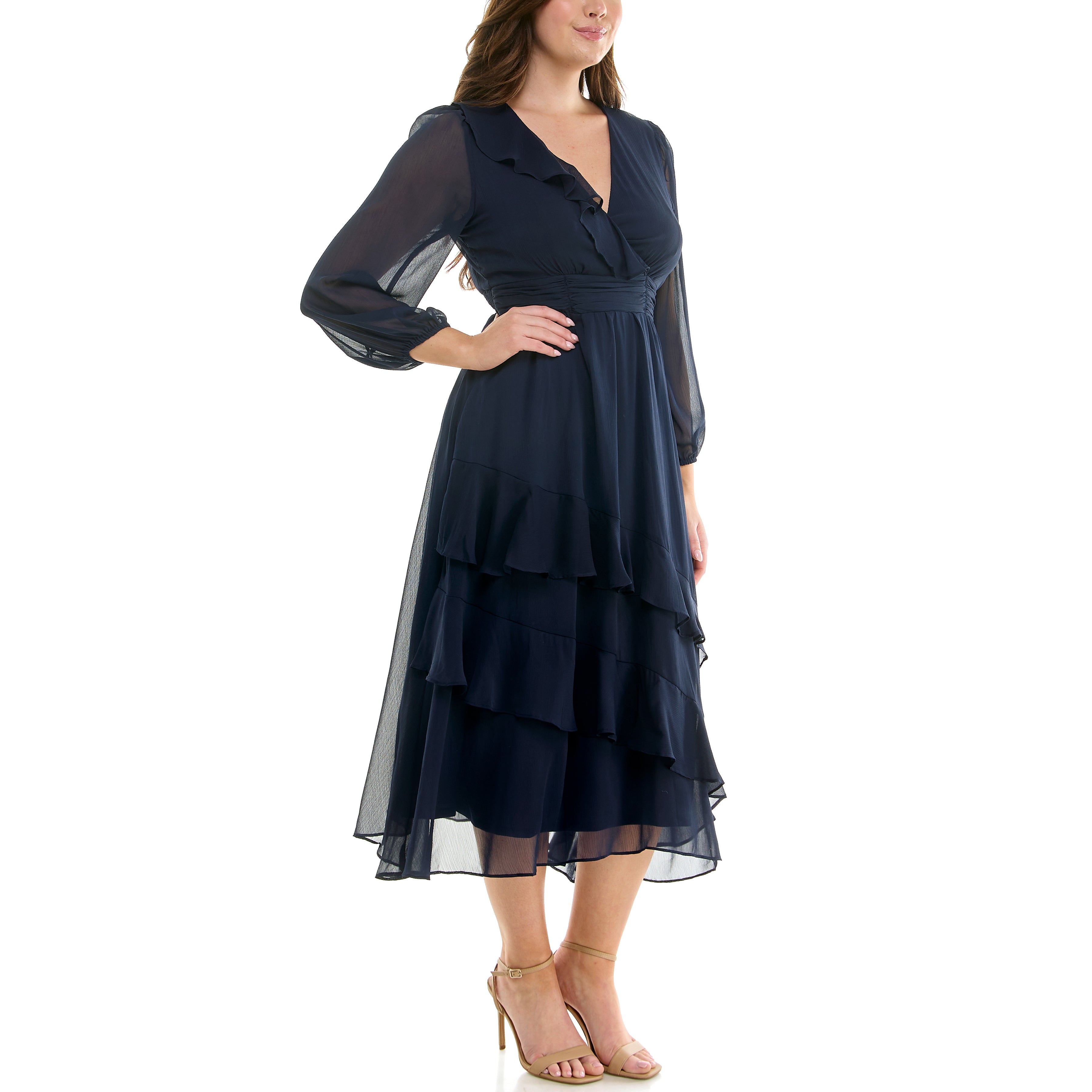 MAISON TARA RUFFLED CHIFFON WRAP DRESS - EXCHANGES ONLY