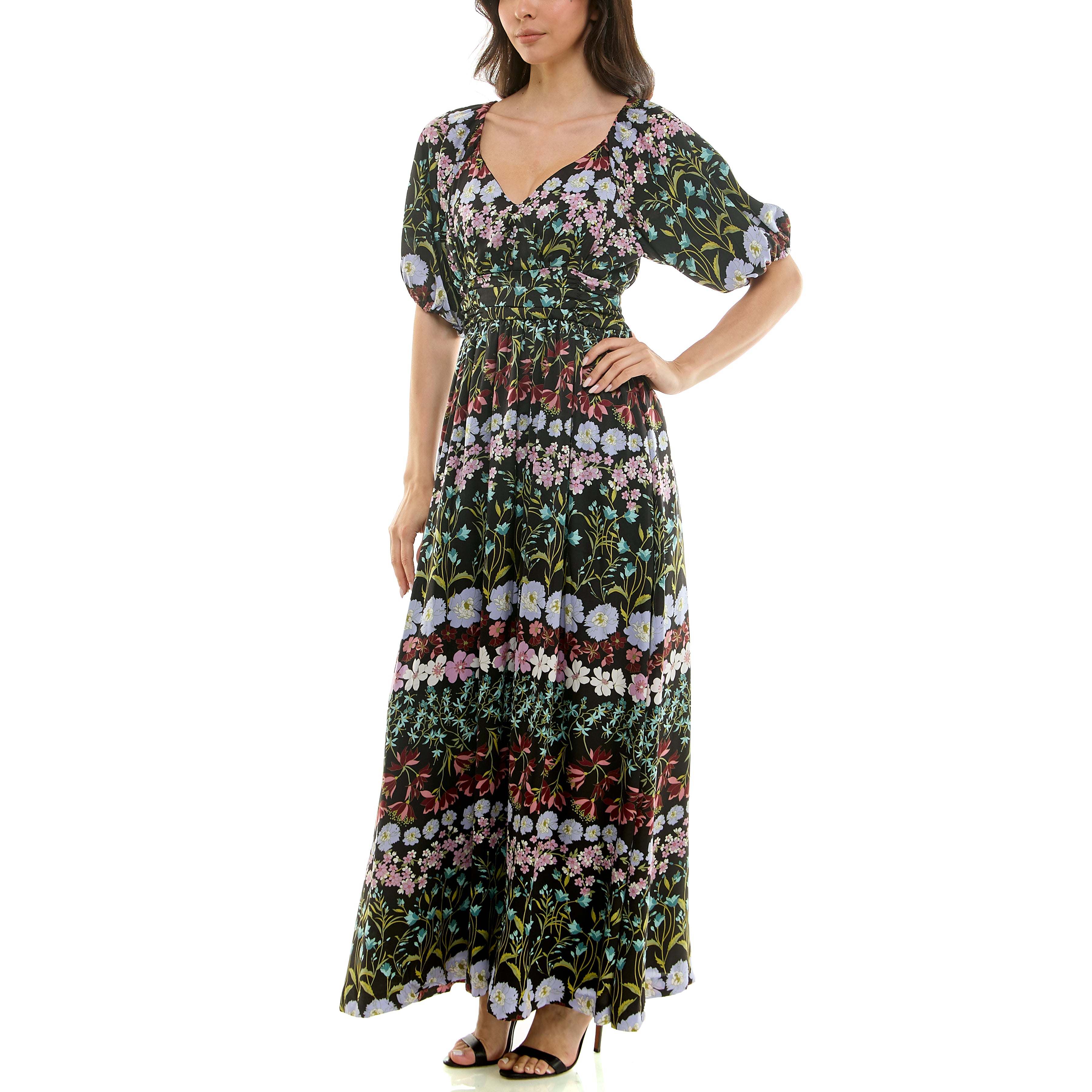 MAISON TARA SHORT SLEEVE MULTICOLOR BOTANICAL PRINT MAXI DRESS