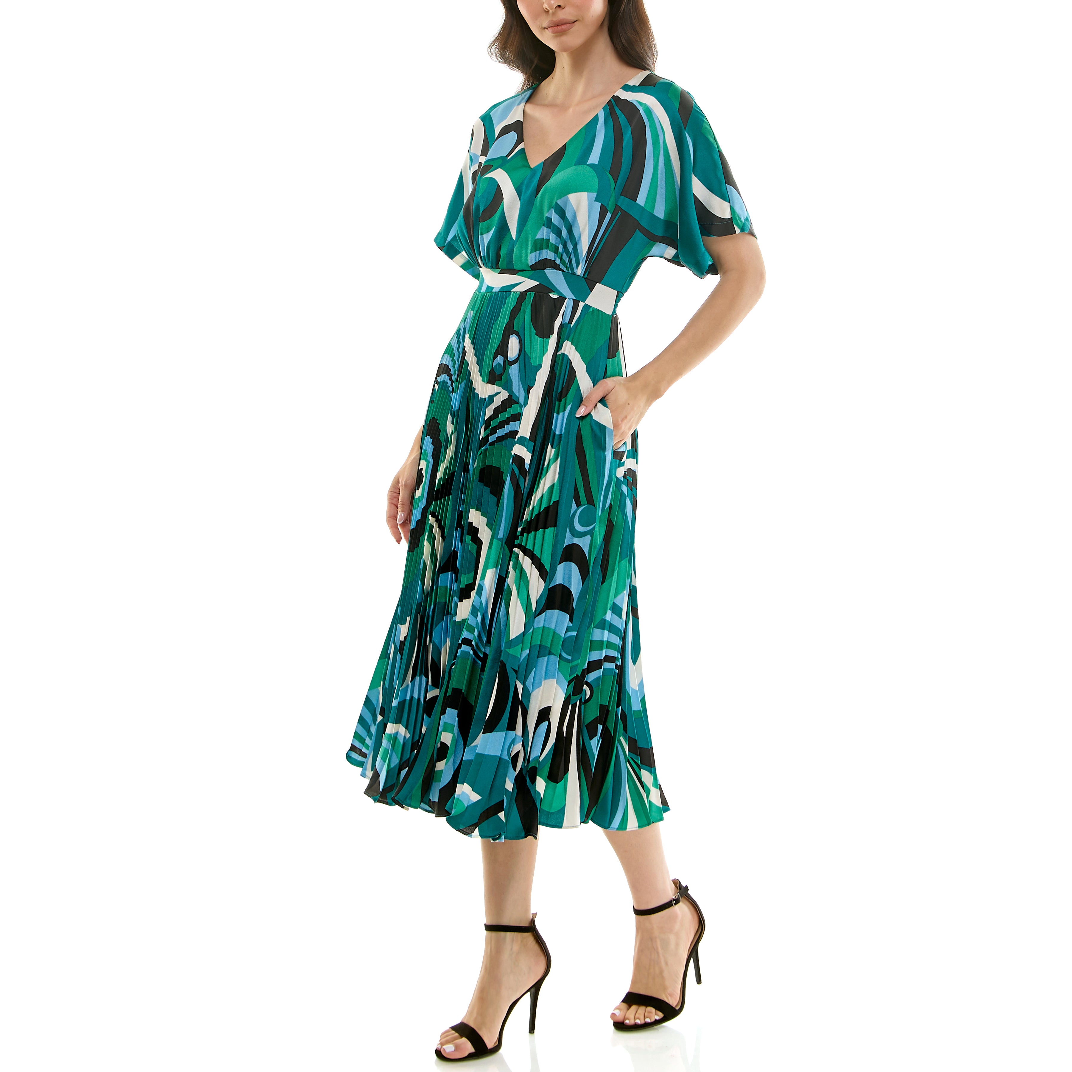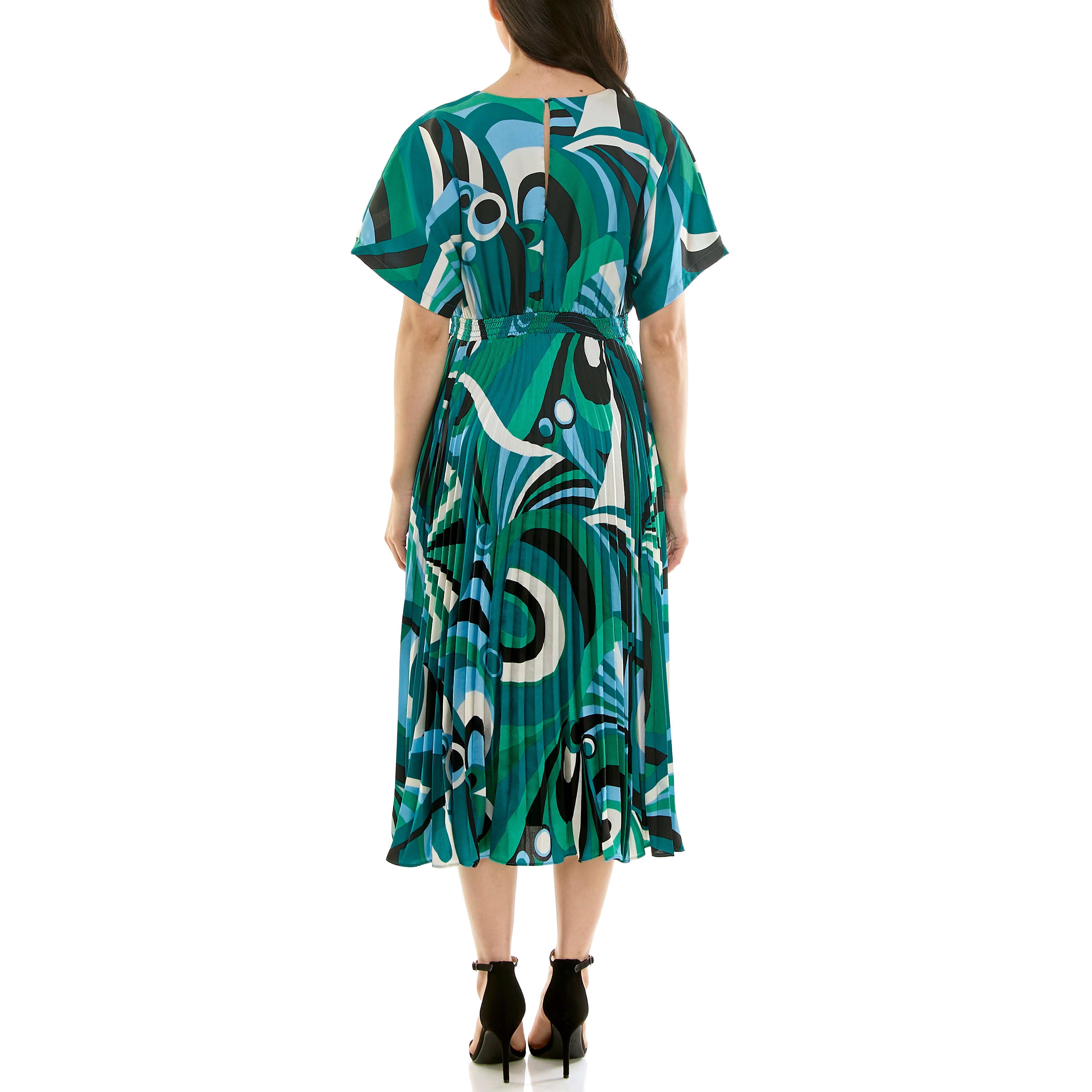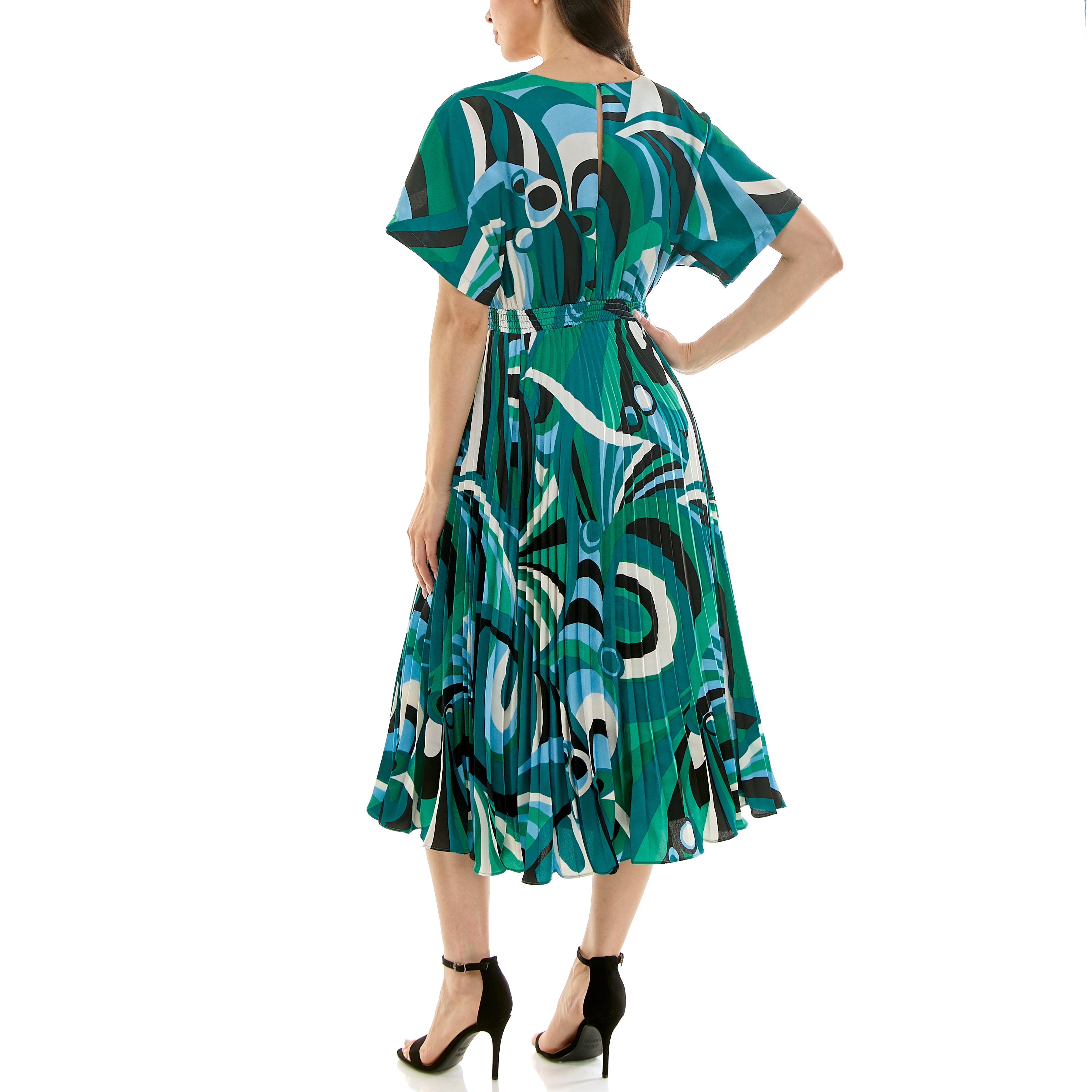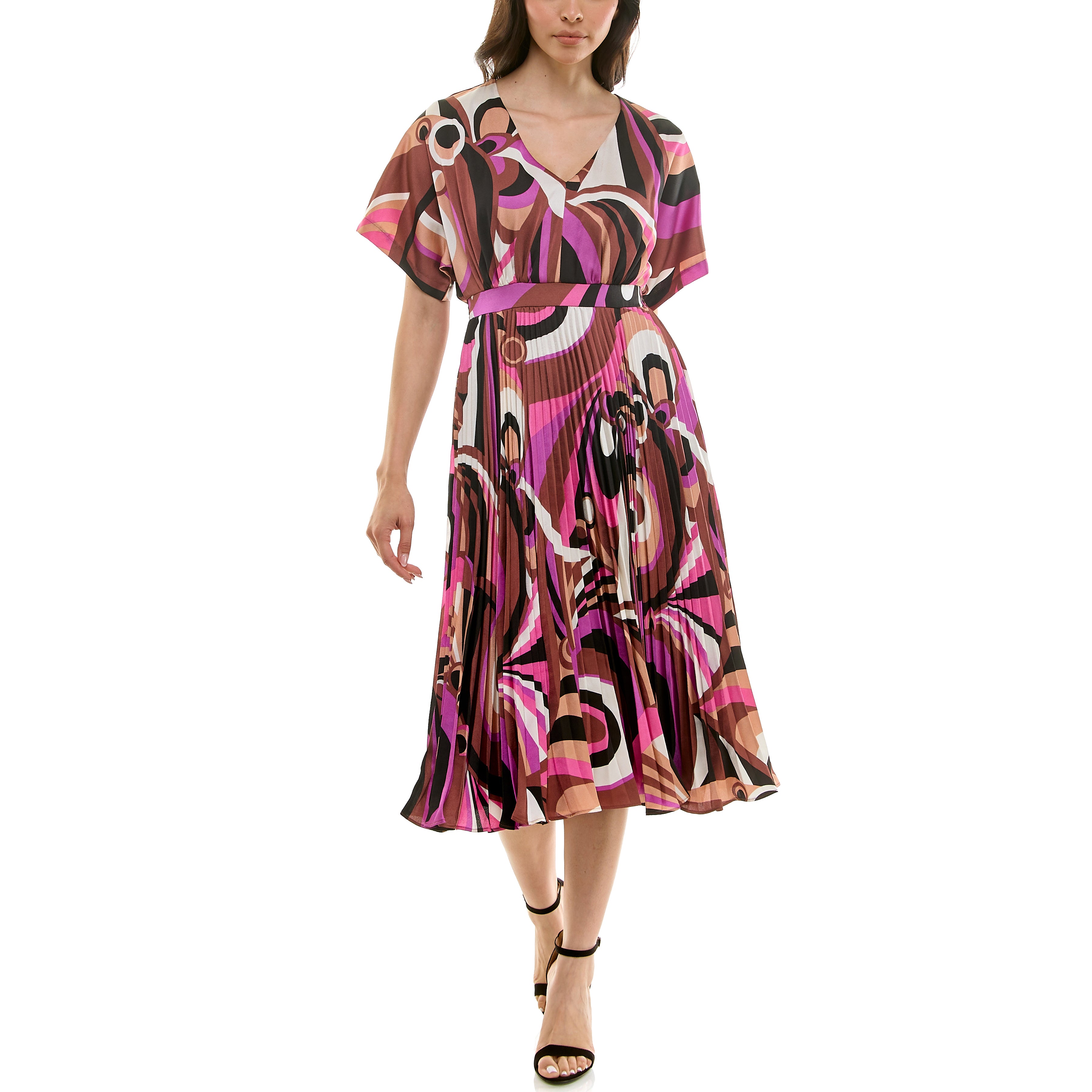 MAISON TARA RETRO INSPIRED PRINT ACCORDION PLEATED MIDI DRESS