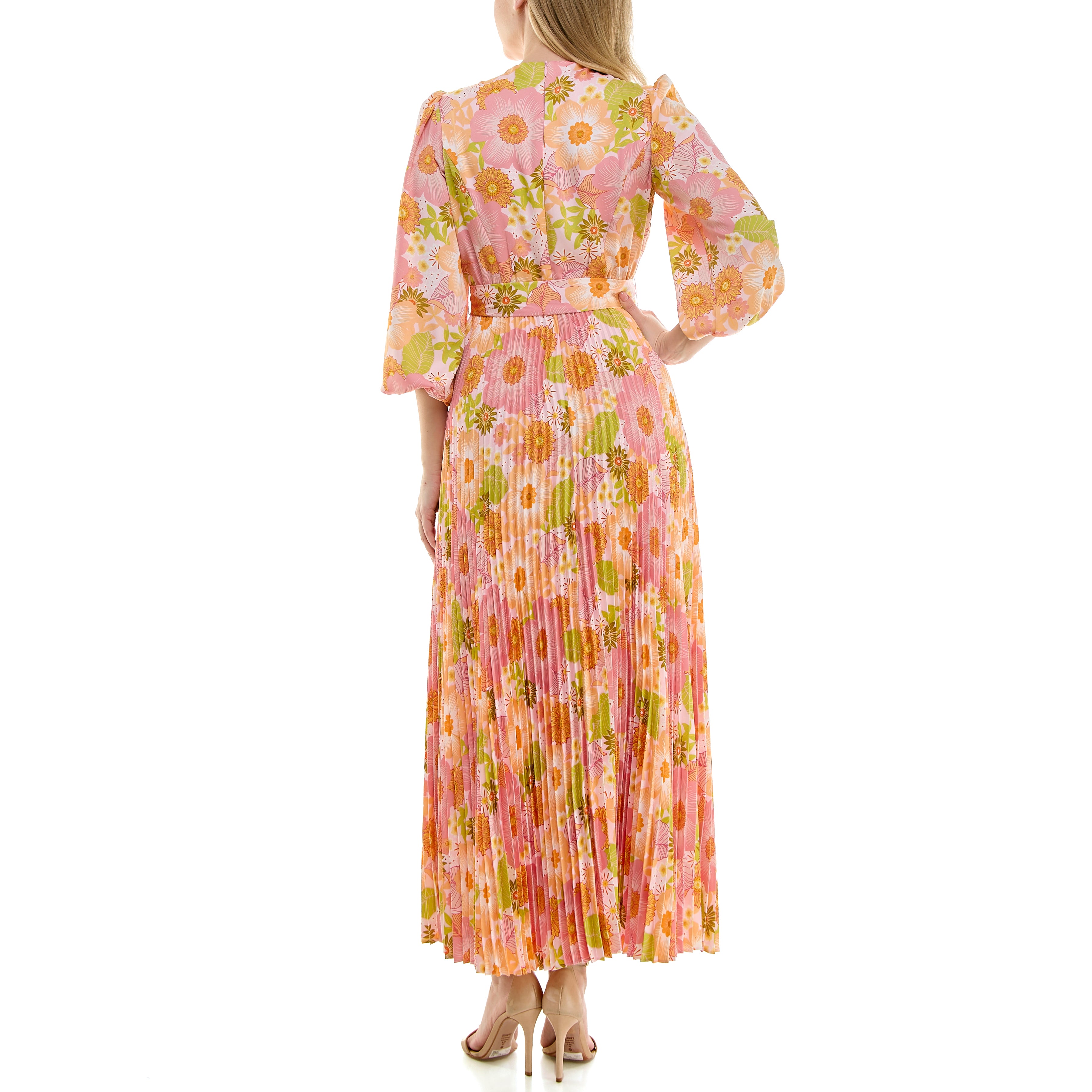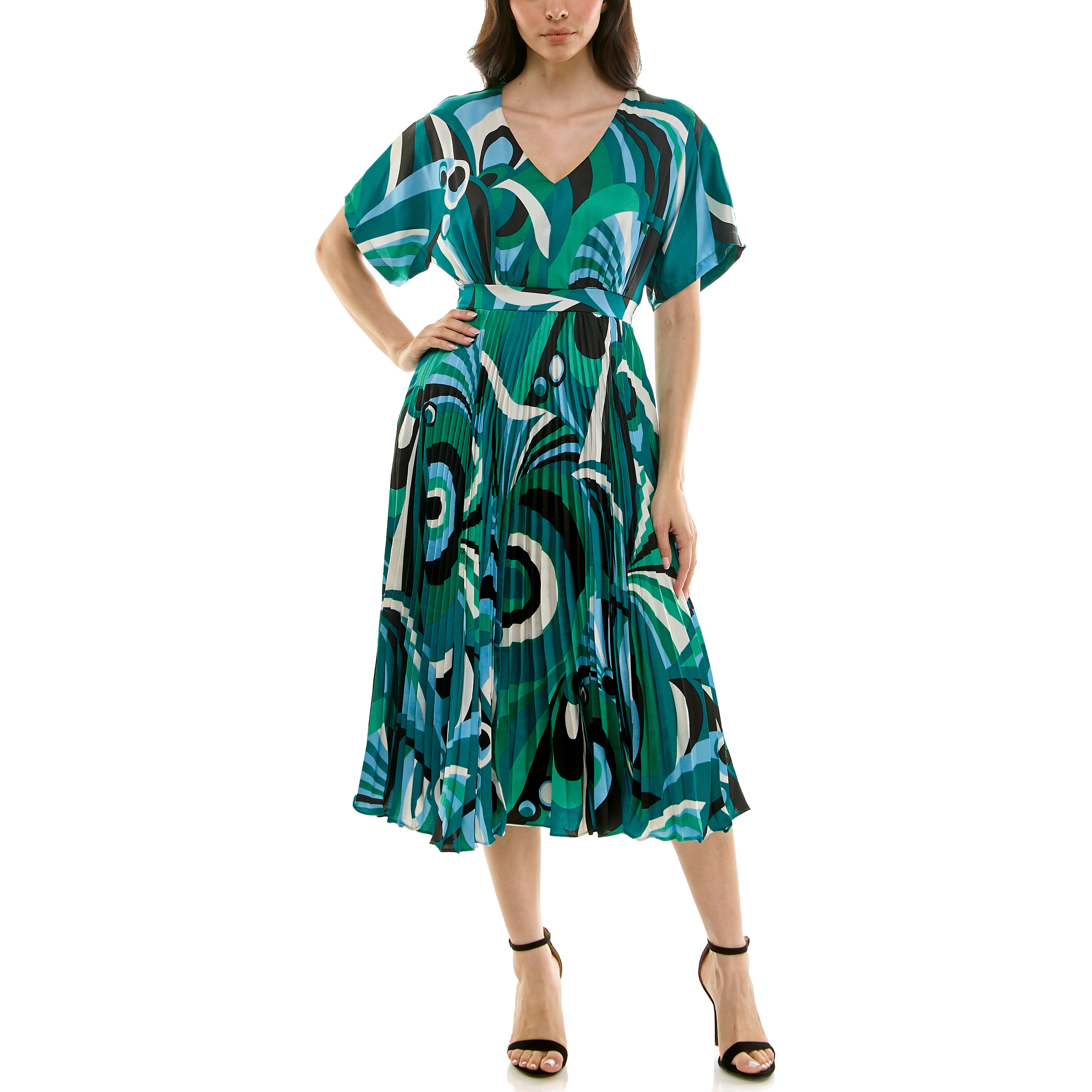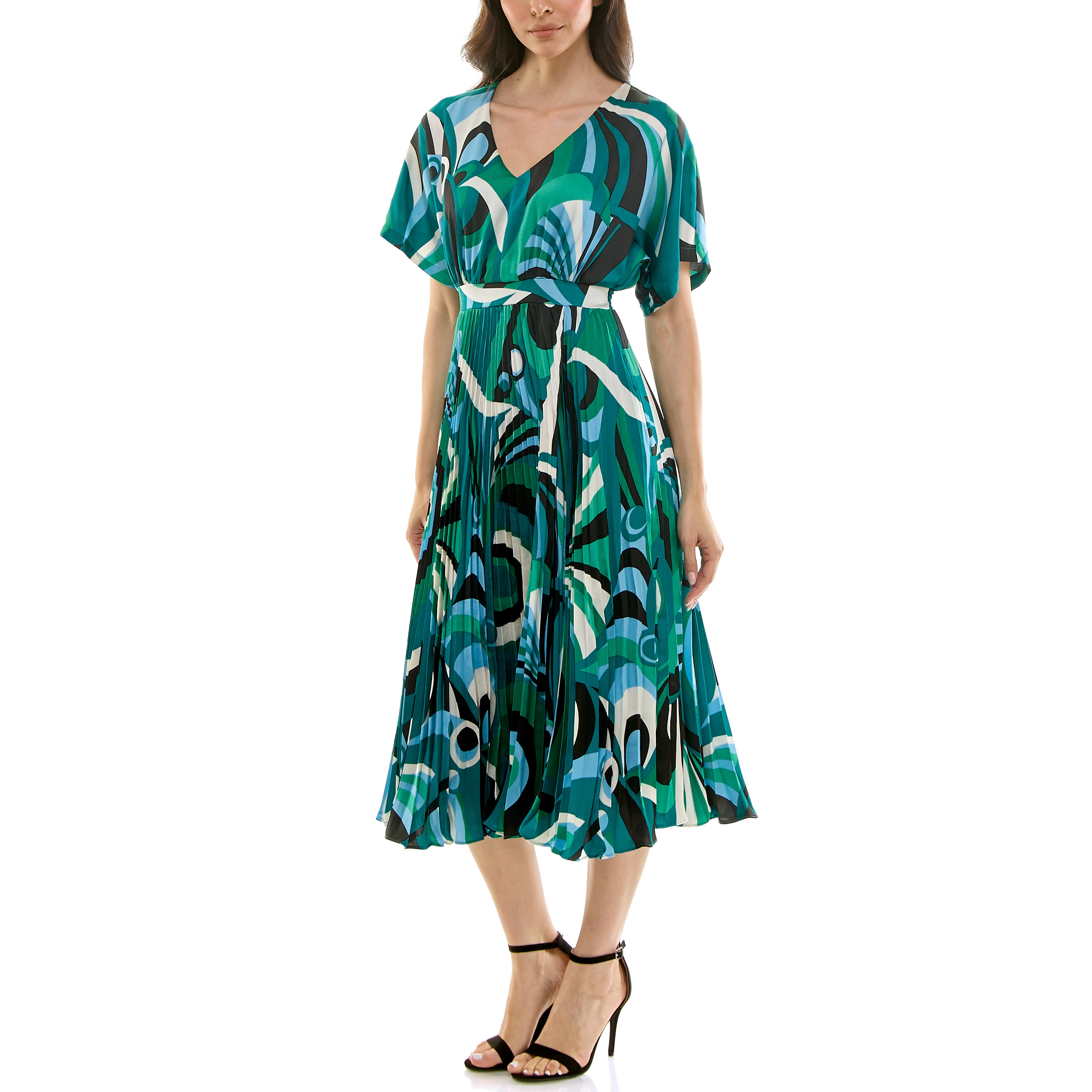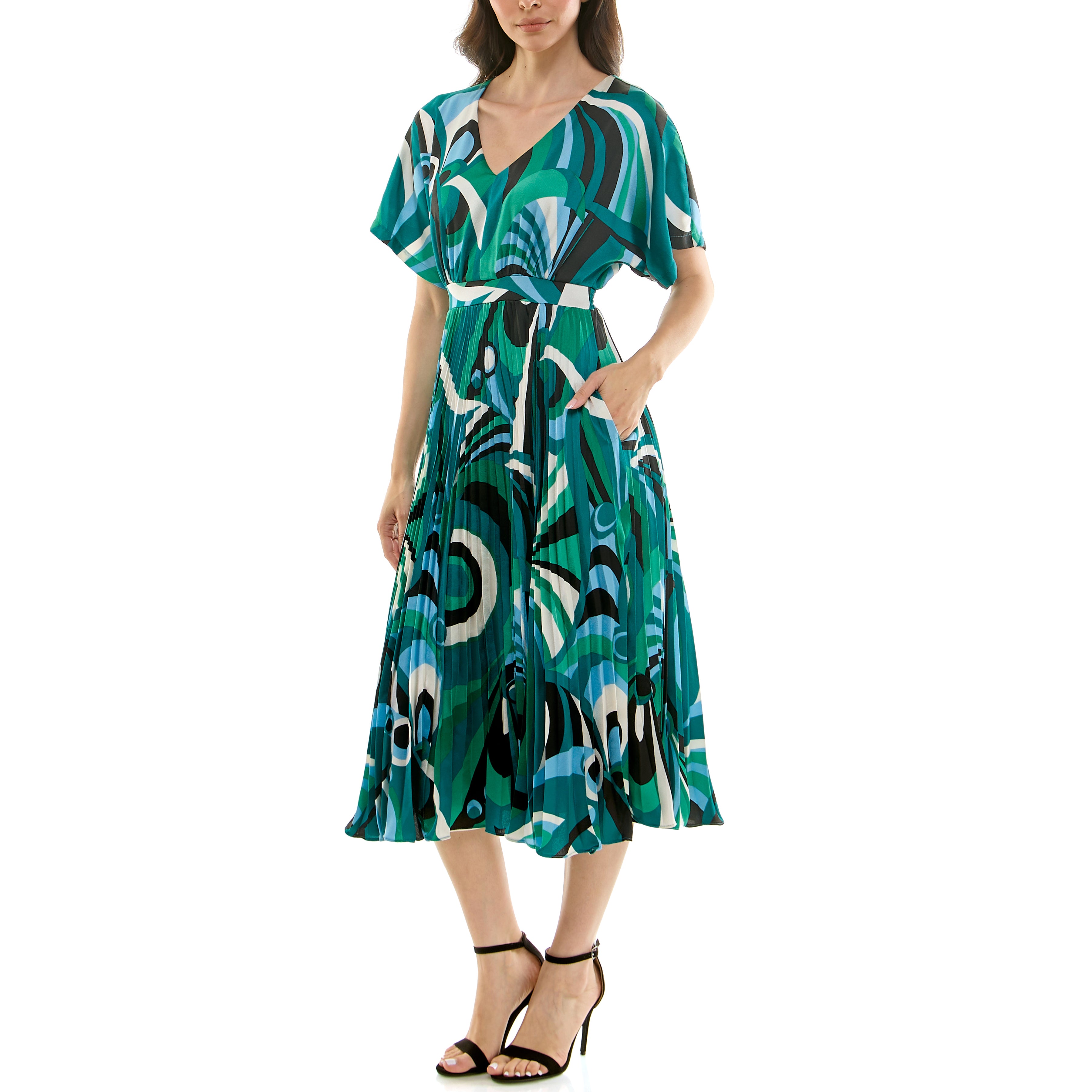 MAISON TARA RETRO INSPIRED PRINT ACCORDION PLEATED MIDI DRESS
