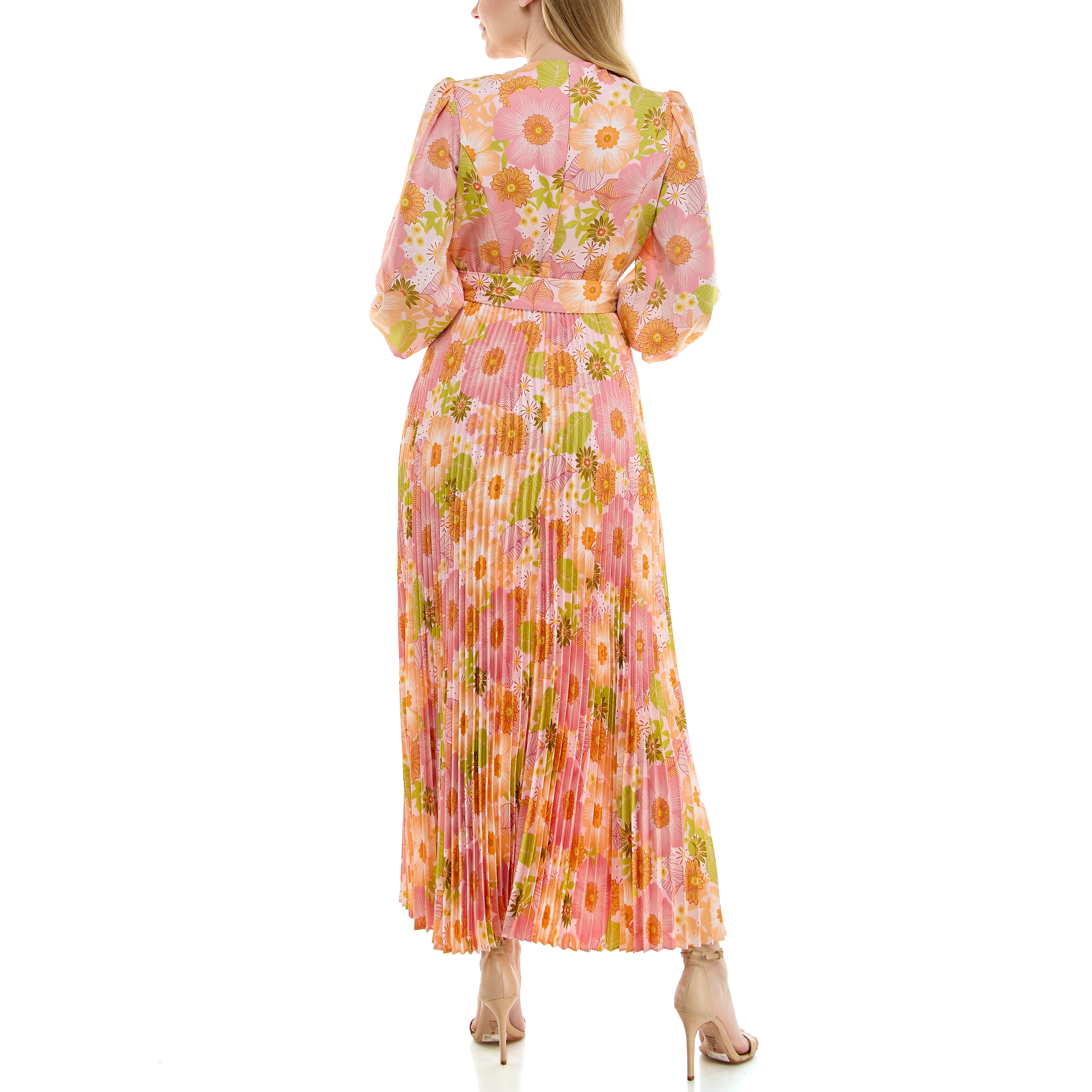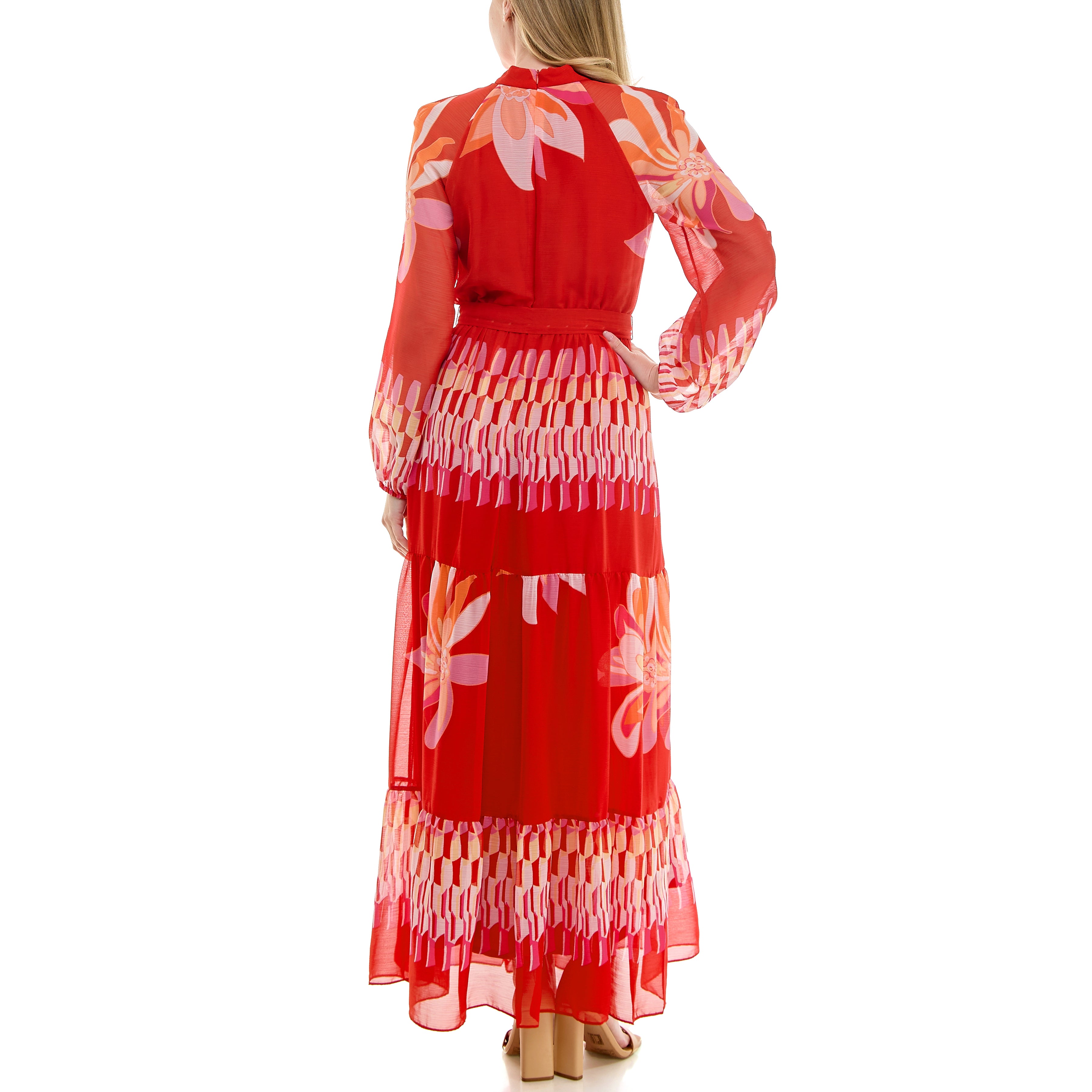 MAISON TARA RETRO FLORAL MIXED PRINT LONG SLEEVE MAXI DRESS