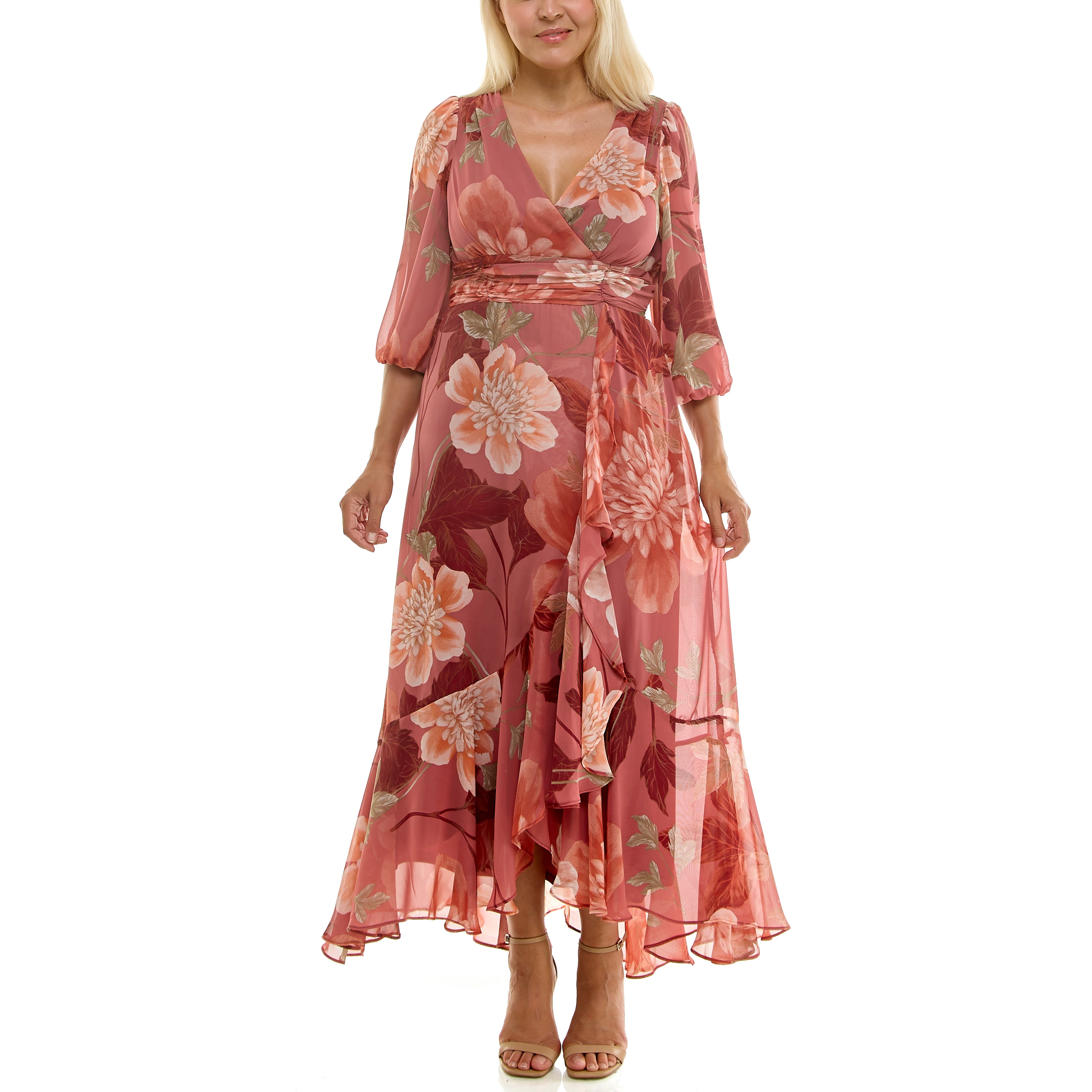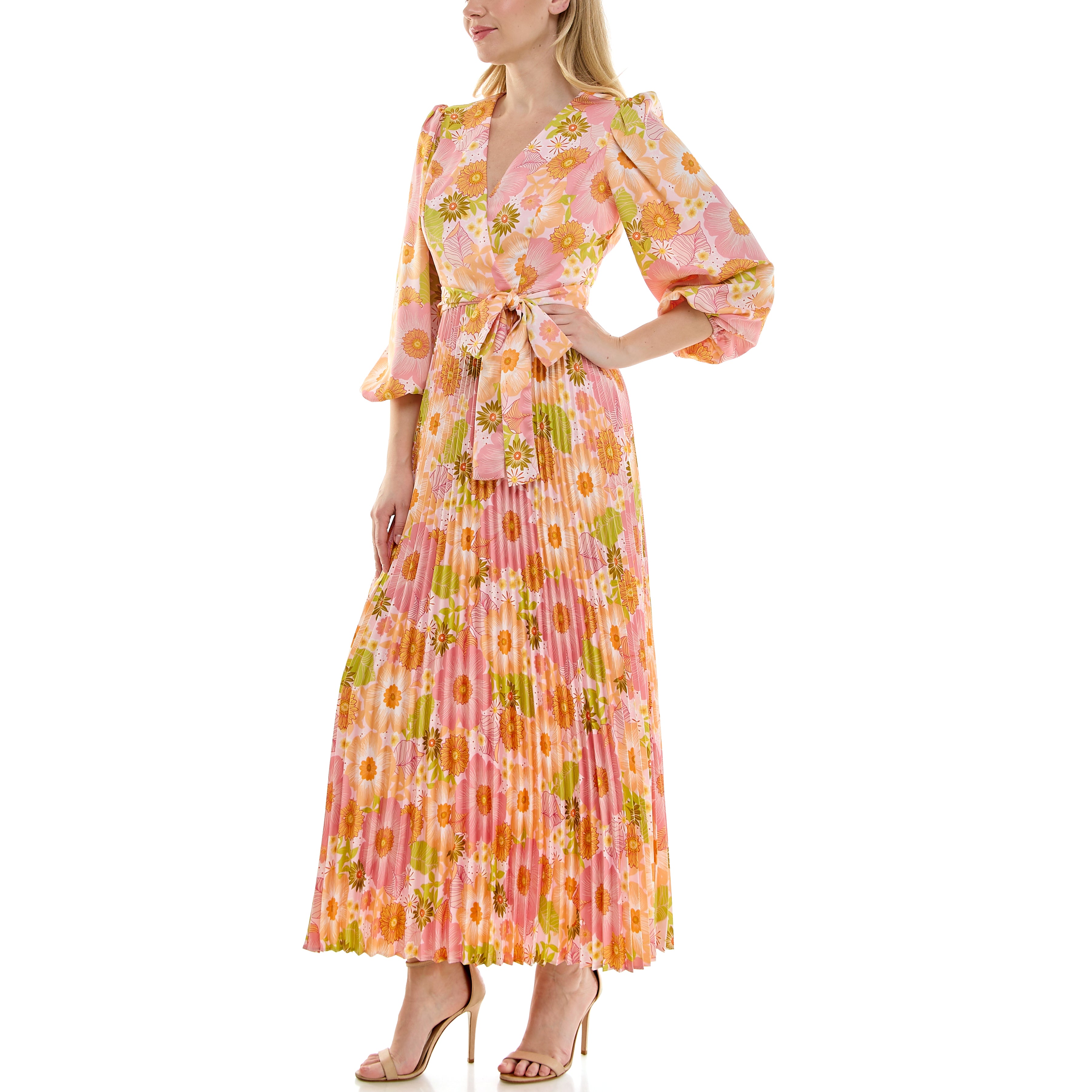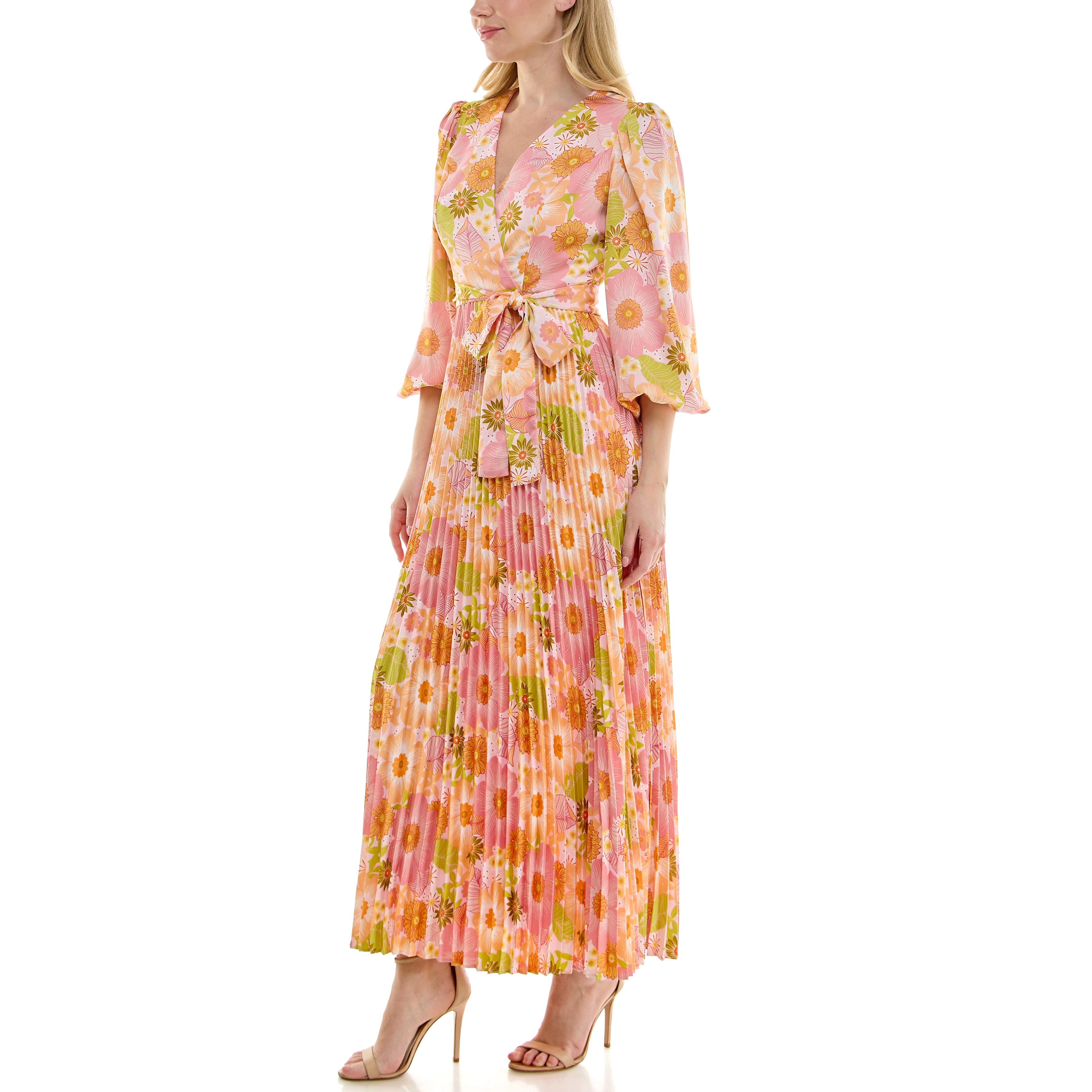 MAISON TARA RETRO INSPIRED FLORAL PRINT WRAP MAXI DRESS - EXCHANGES ONLY