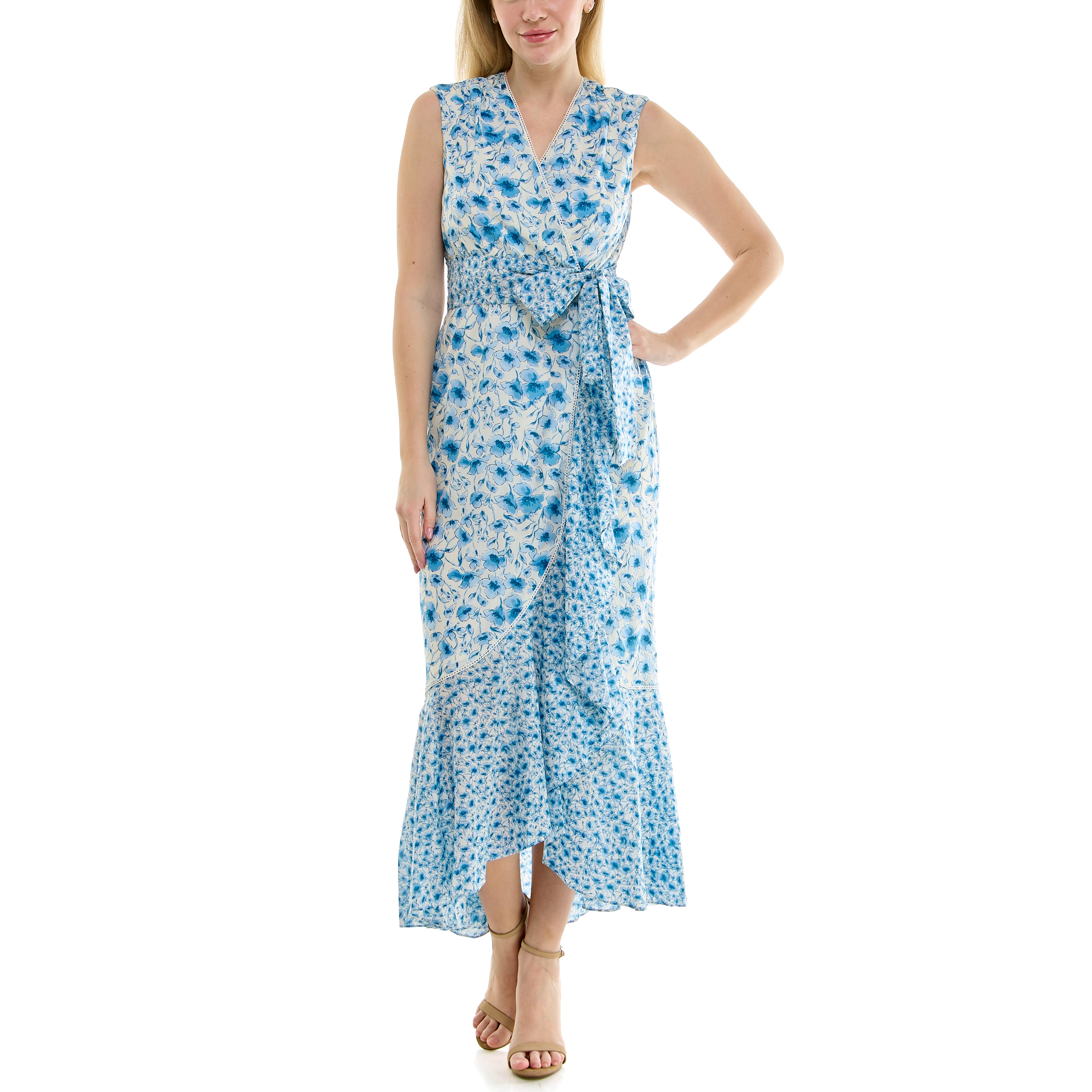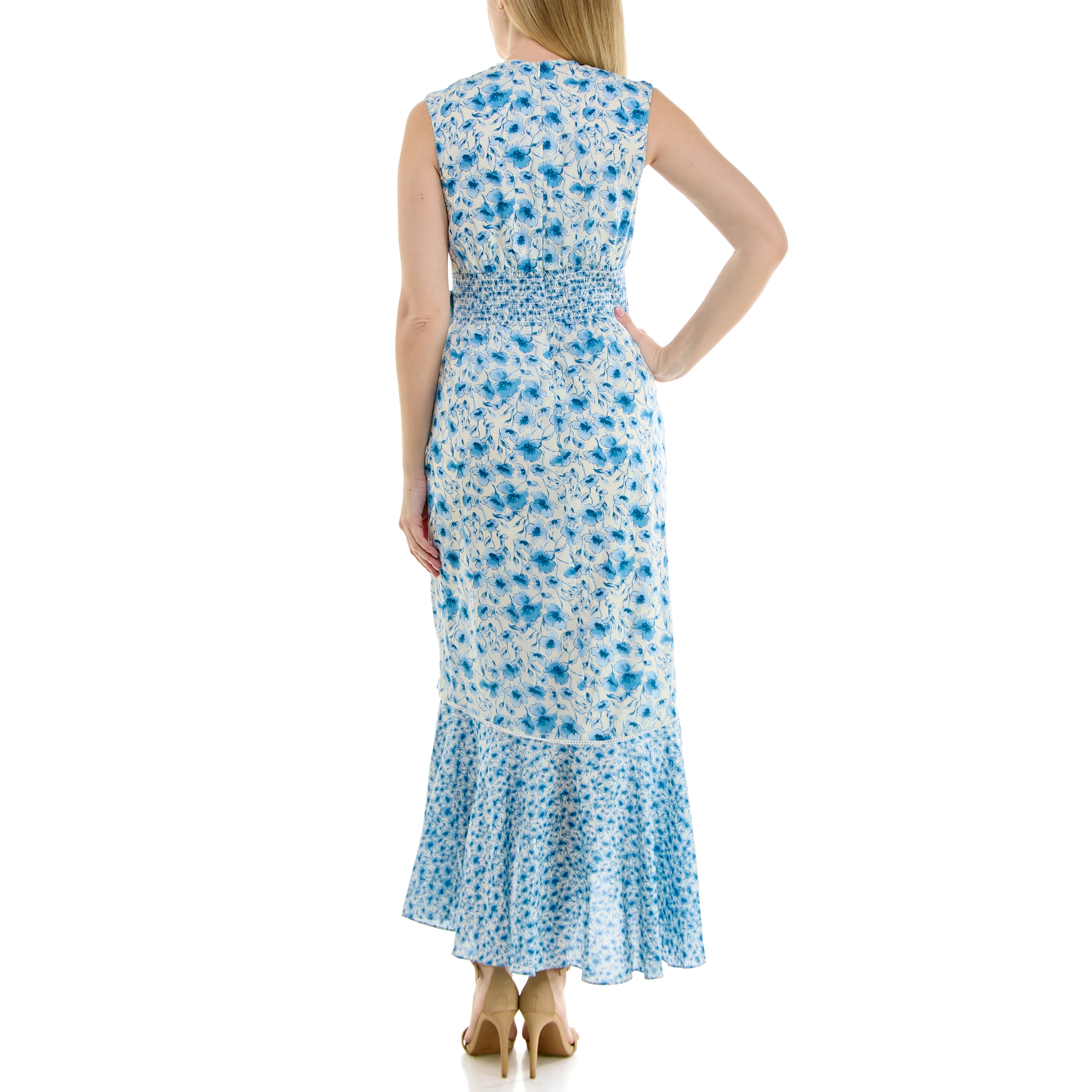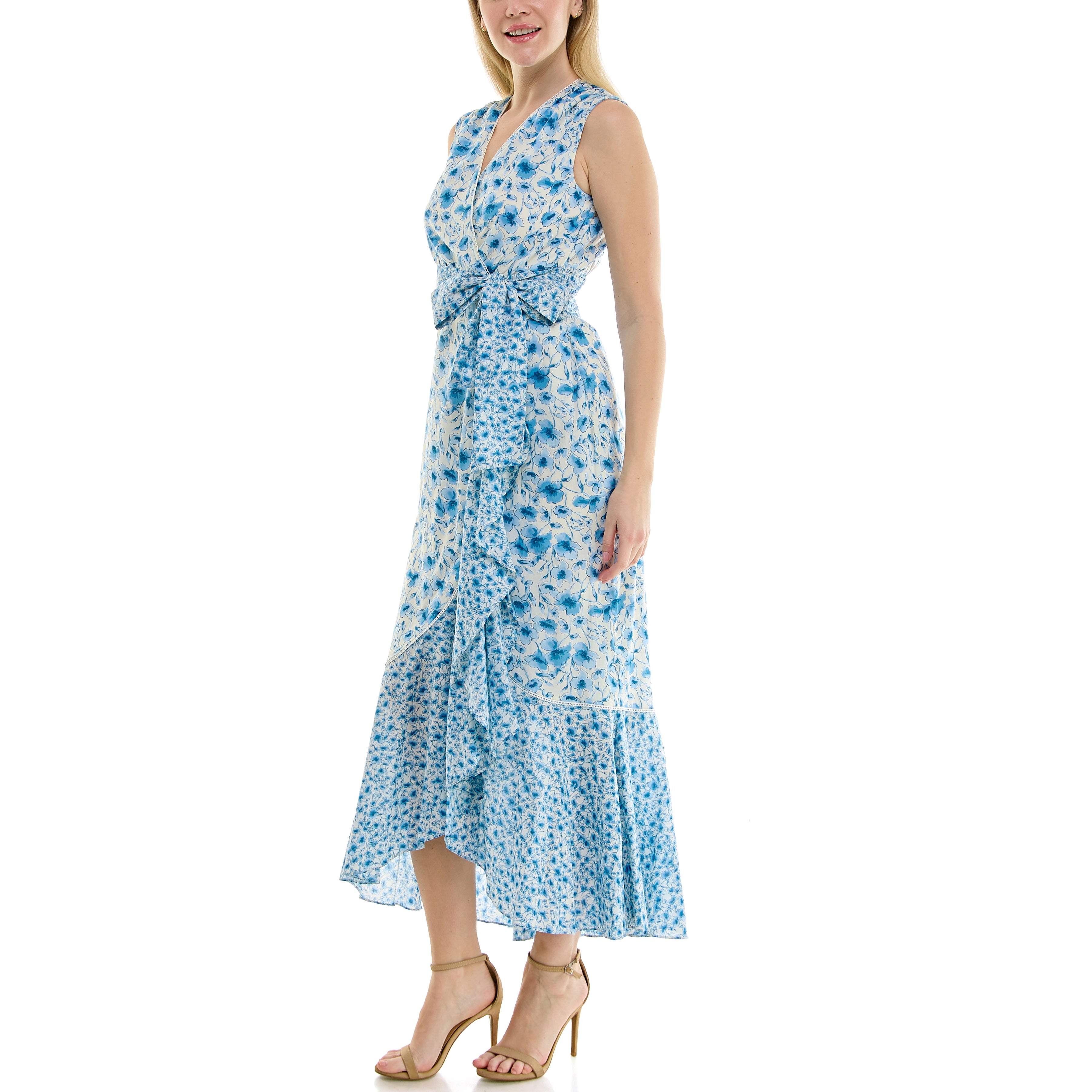 MAISON TARA SLEEVELESS MIXED BLUEBELL PRINT WRAP MAXI DRESS