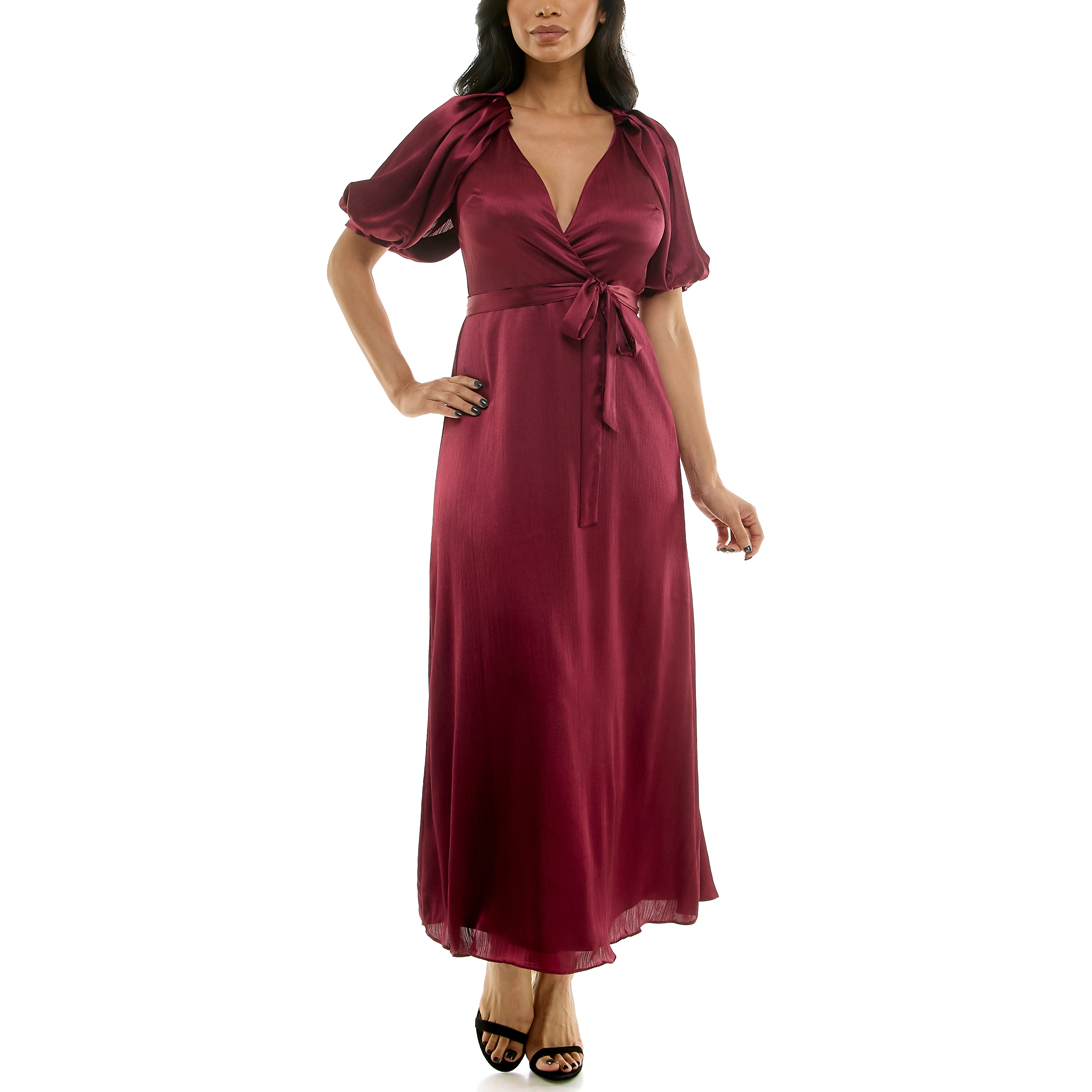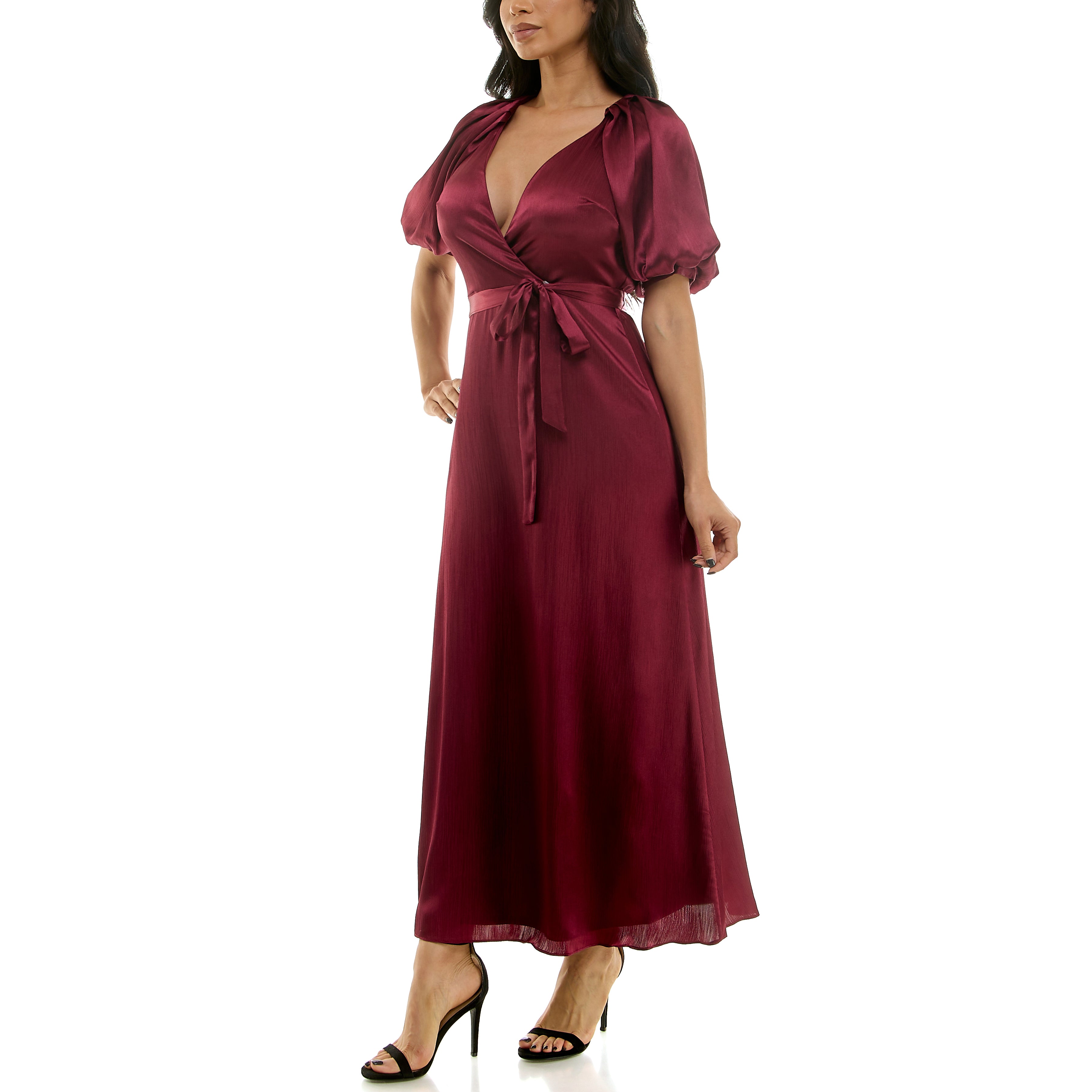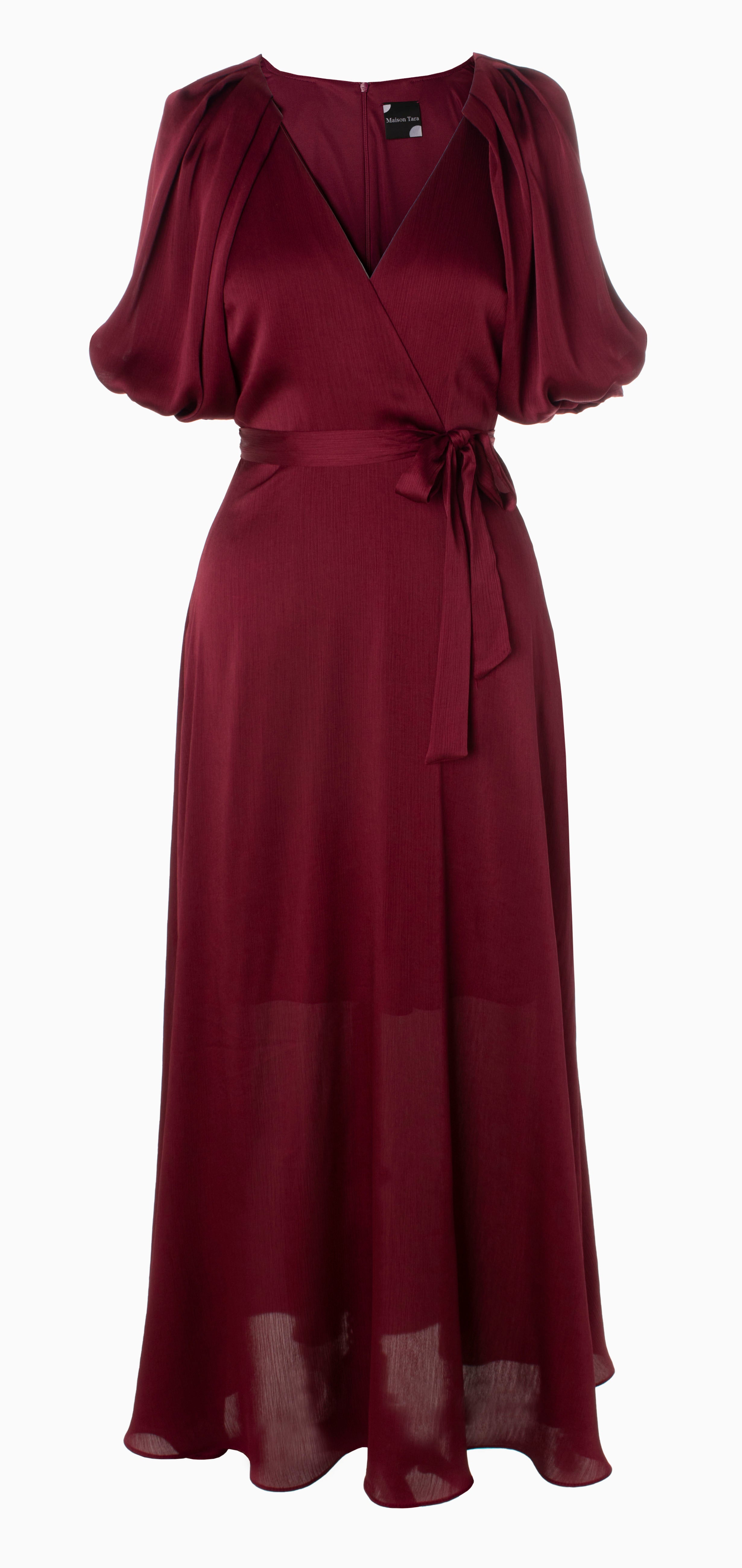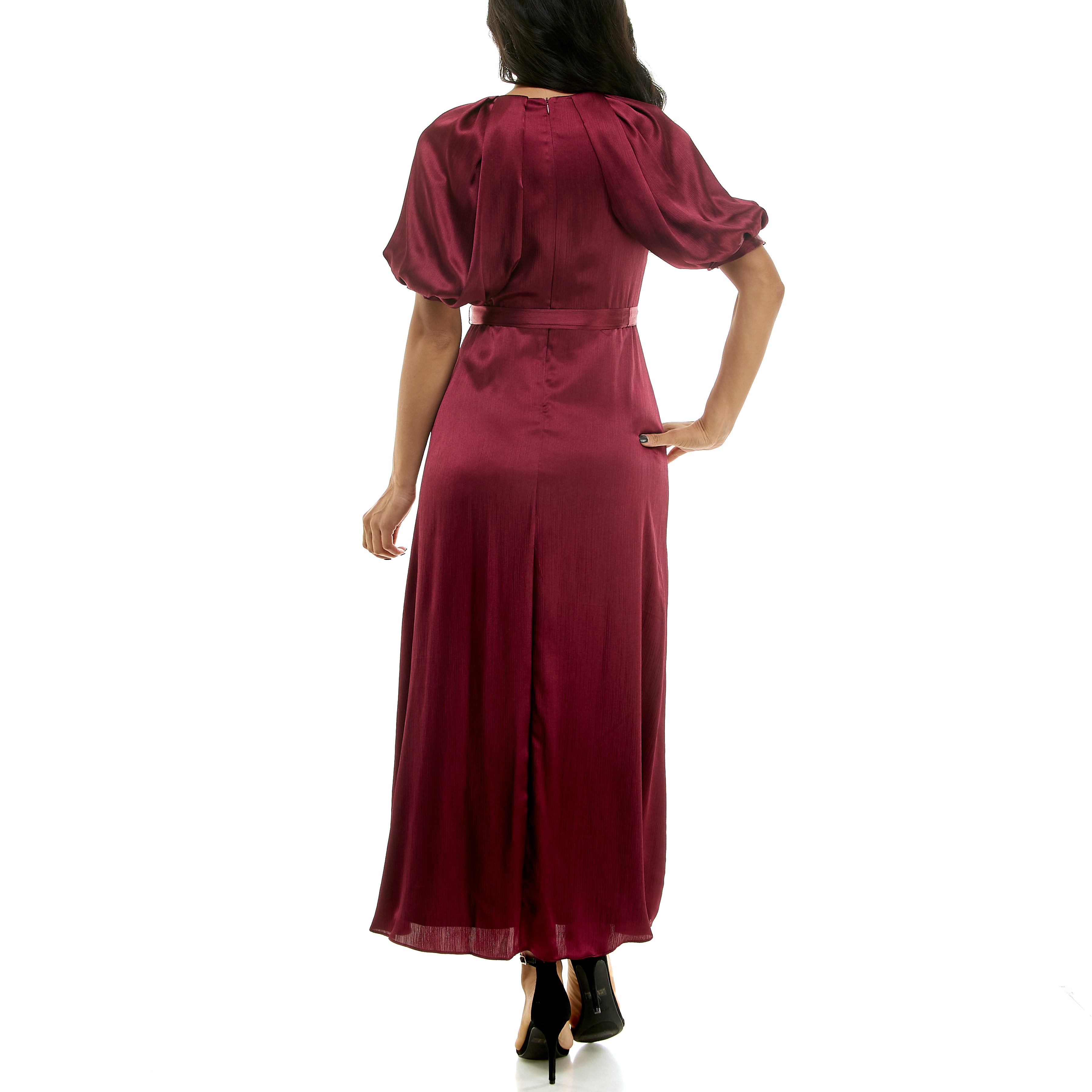 MAISON TARA SOLID SATIN PUFF SLEEVE MAXI DRESS