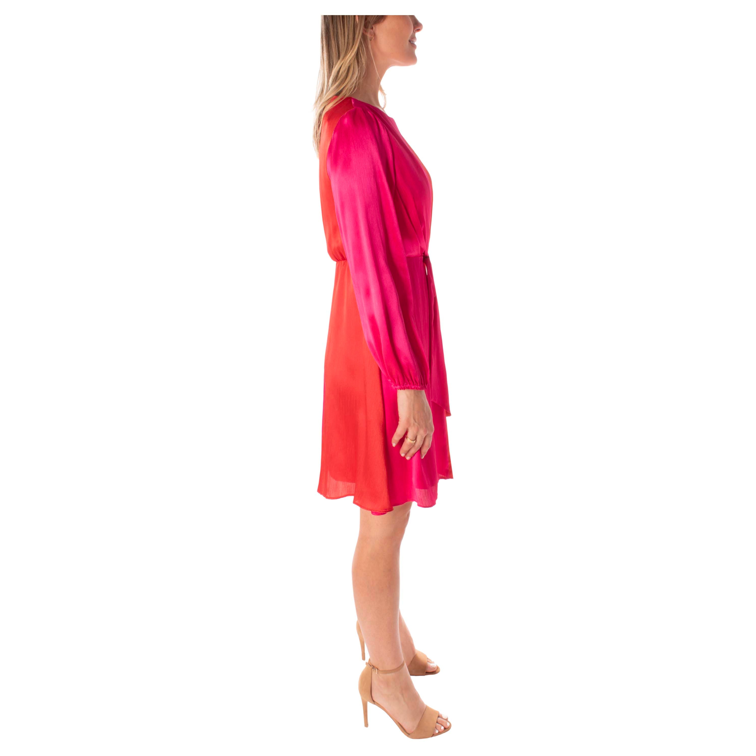 MAISON TARA SATIN COLOR BLOCK GATHERED WAIST MIDI DRESS