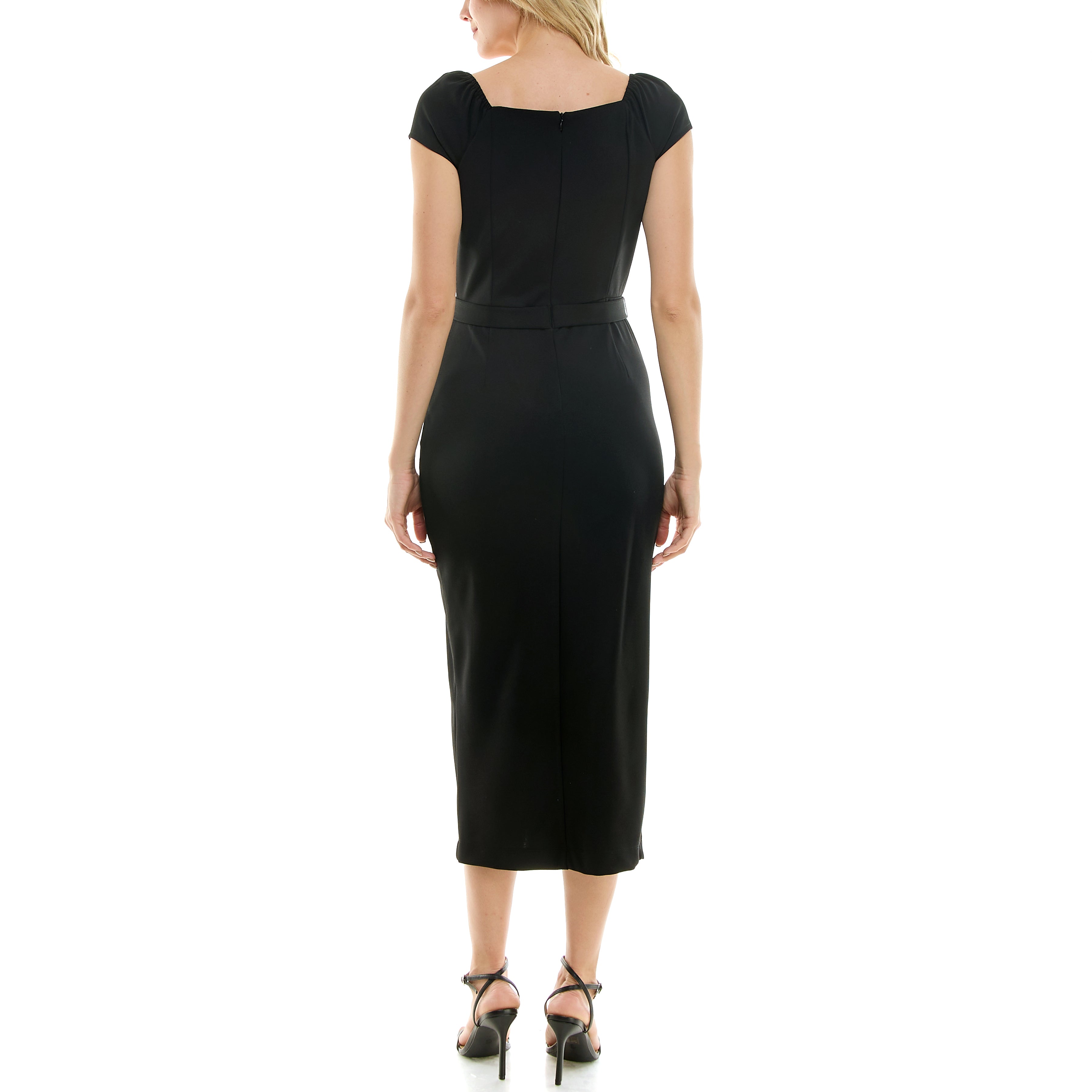 MAISON TARA SWEETHEART NECK BELTED SLIT MIDI DRESS - EXCHANGES ONLY