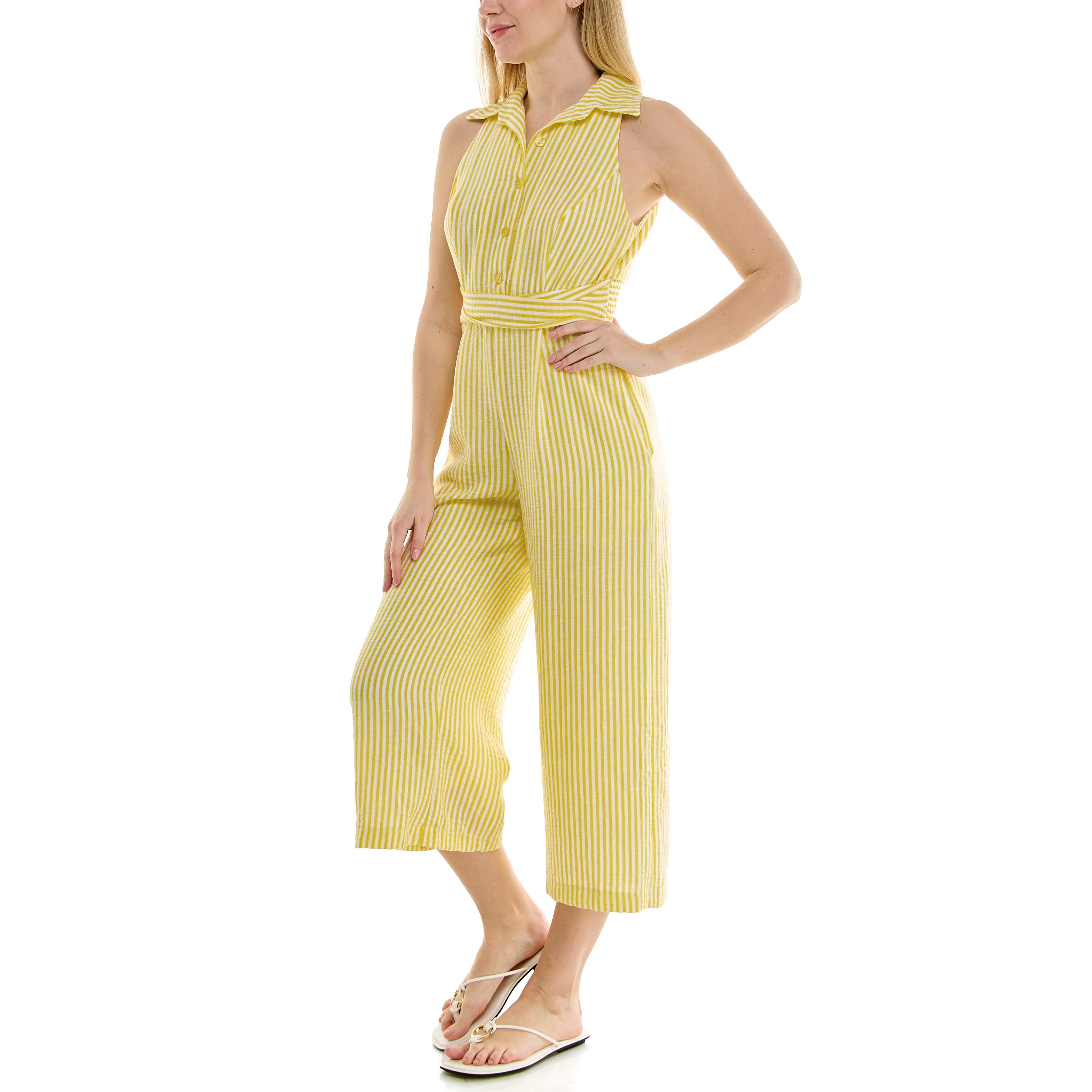 MAISON TARA SEERSUCKER LINEN JUMPSUIT WITH POCKETS
