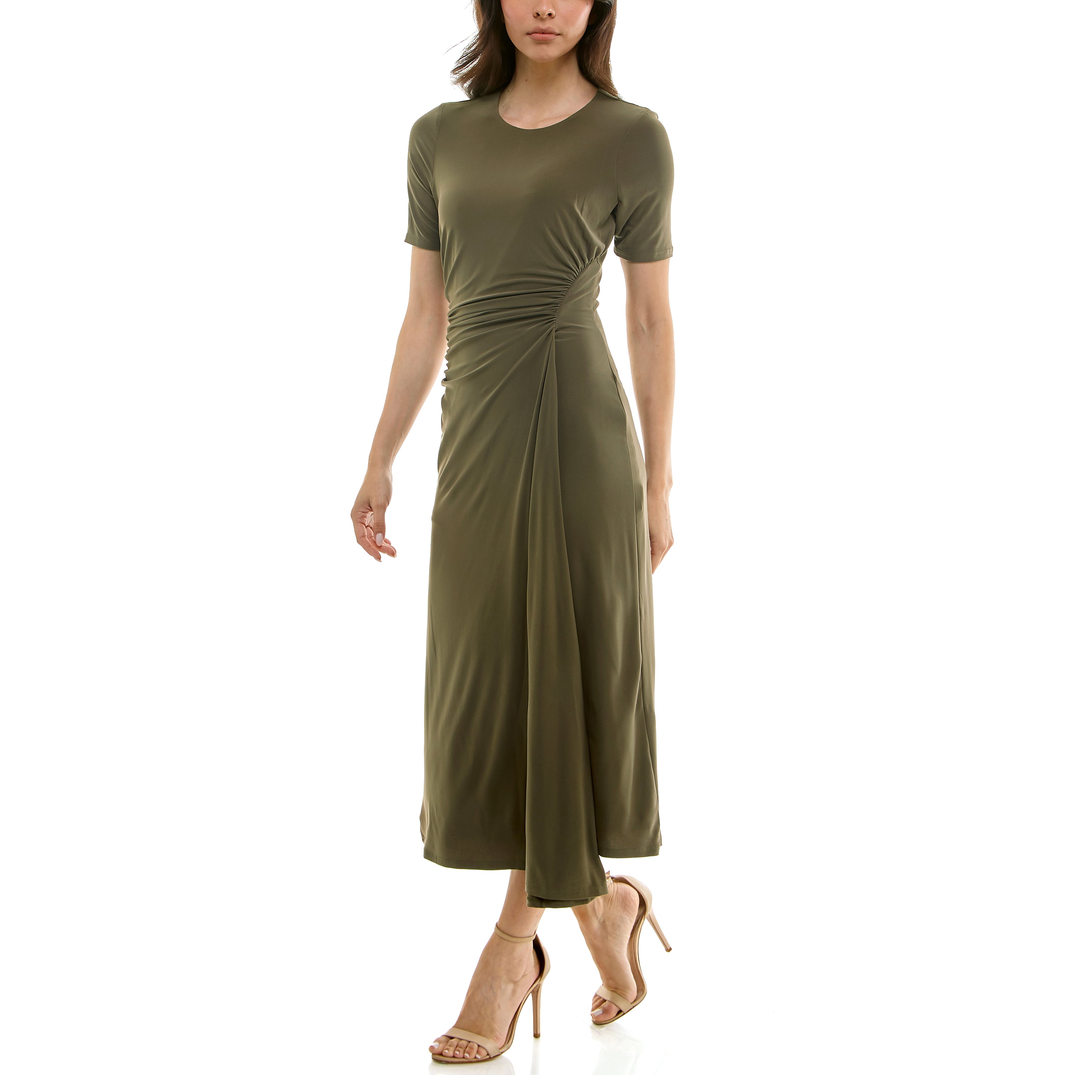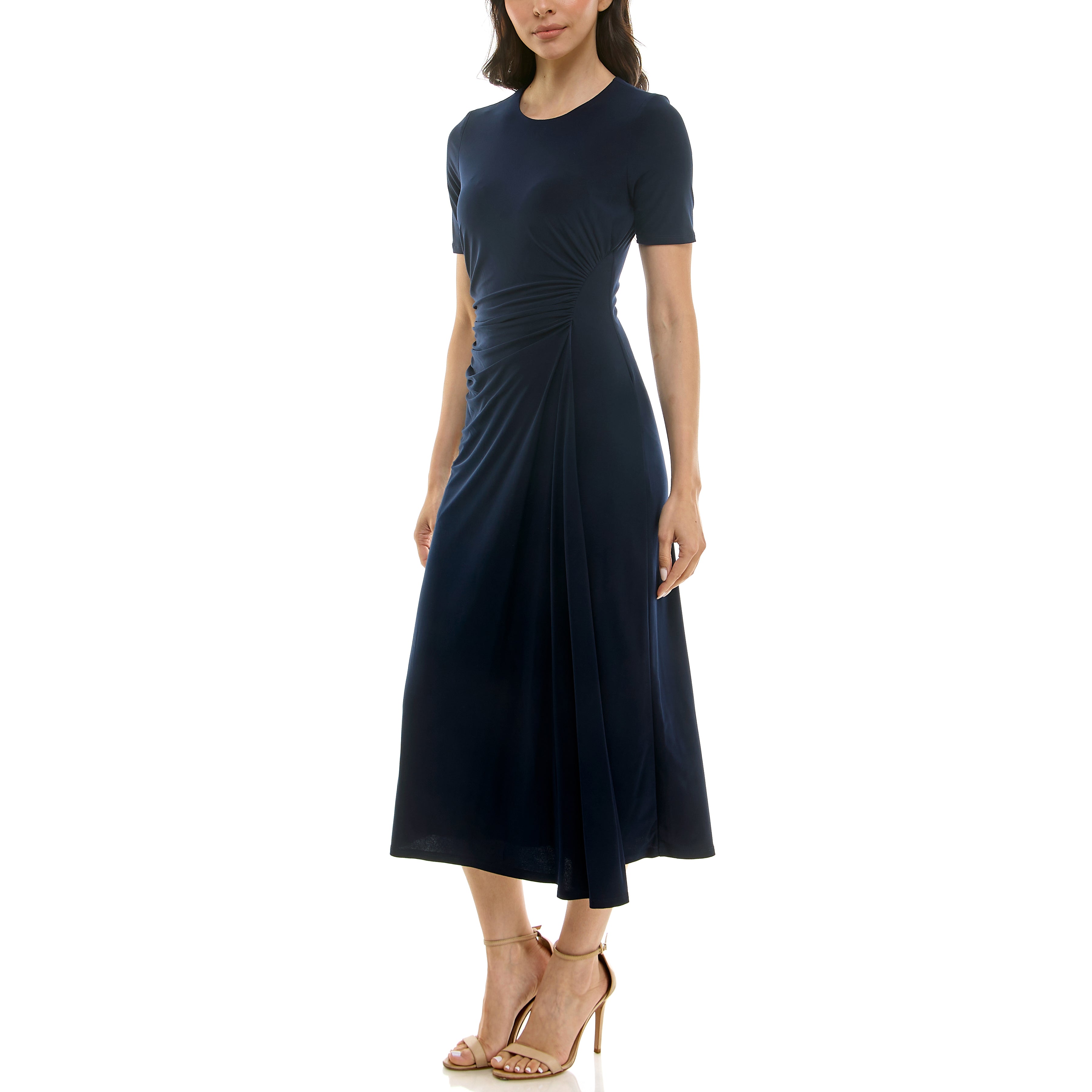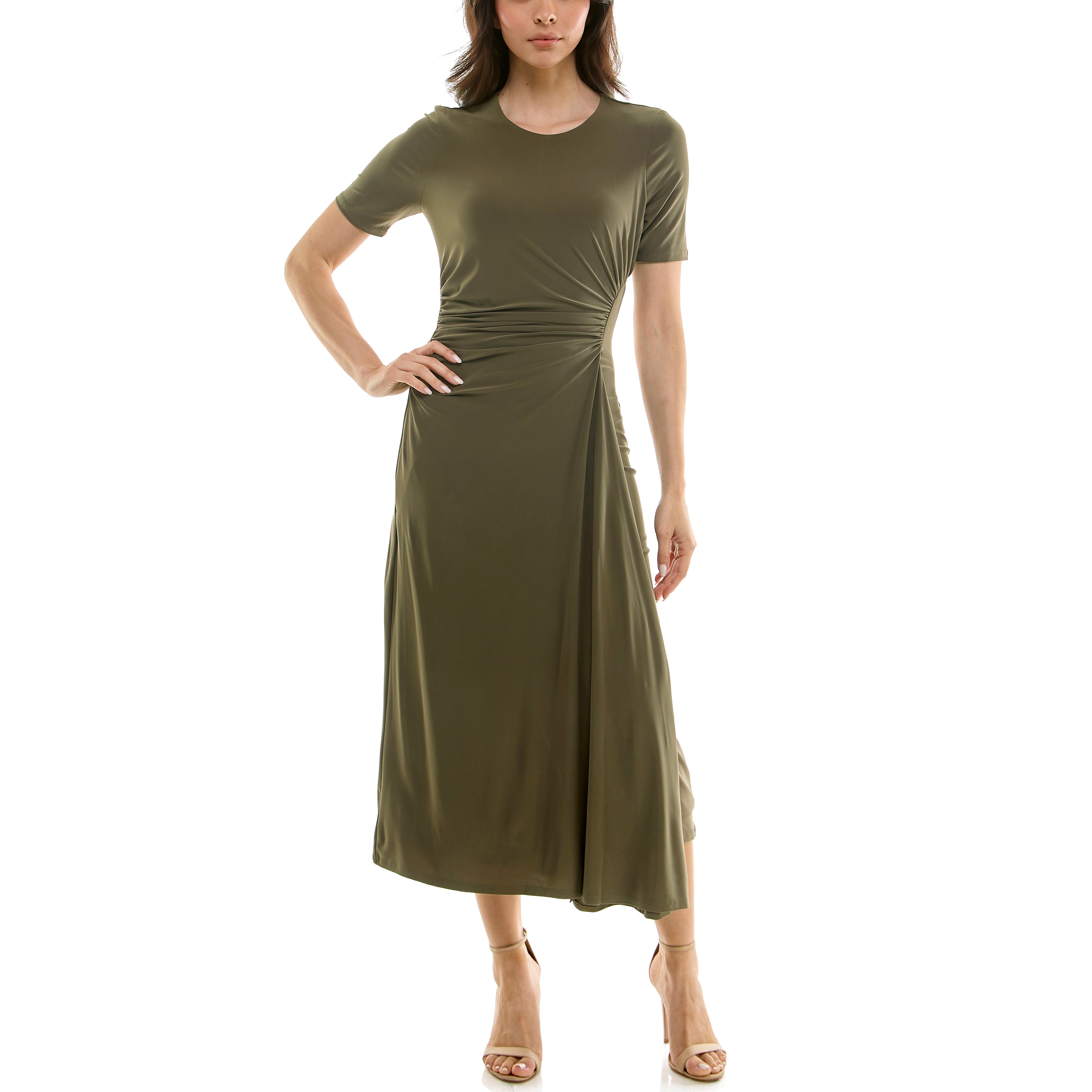 MAISON TARA SHORT SLEEVE RUCHED STRETCH KNIT MIDI DRESS