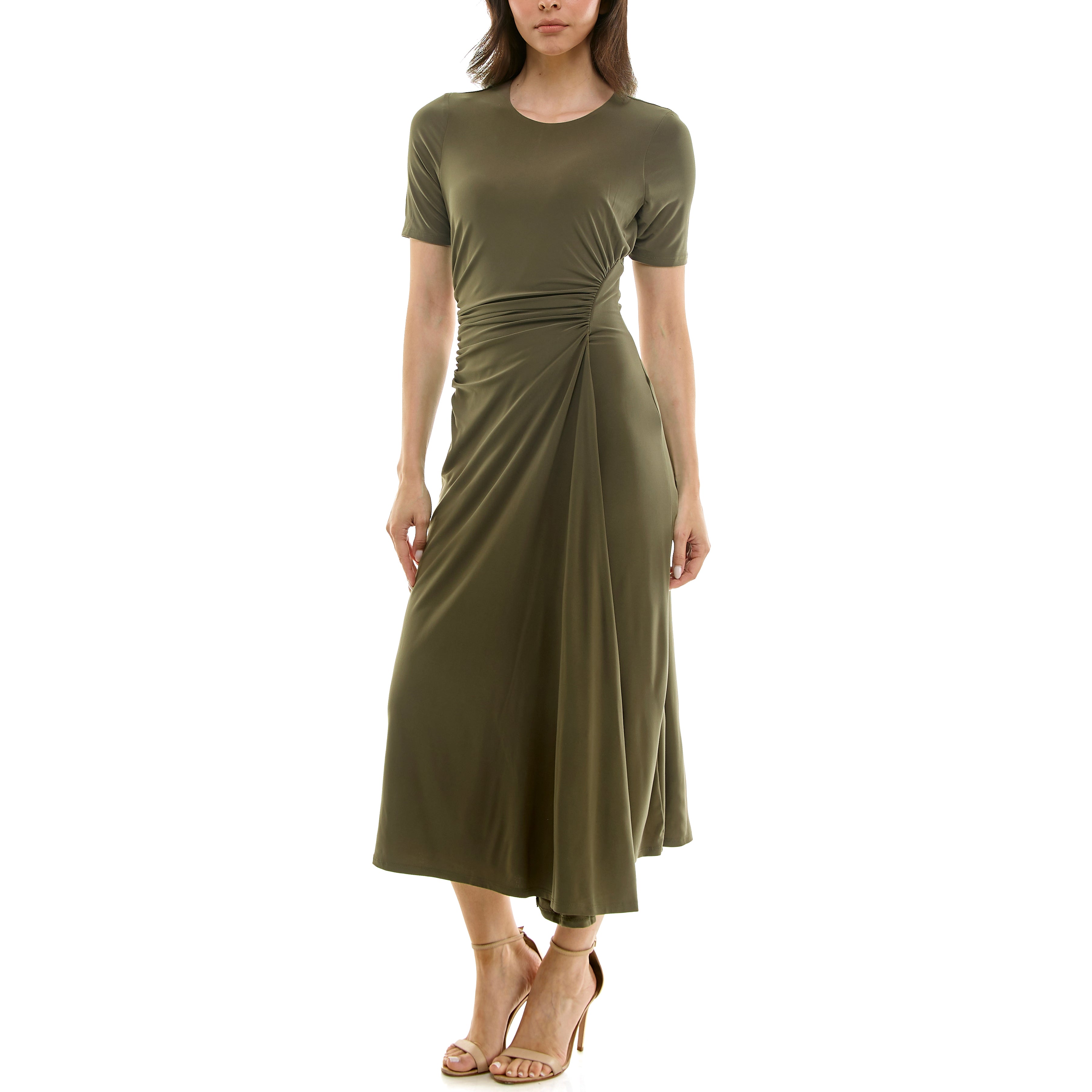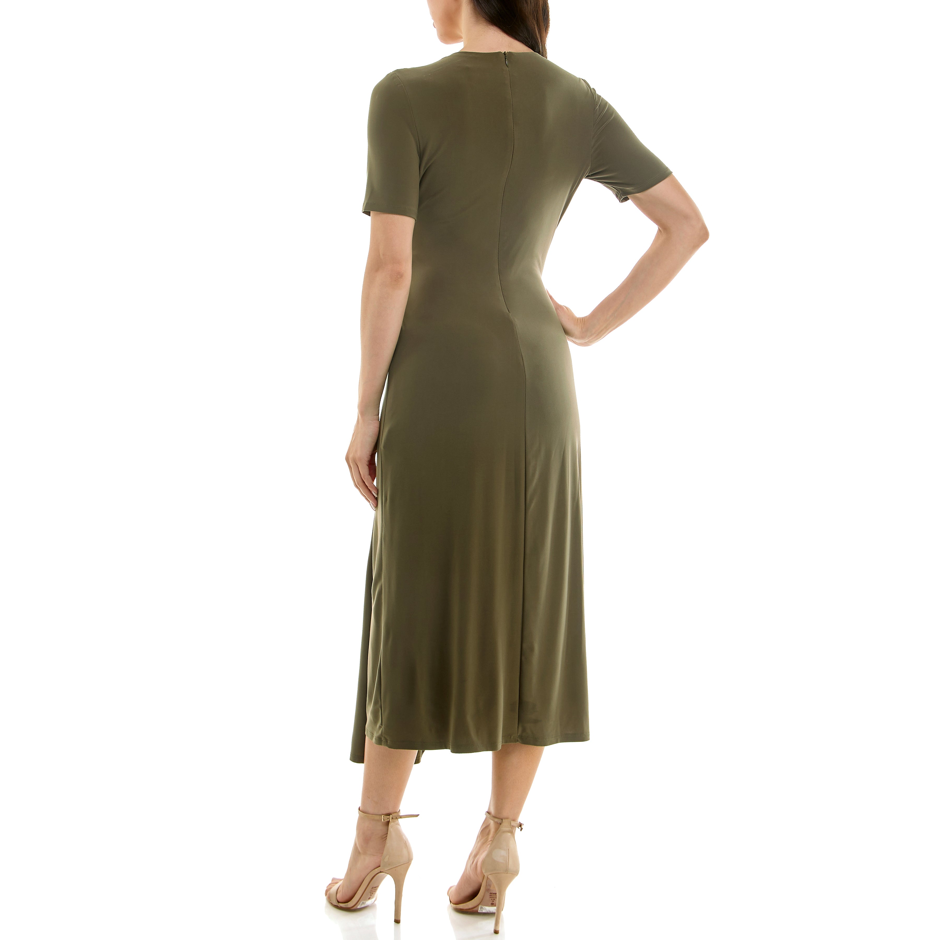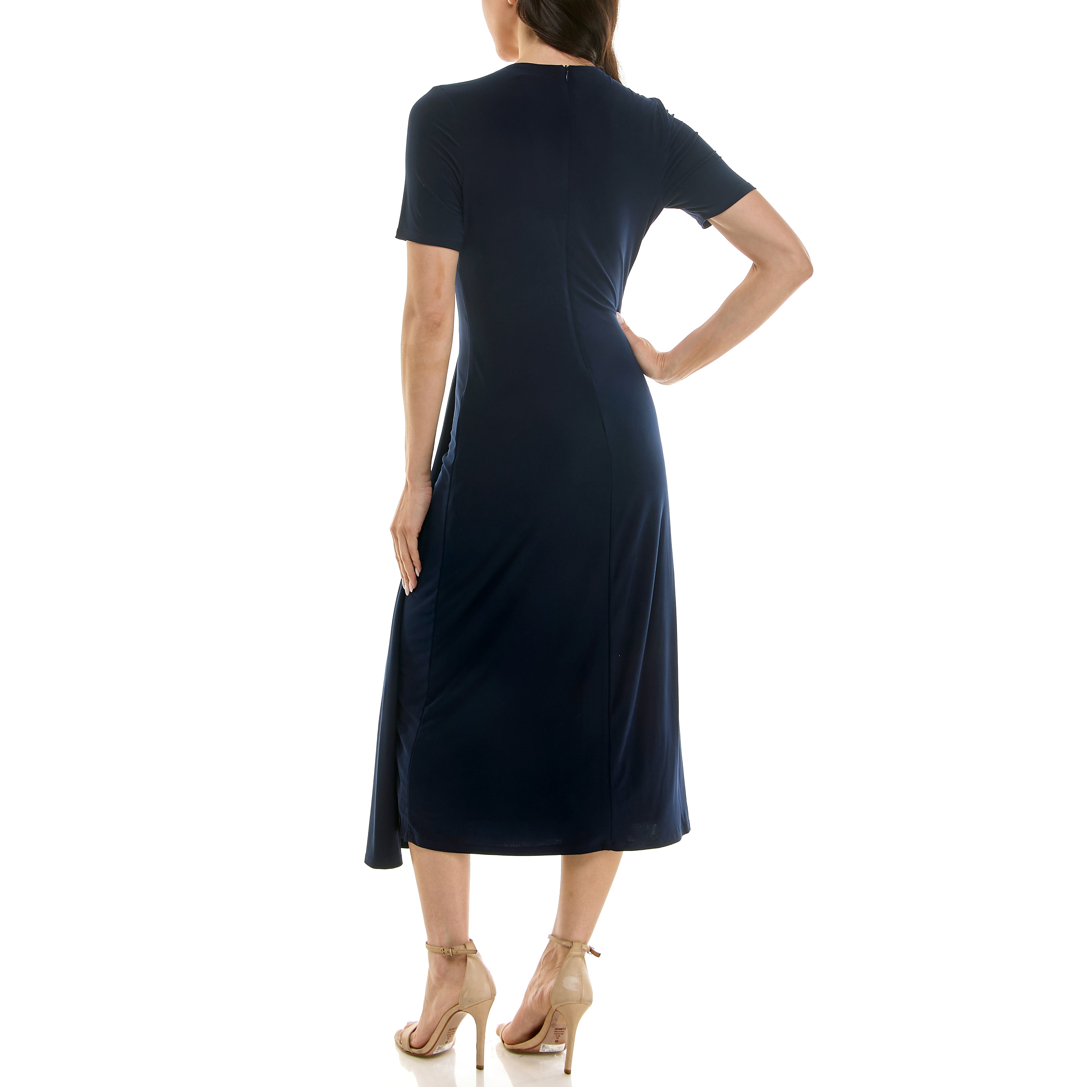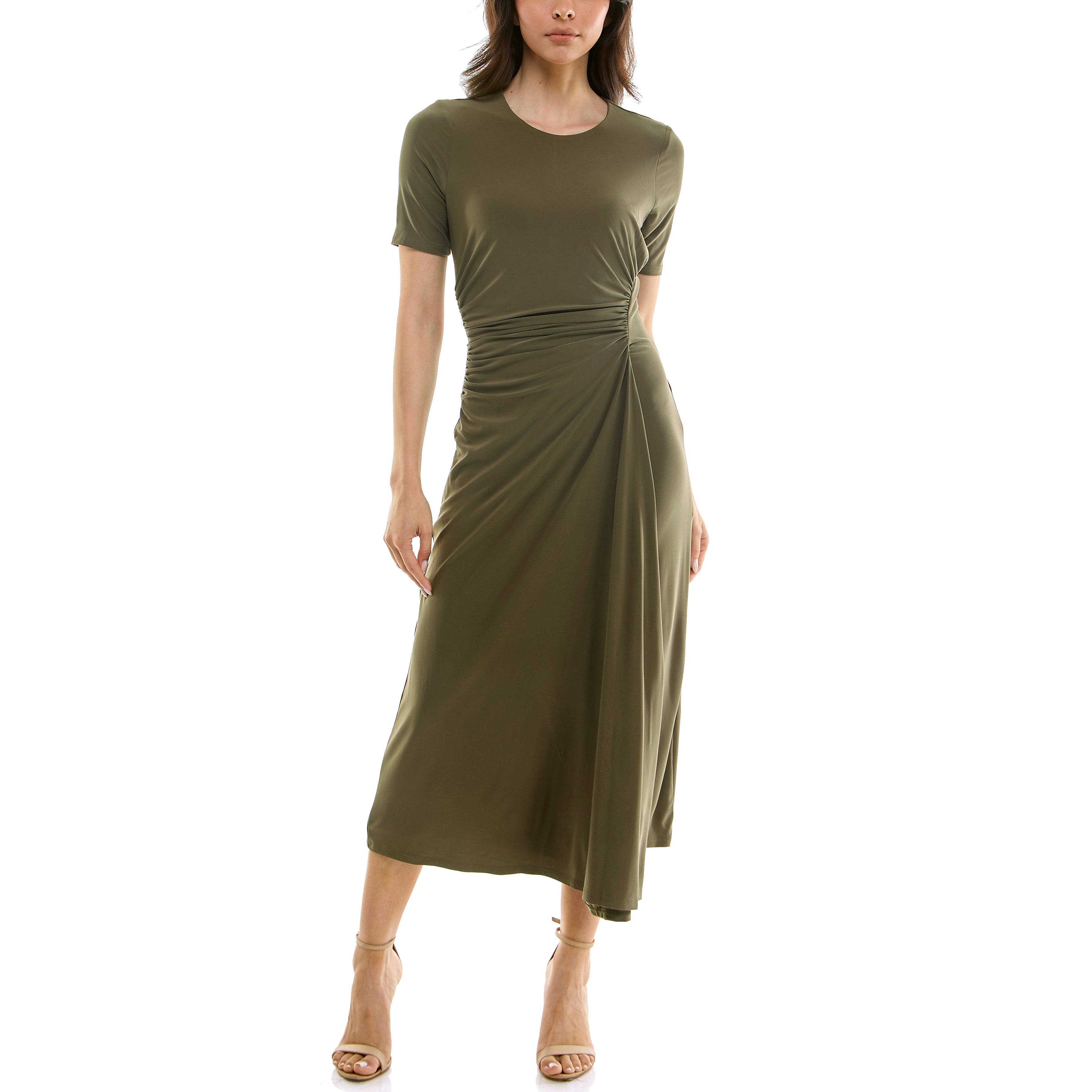 MAISON TARA SHORT SLEEVE RUCHED STRETCH KNIT MIDI DRESS