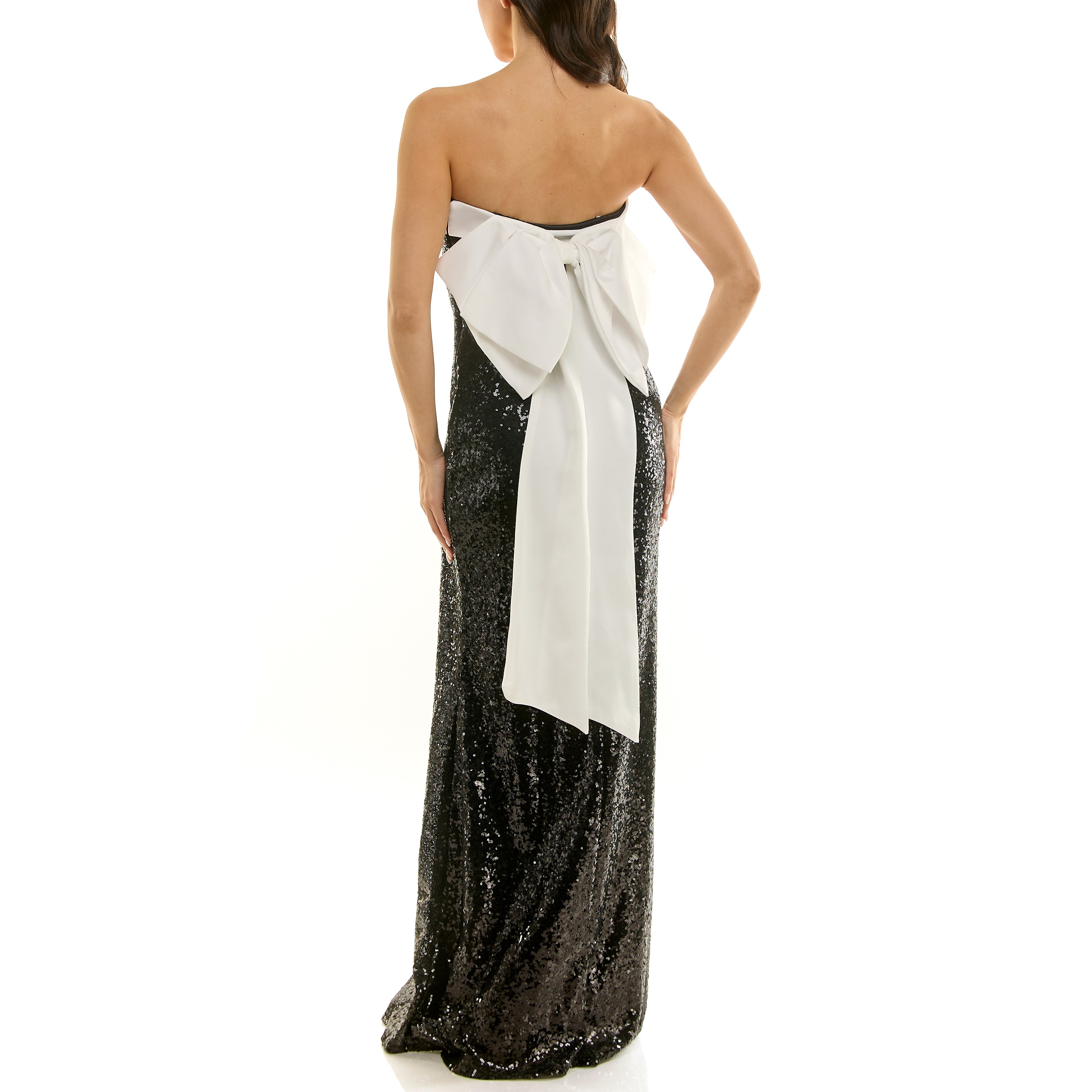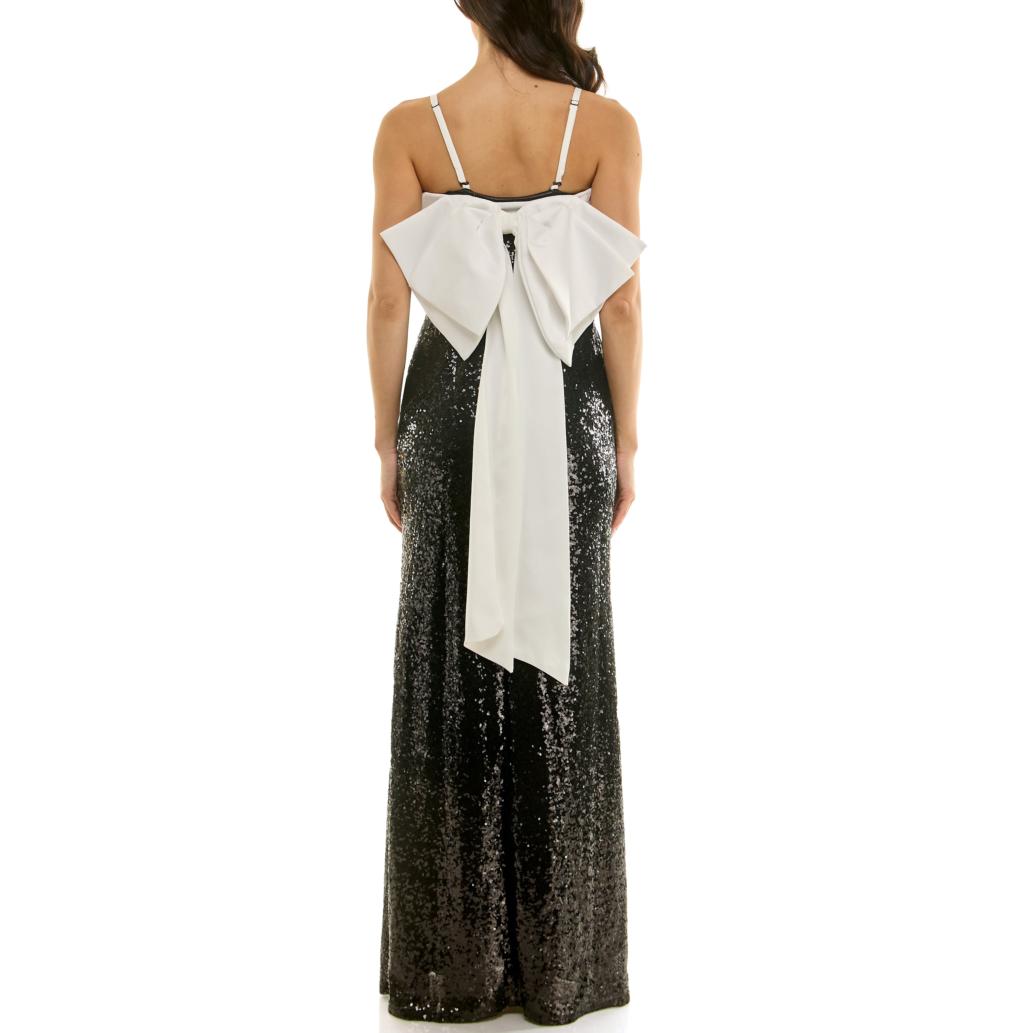 MAISON TARA SLEEVELESS CONTRAST SASH REAR BOW SEQUIN GOWN