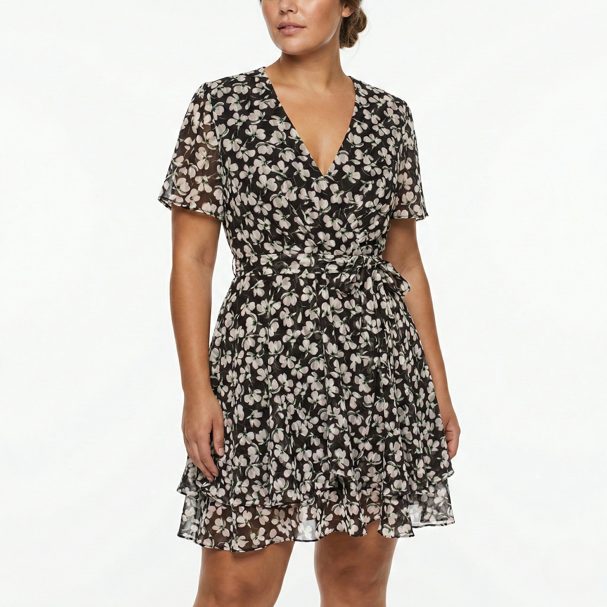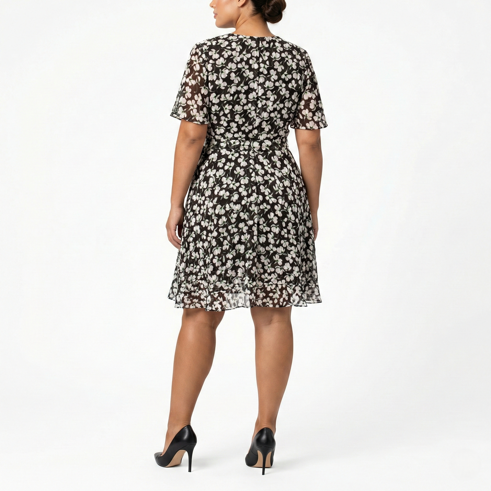 MAISON TARA FLUTTER SLEEVE CHIFFON FLORAL PRINT KNEE LENGTH CURVE DRESS - EXCHANGES ONLY