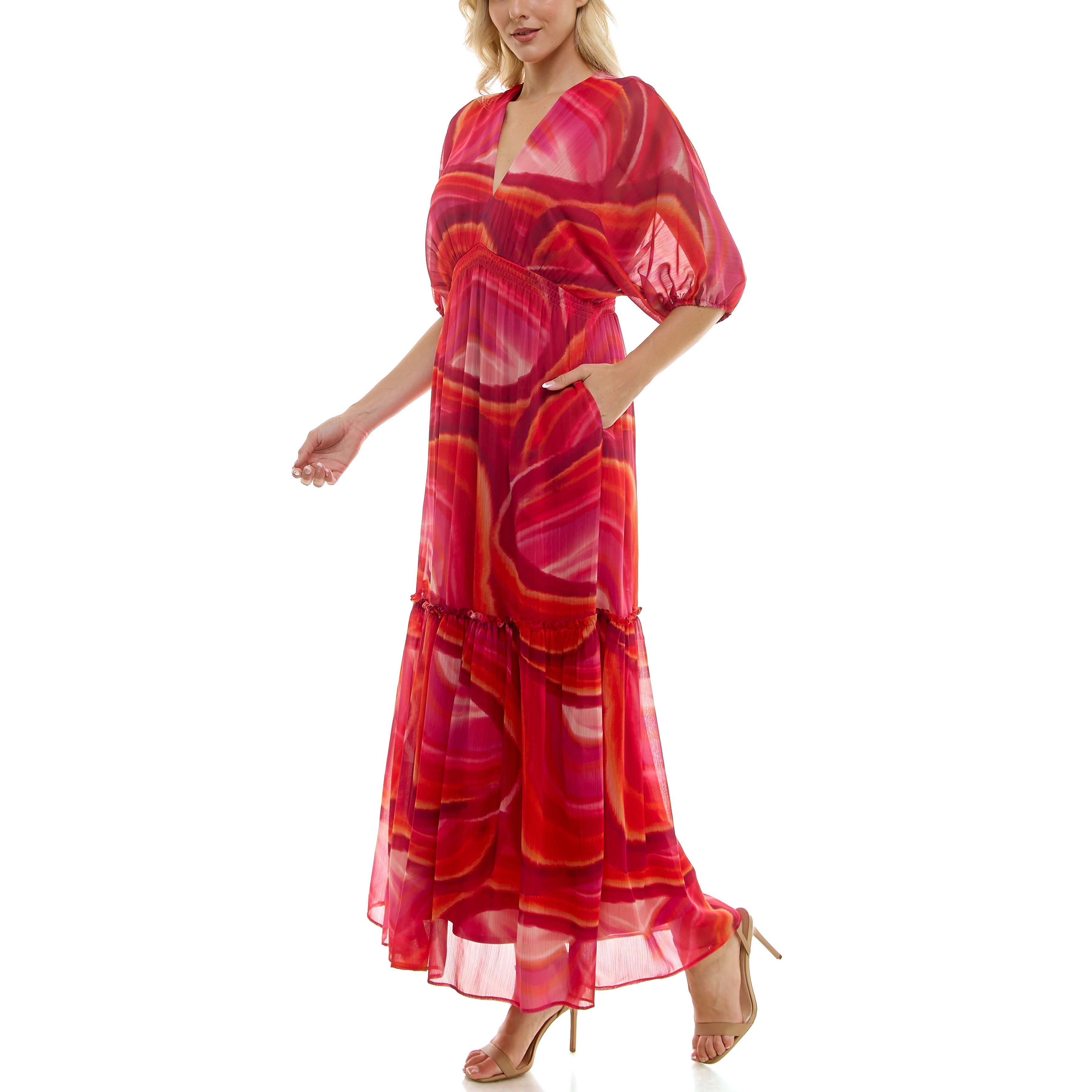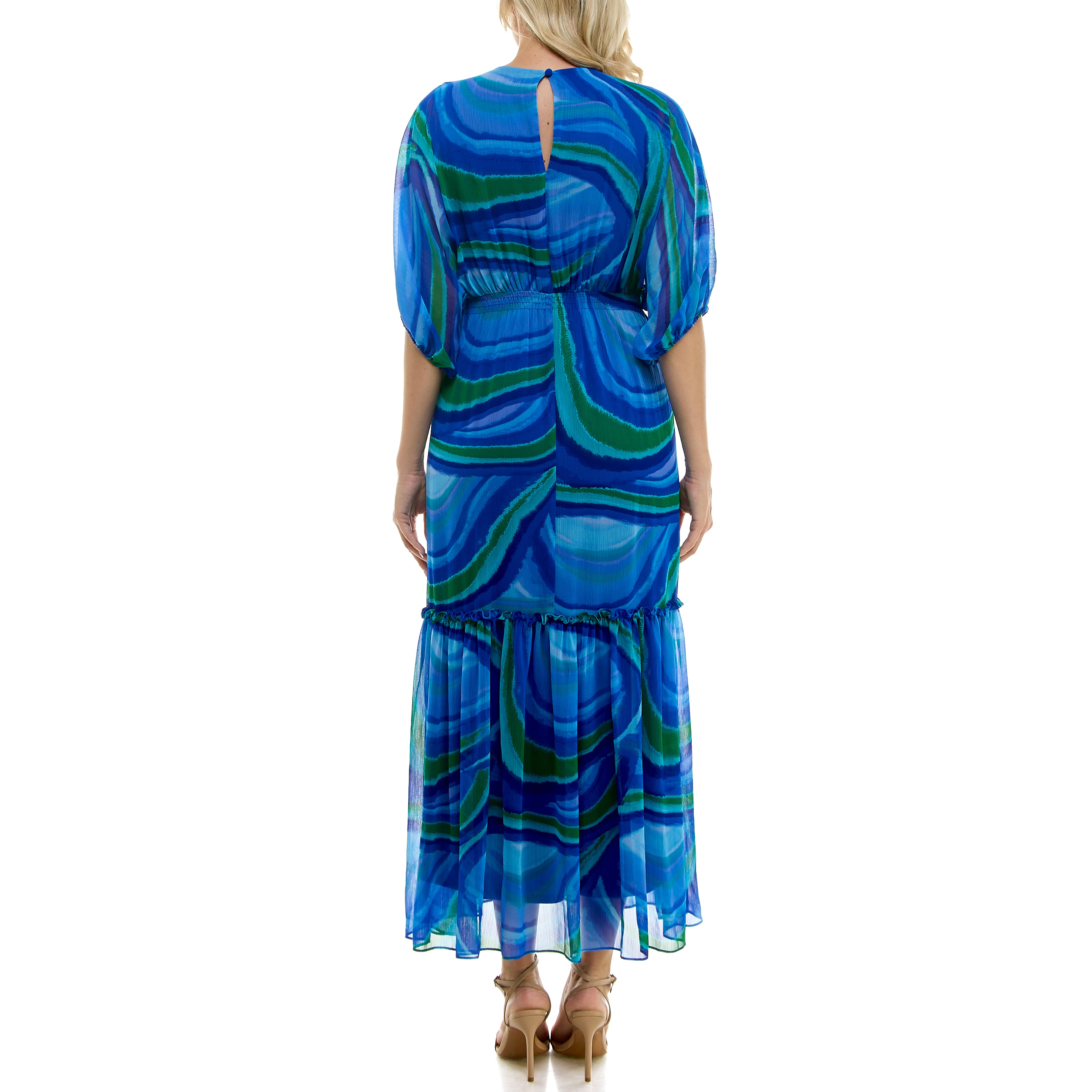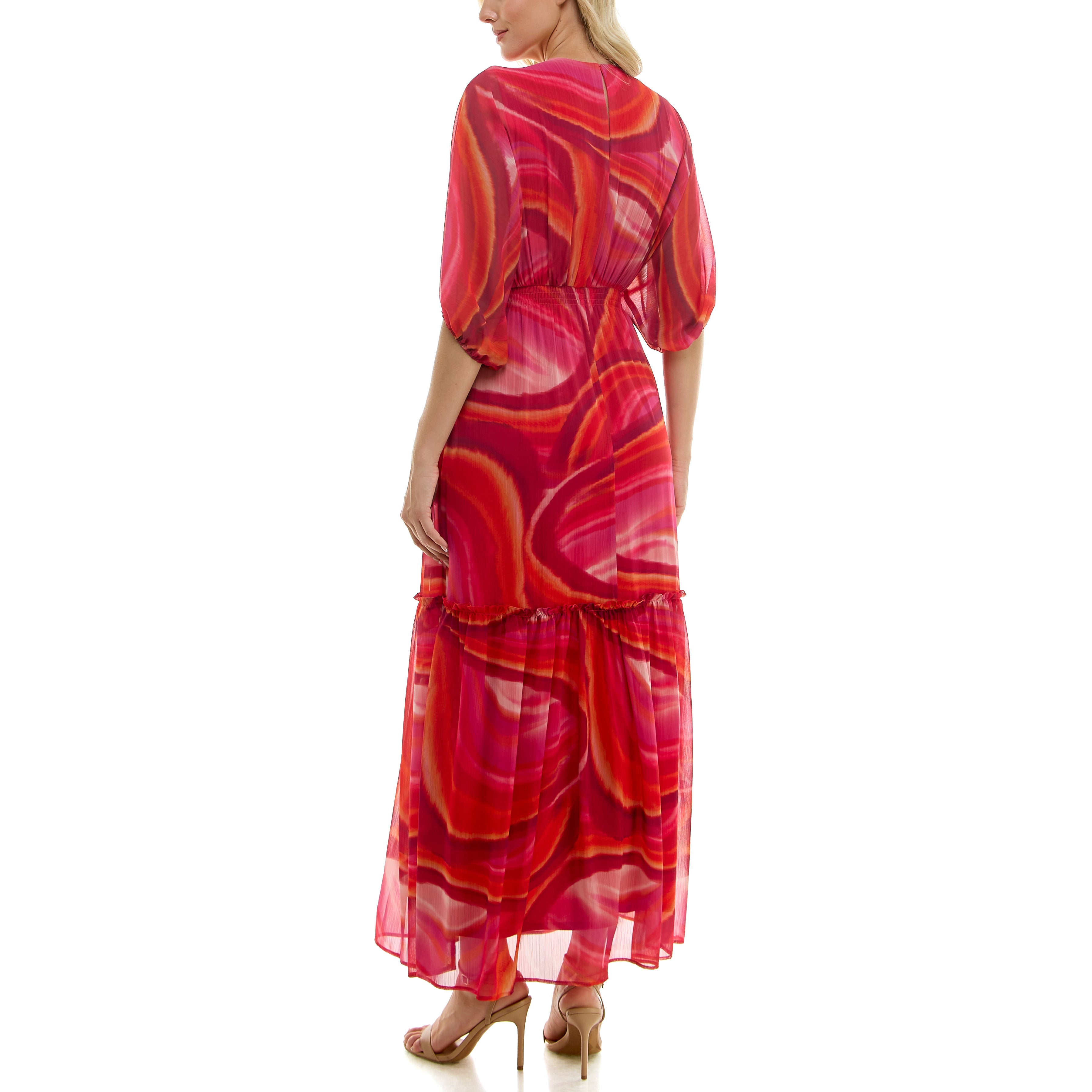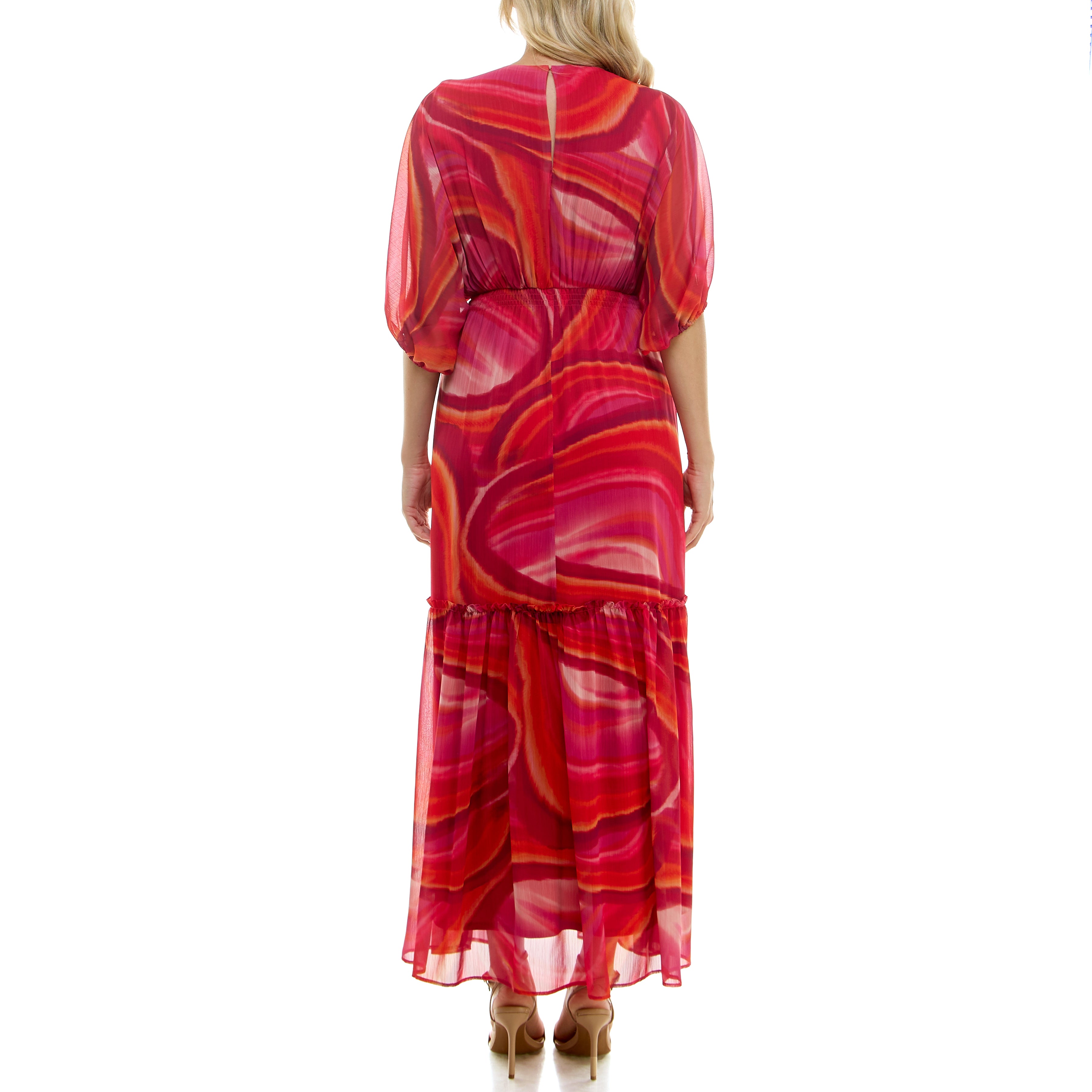 TAYLOR TWO TIERED RETRO MOD SWIRL PATTERN MAXI DRESS