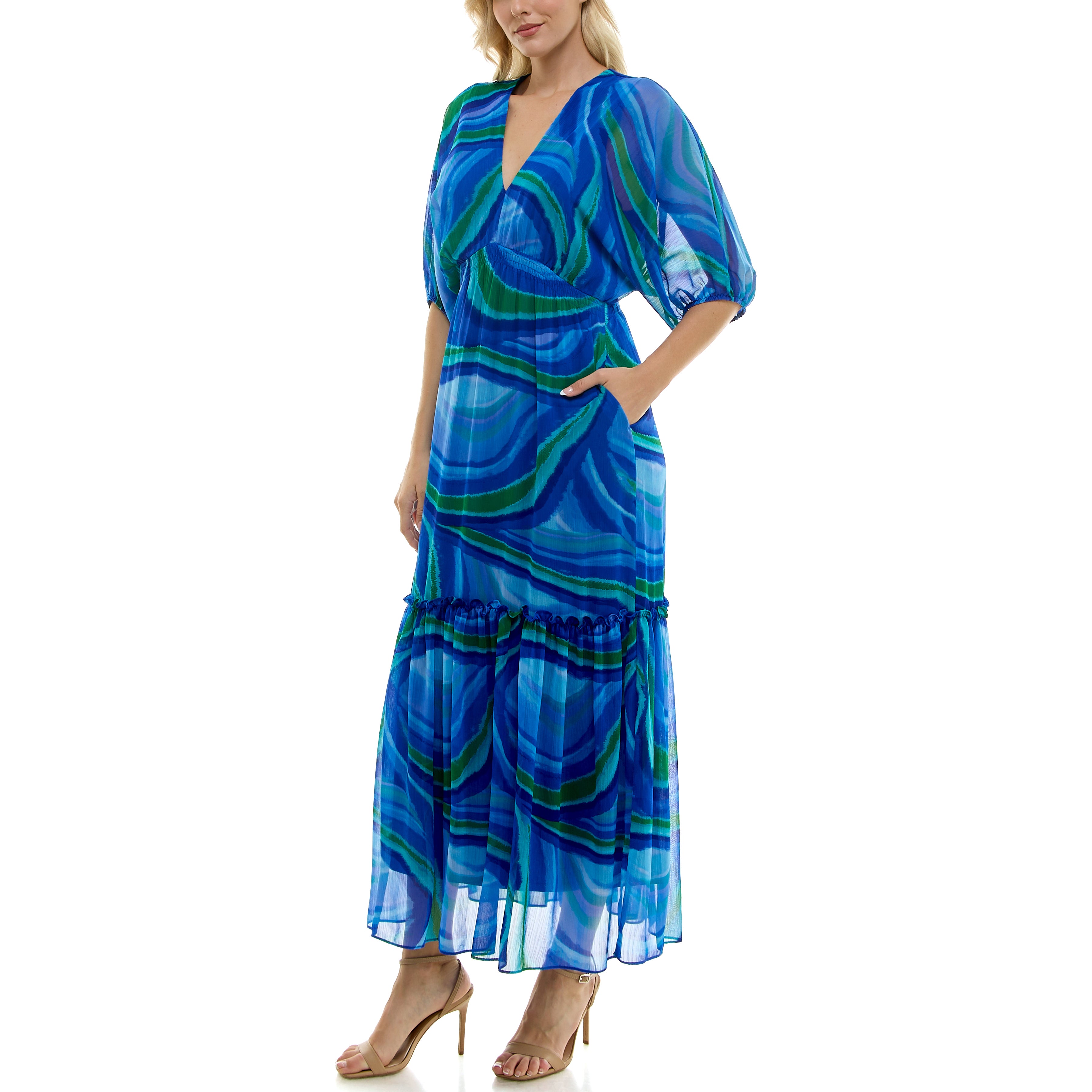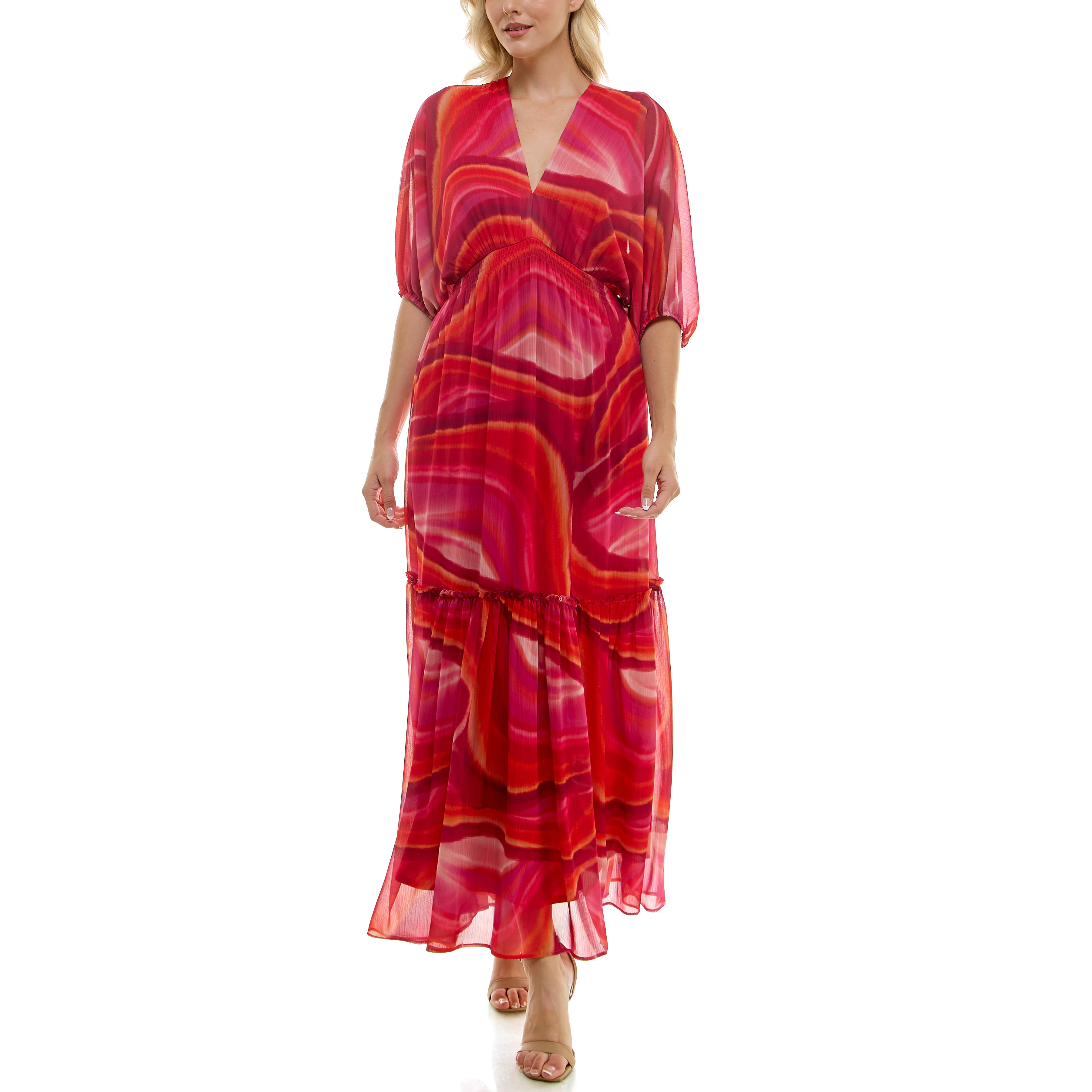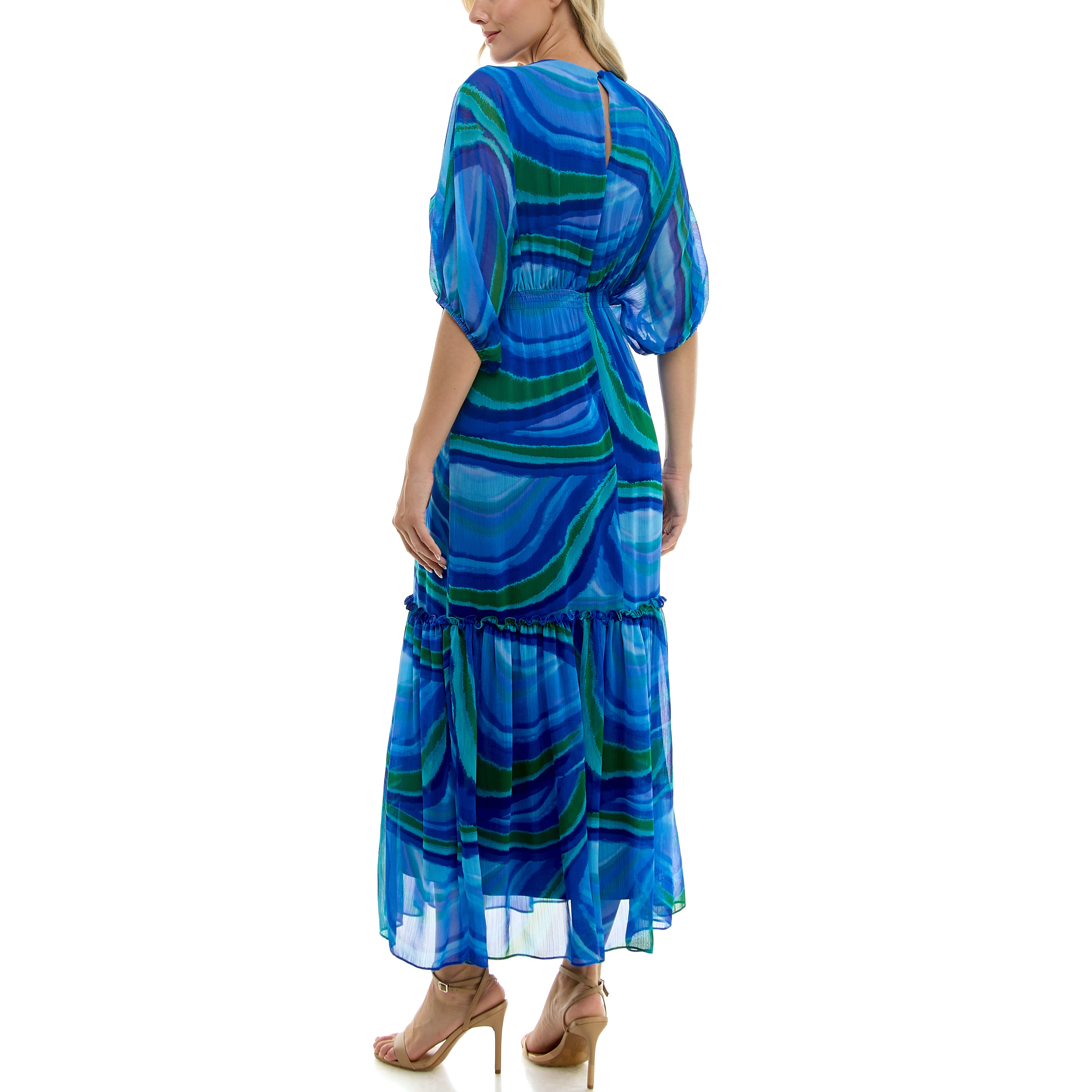 TAYLOR TWO TIERED RETRO MOD SWIRL PATTERN MAXI DRESS