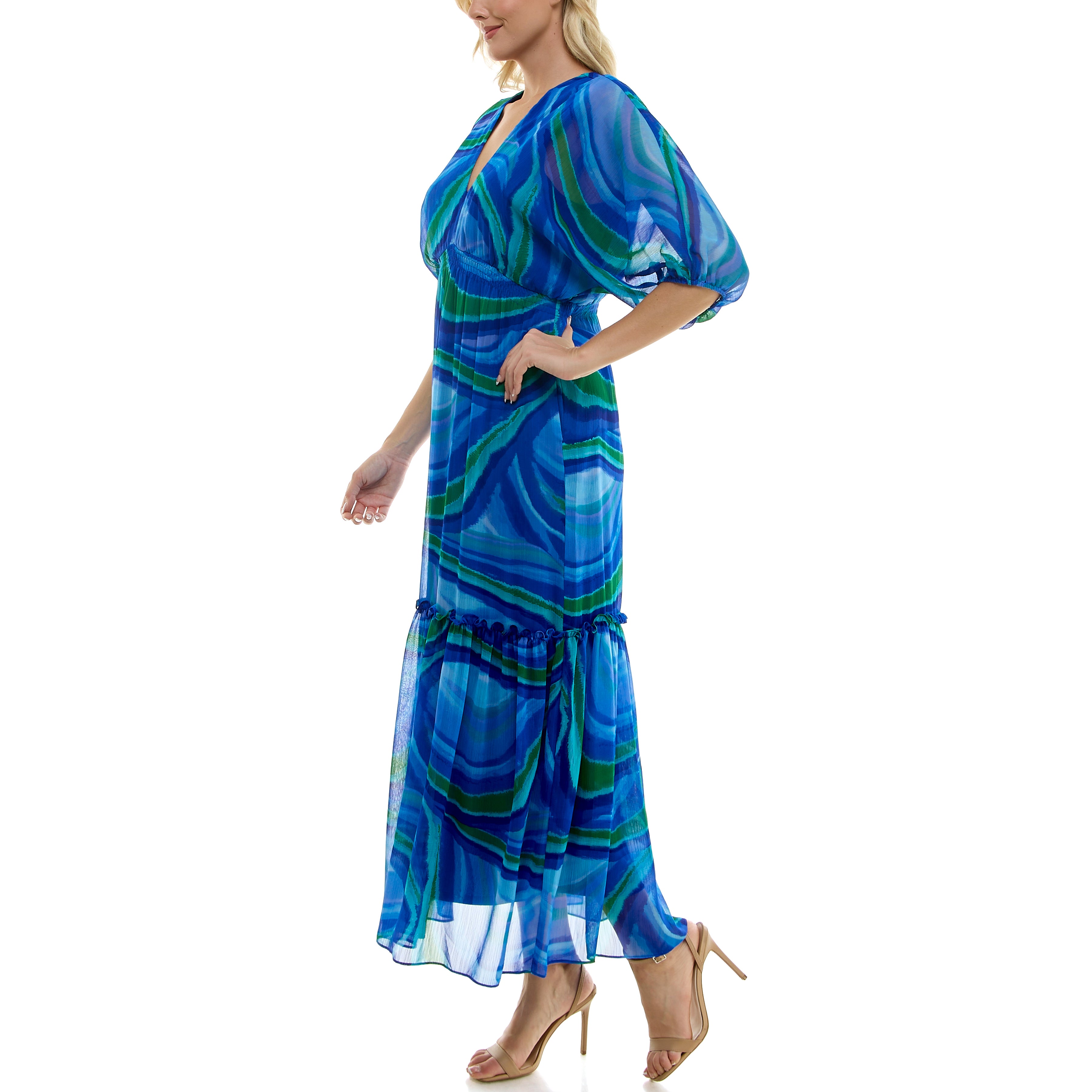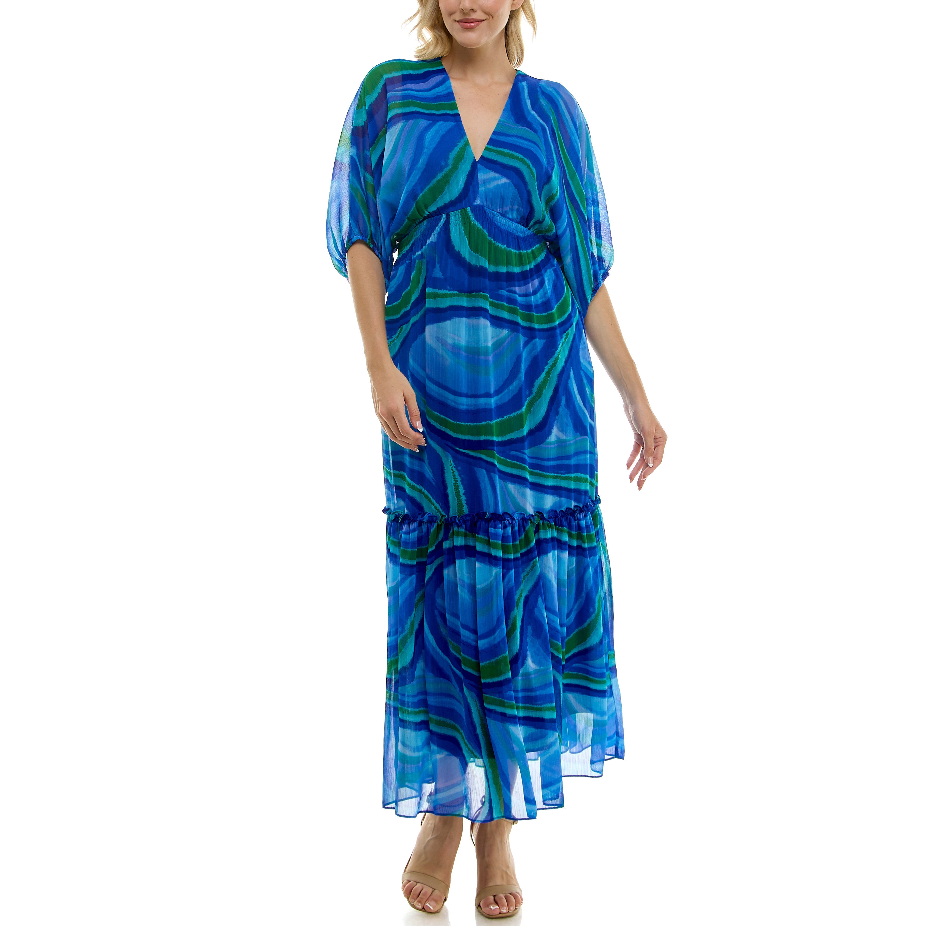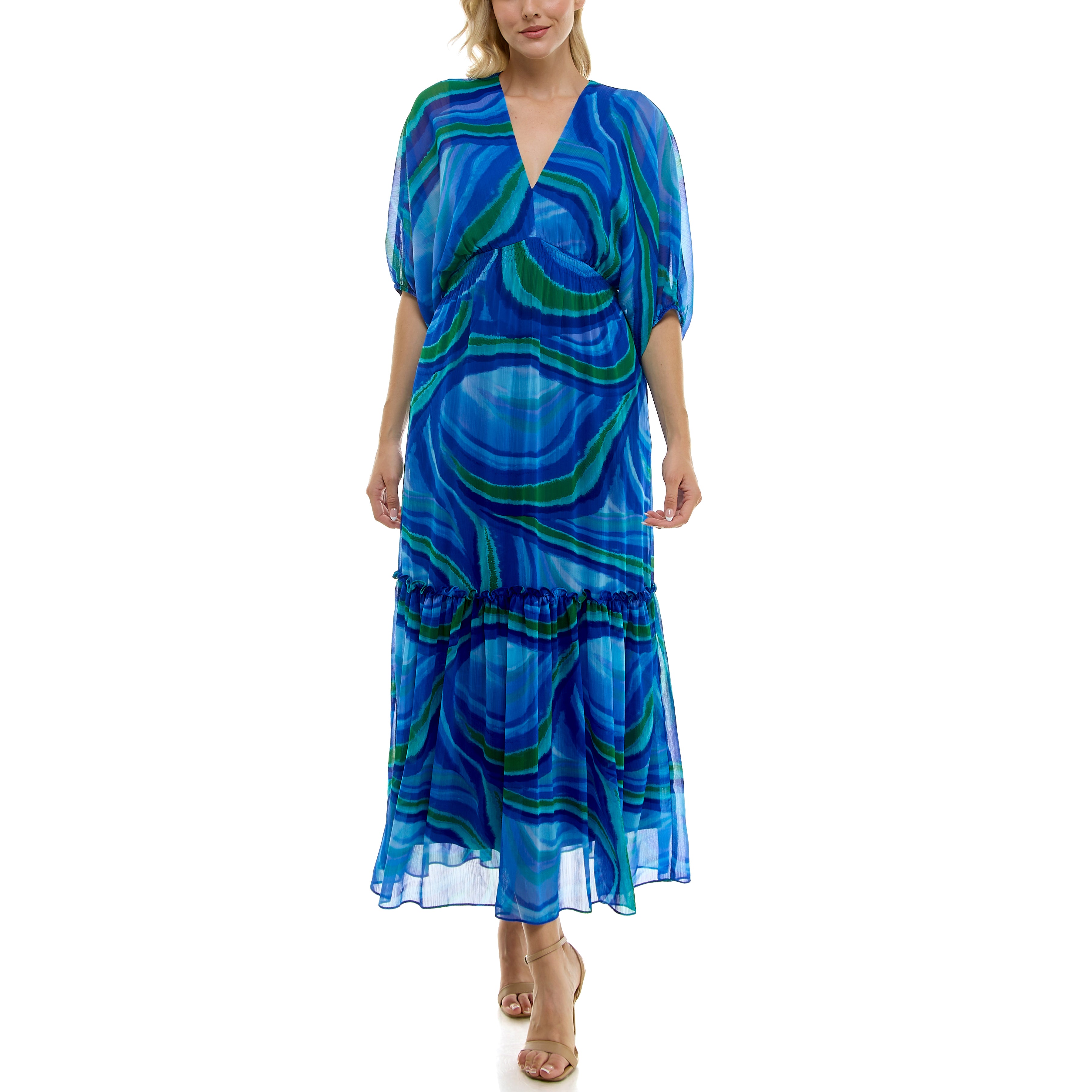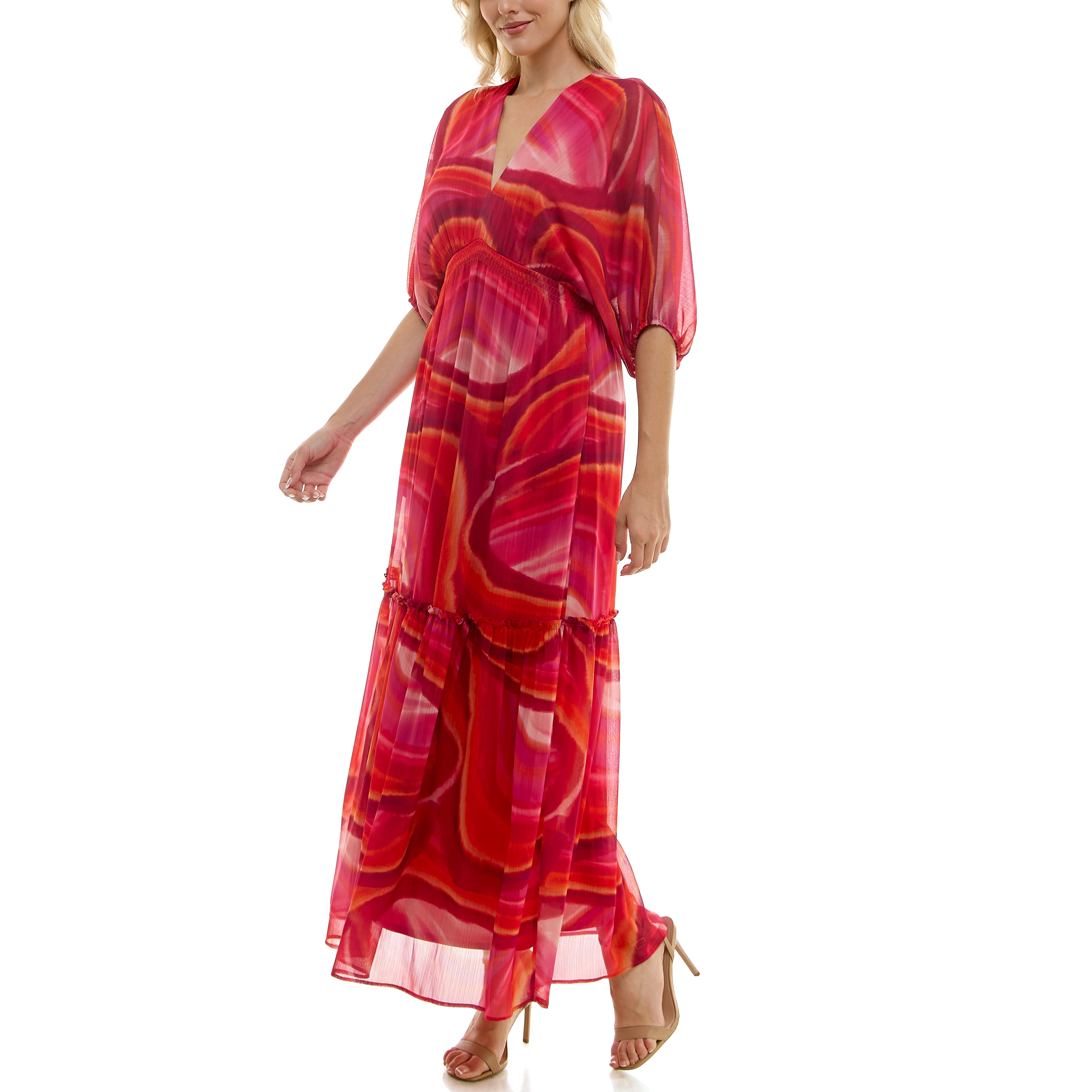 TAYLOR TWO TIERED RETRO MOD SWIRL PATTERN MAXI DRESS