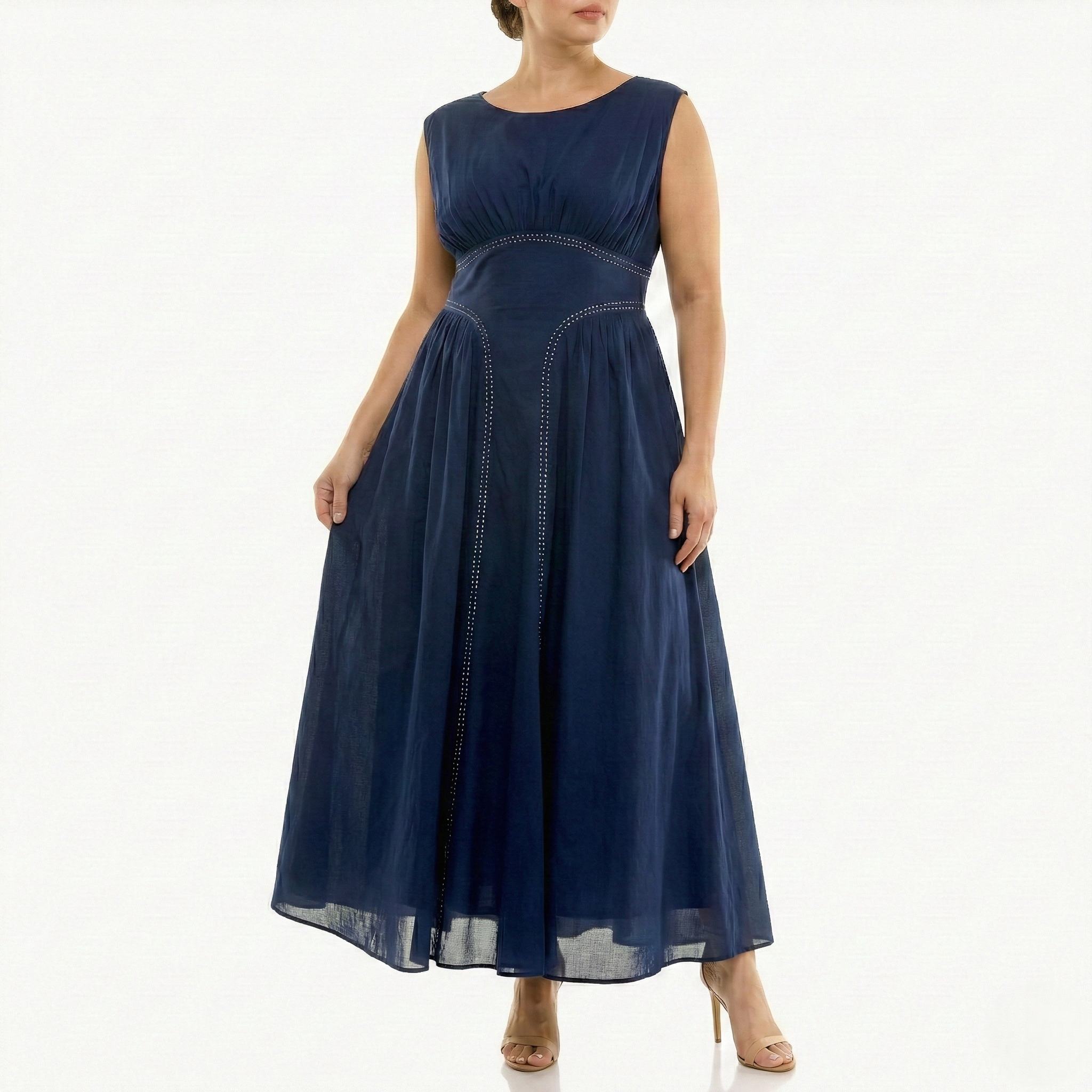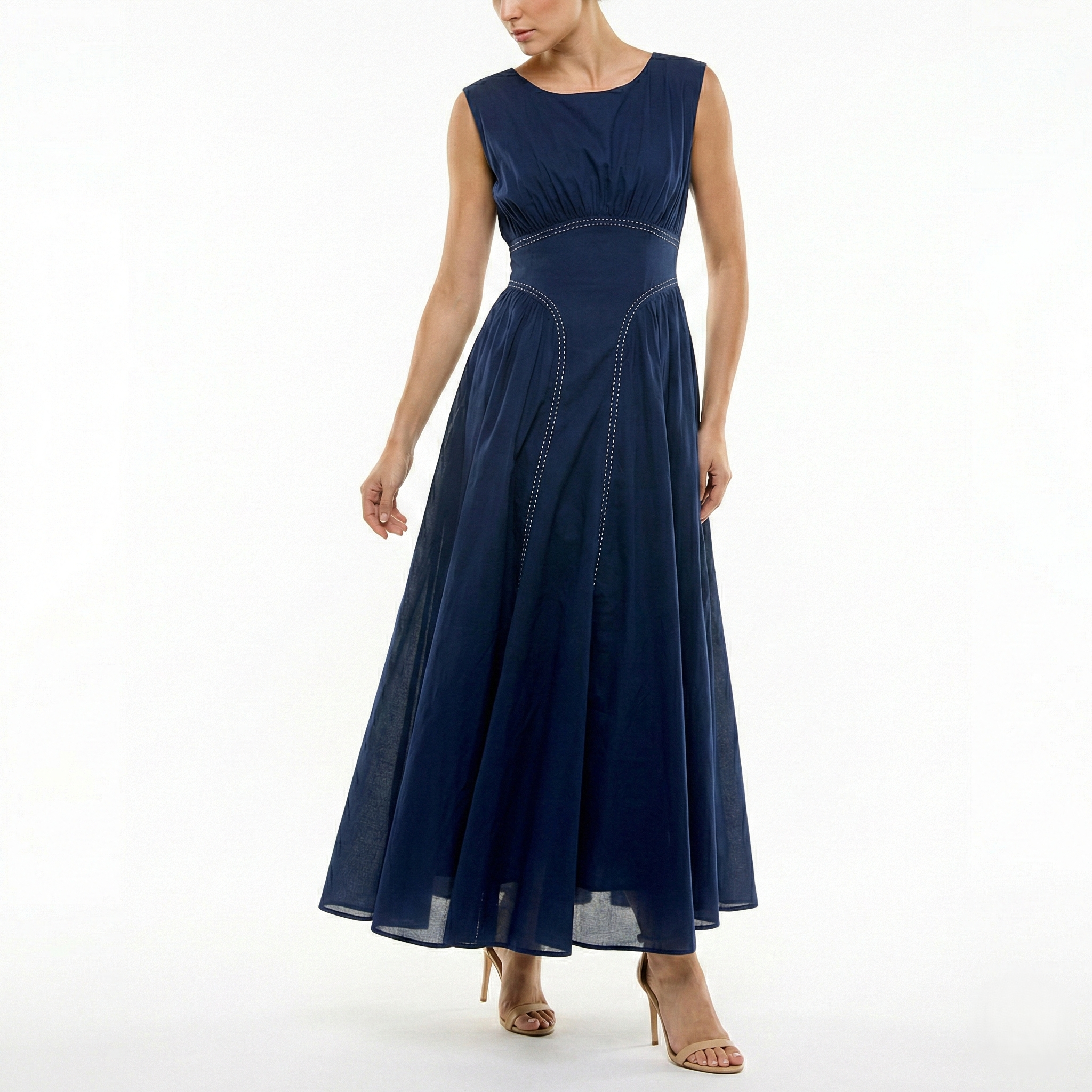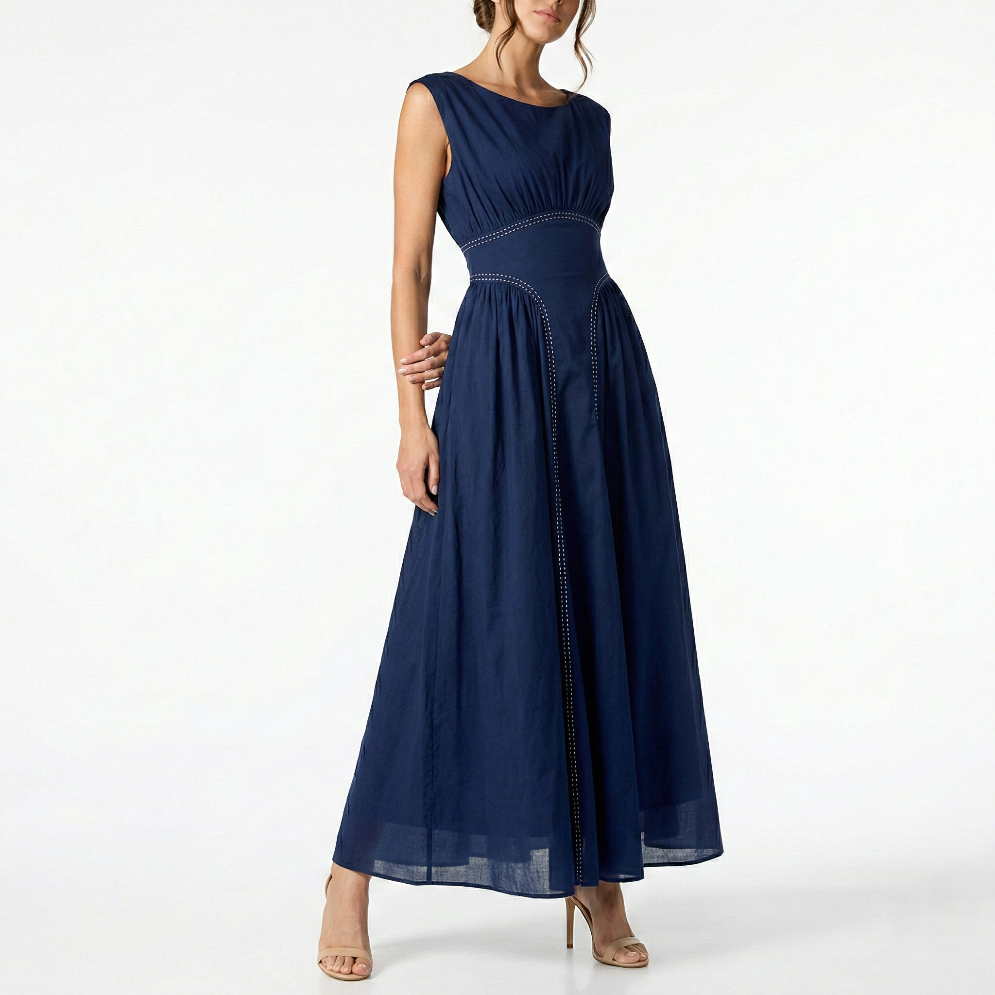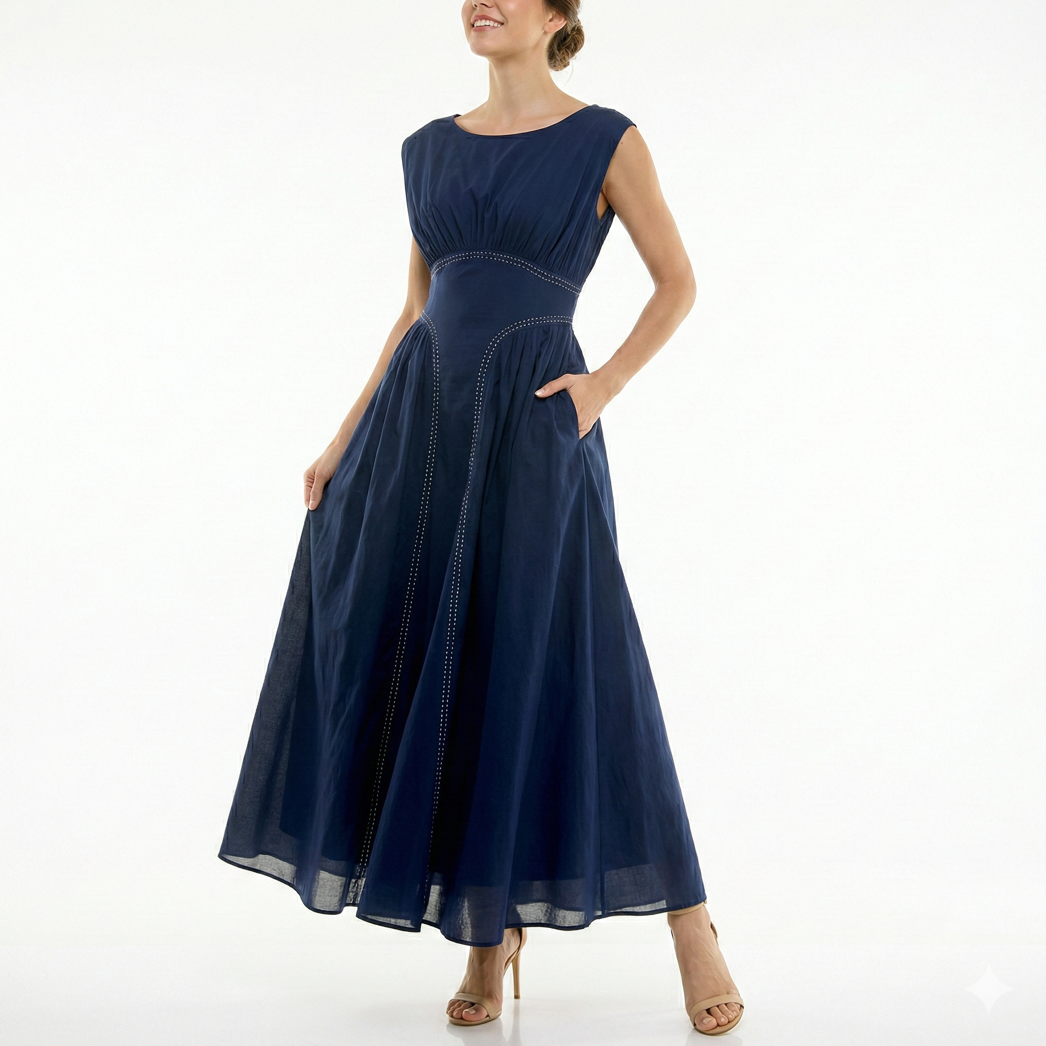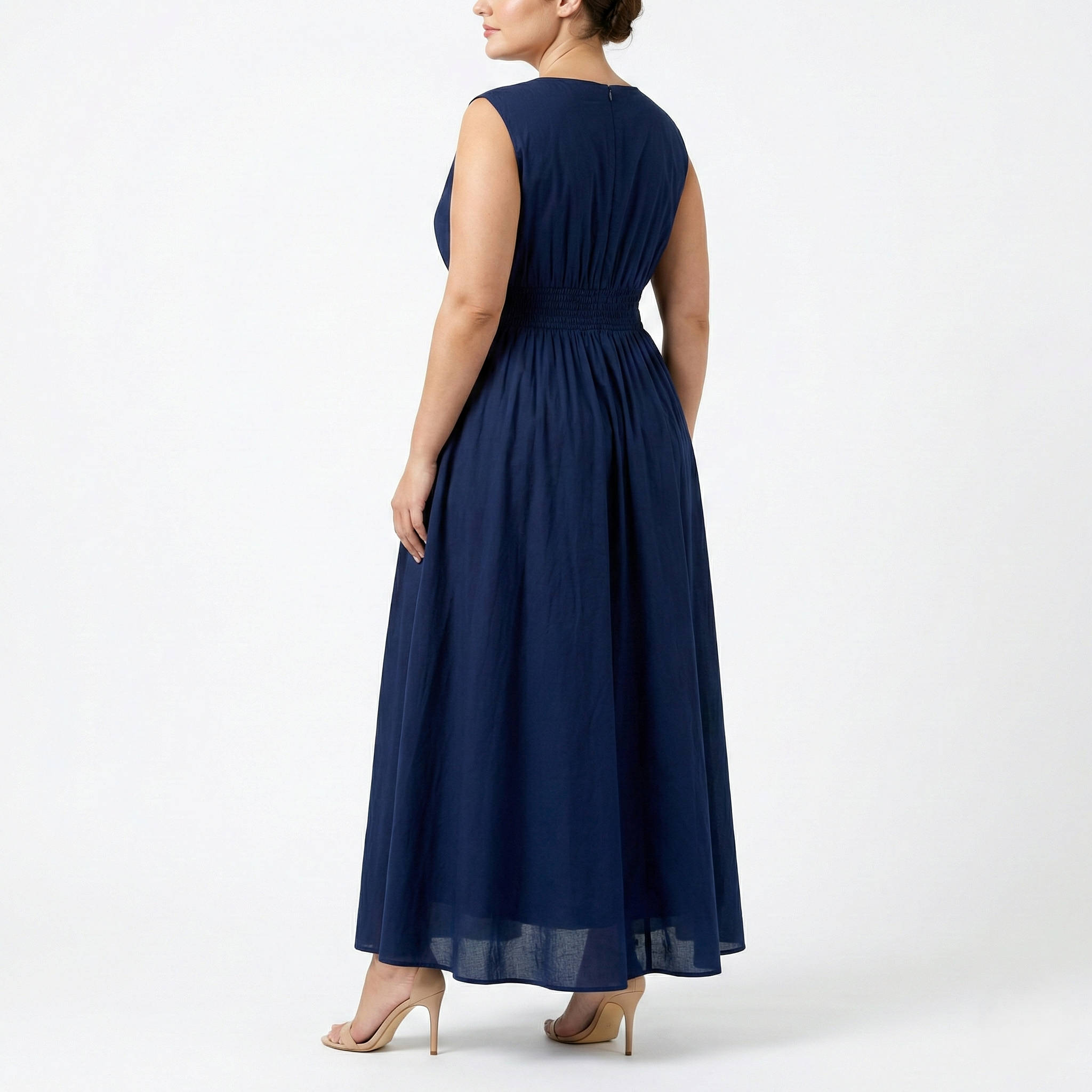 SLEEVELESS EMPIRE WAIST MAXI DRESS WITH POCKETS