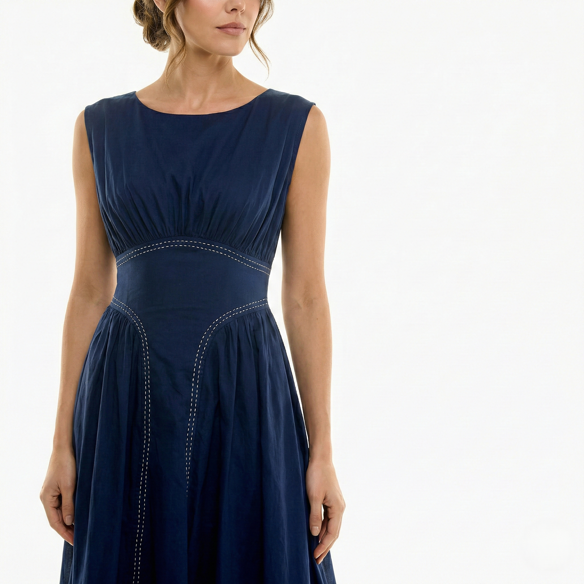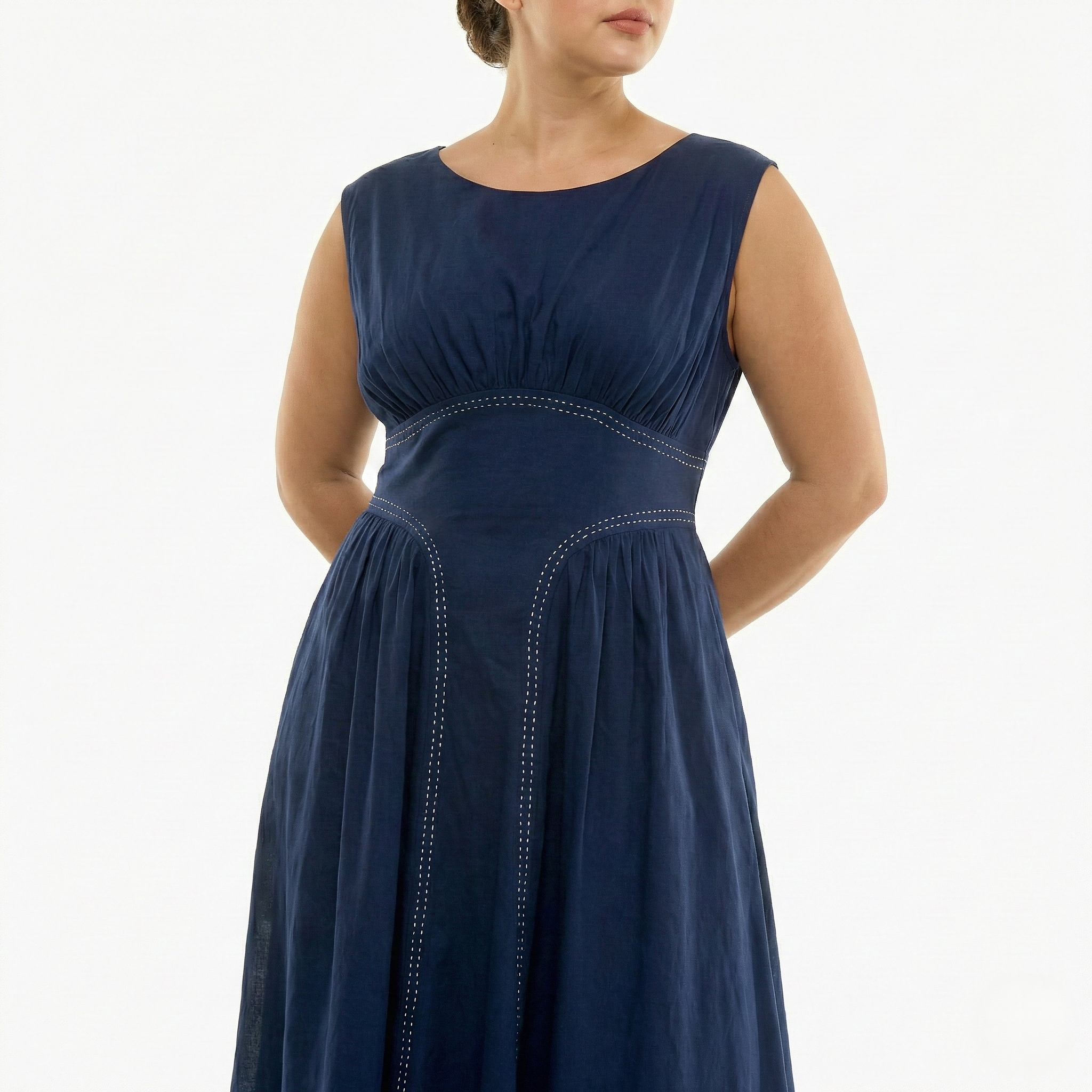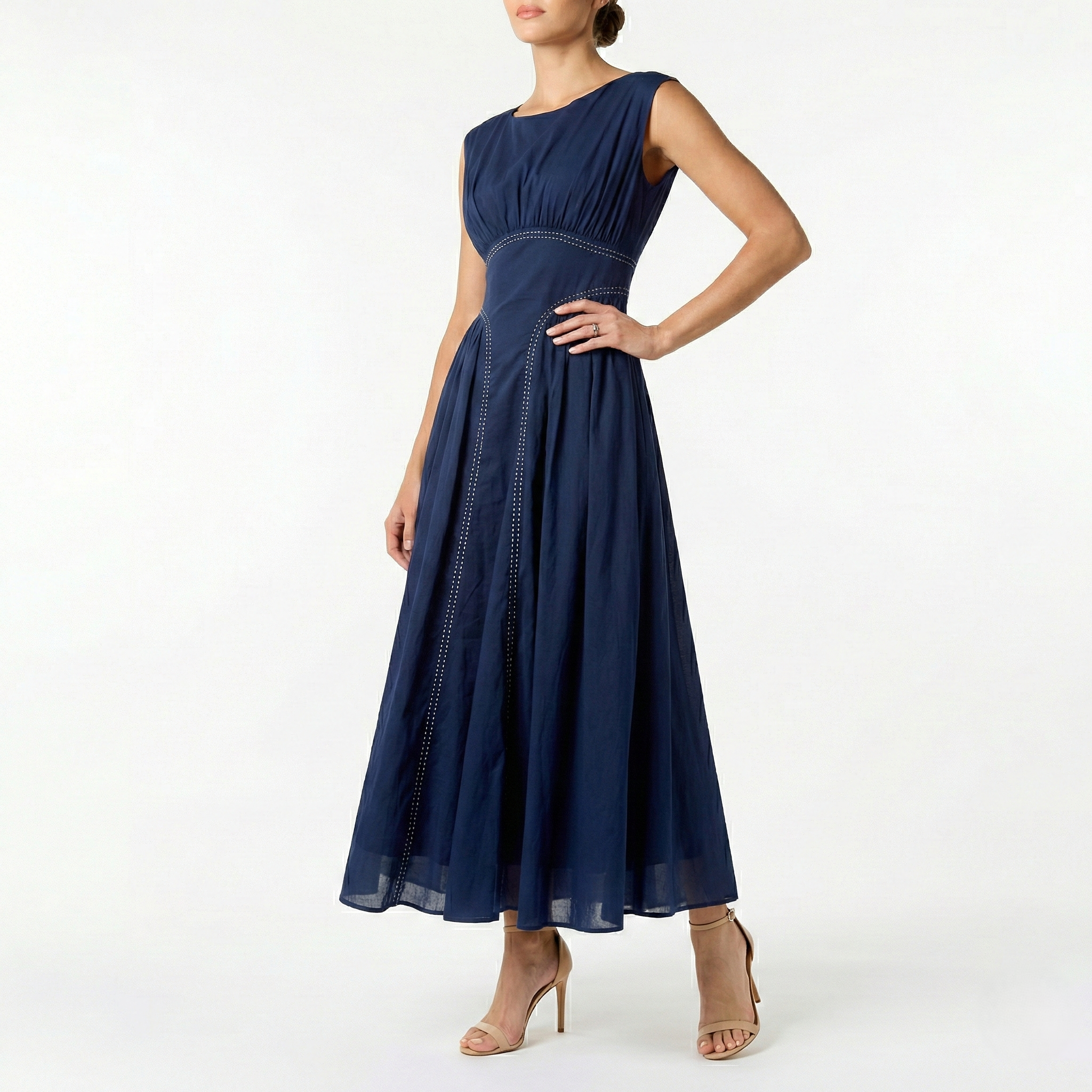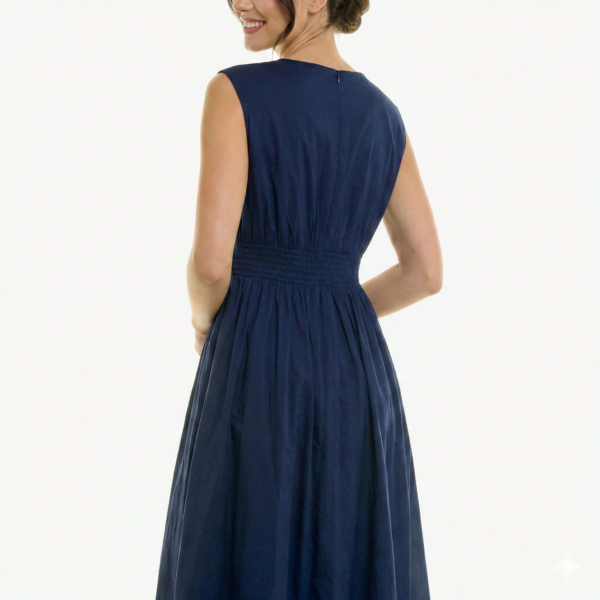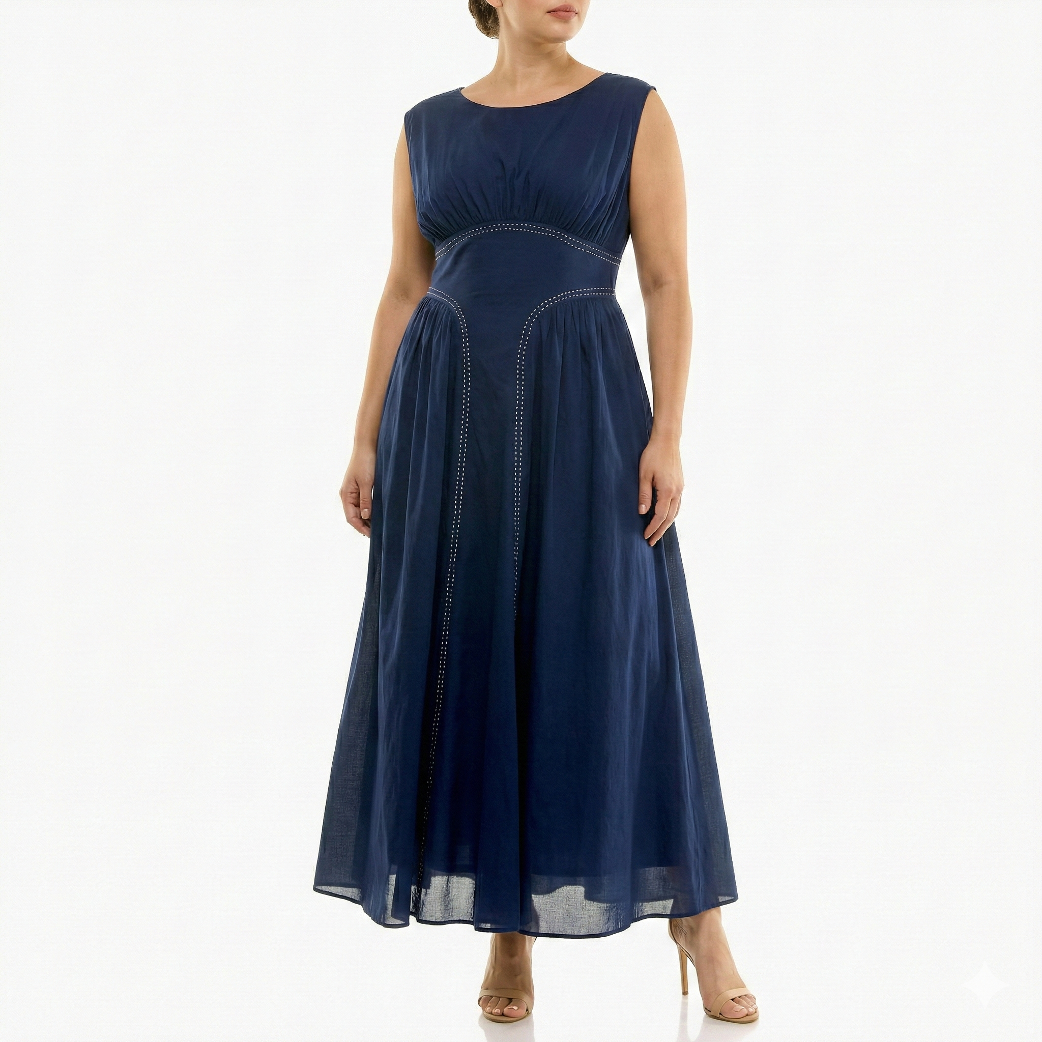 SLEEVELESS EMPIRE WAIST MAXI DRESS WITH POCKETS