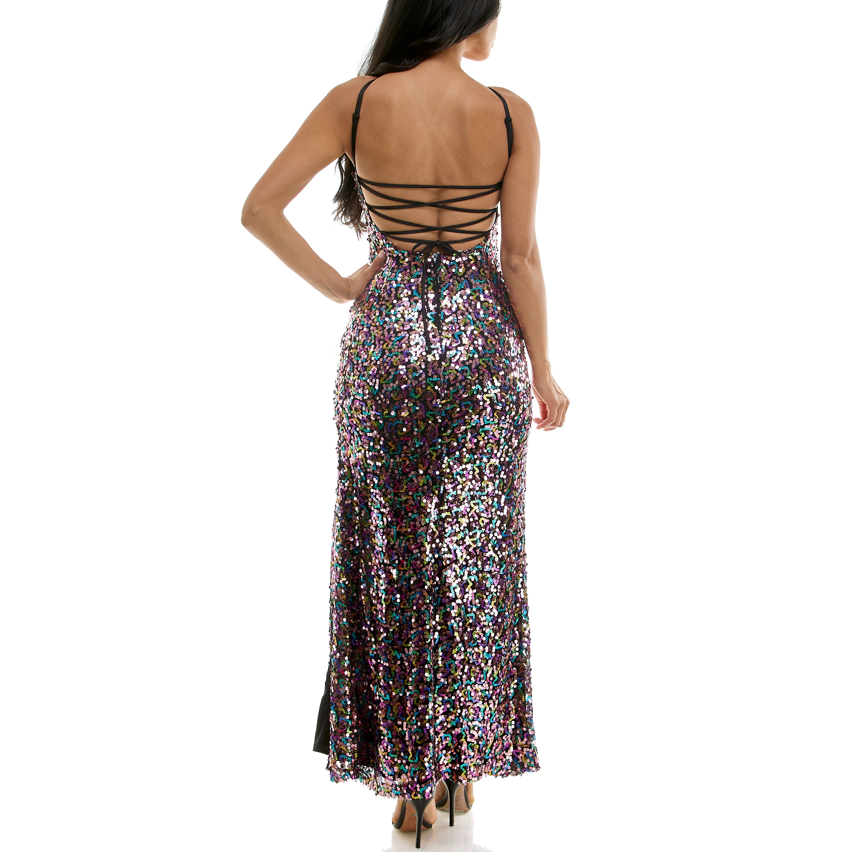 VIOLET WEEKEND JUNIORS' MULTICOLOR SEQUIN HALTER GOWN