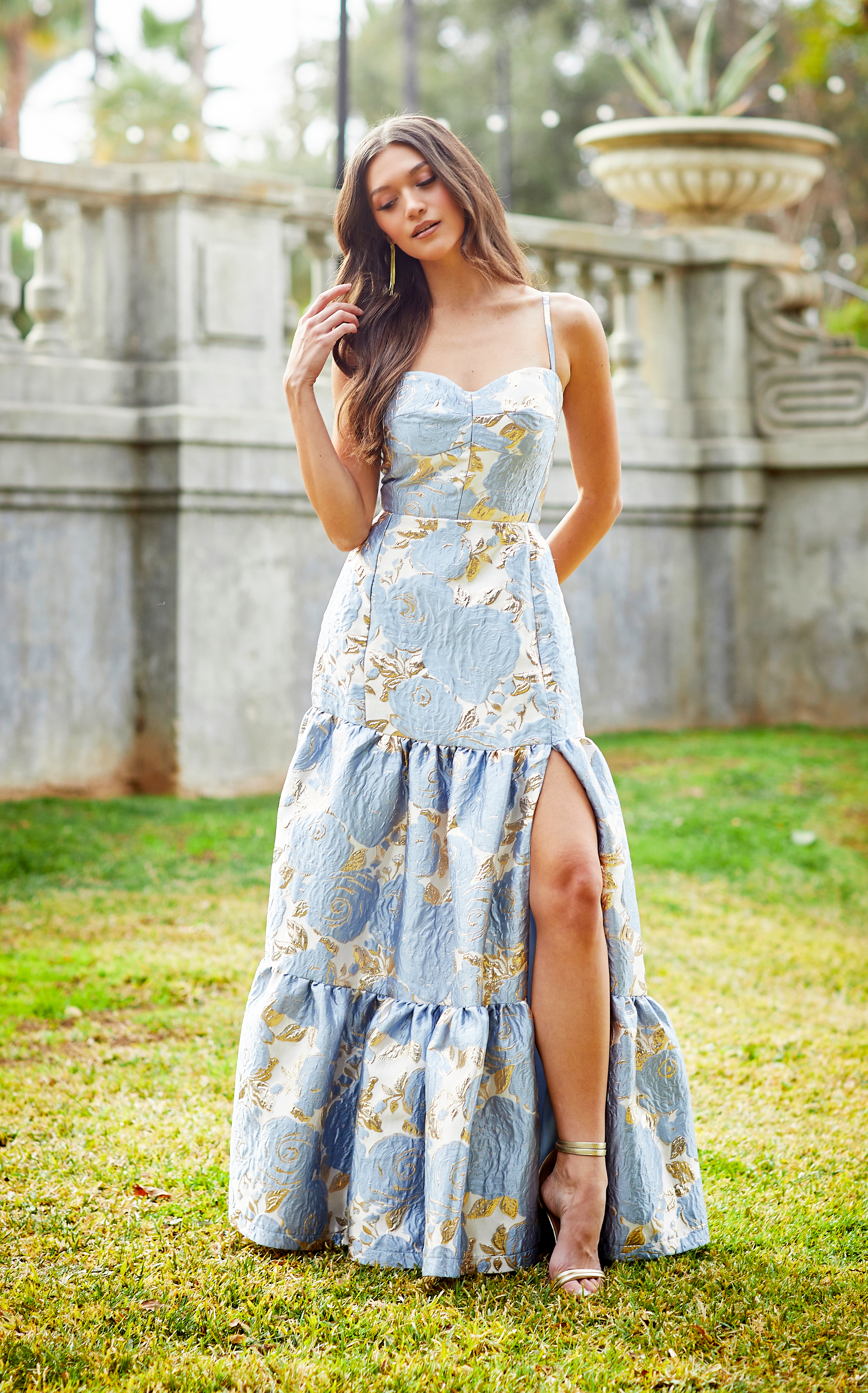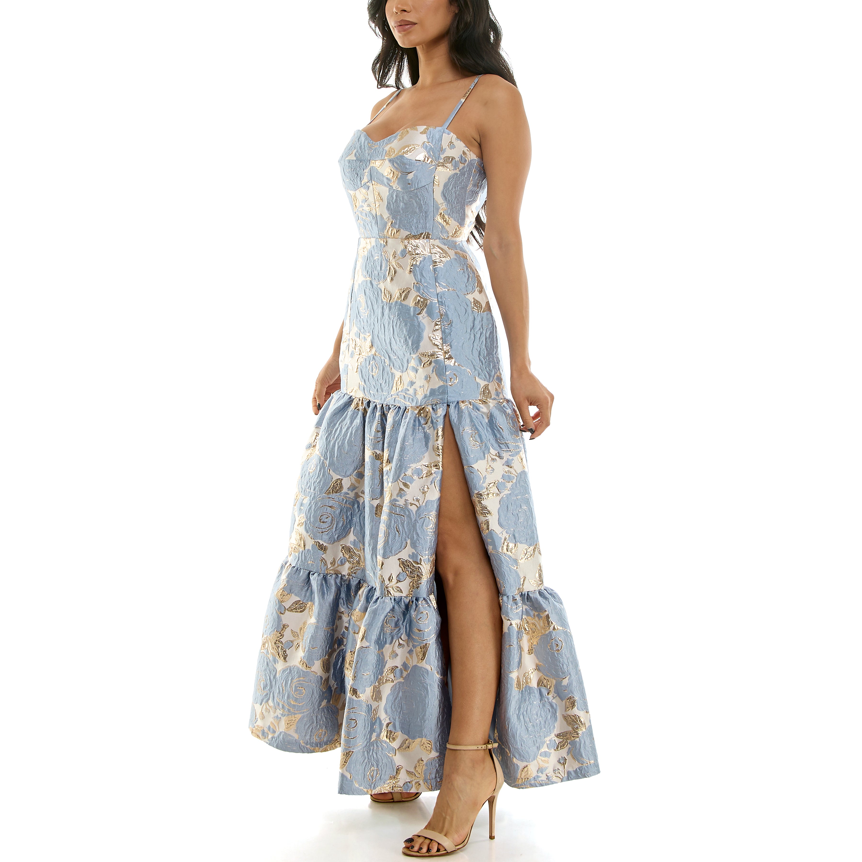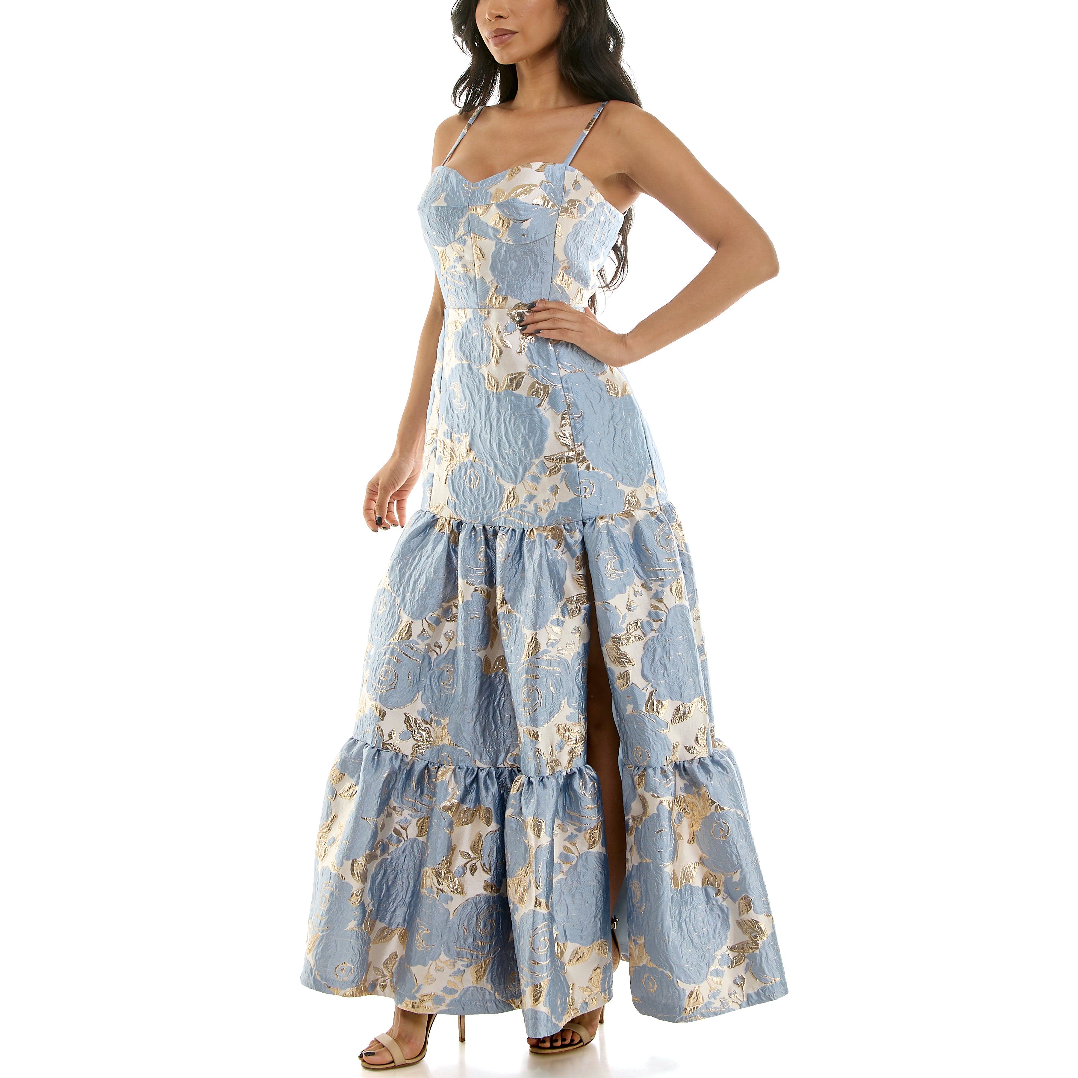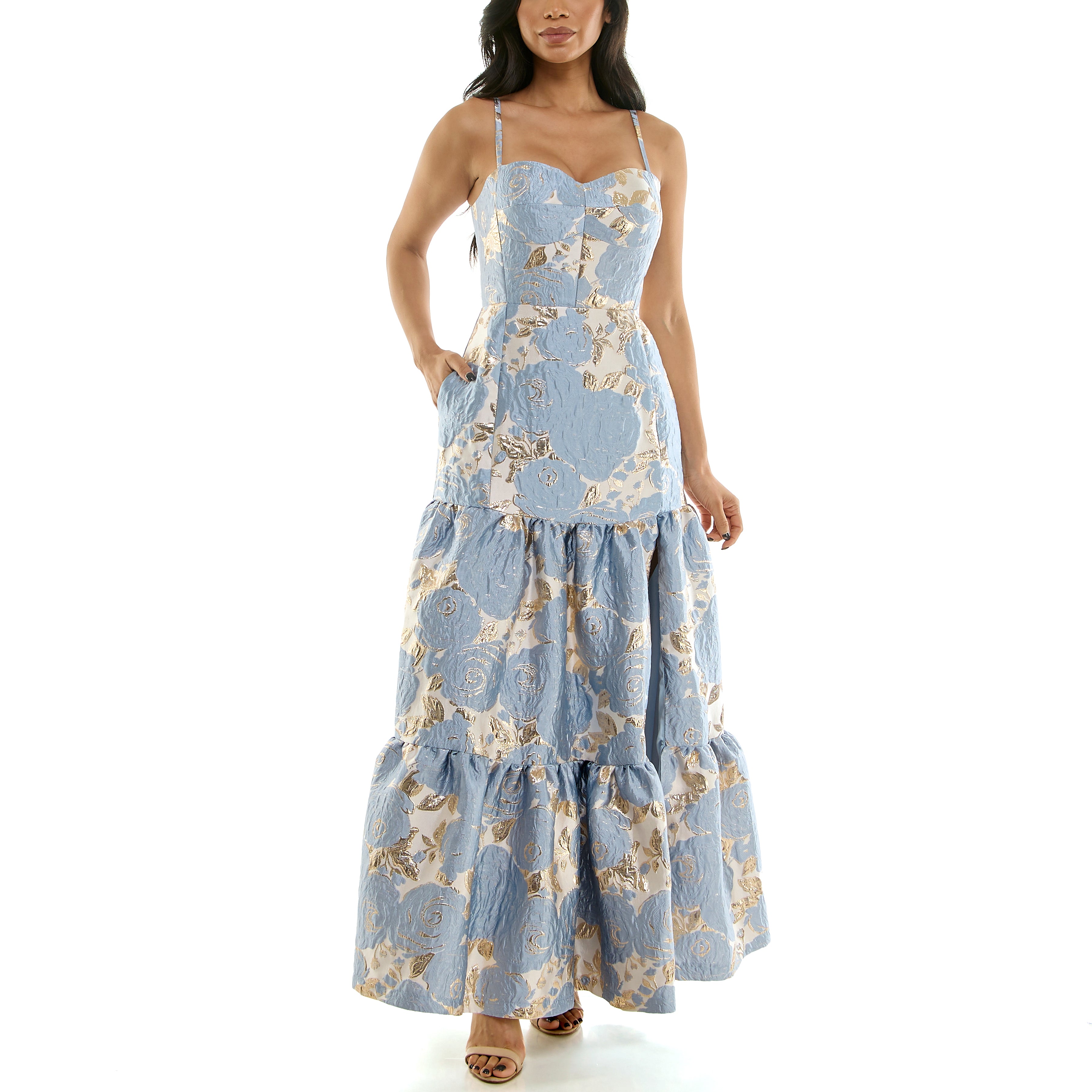 VIOLET WEEKEND JUNIORS' FLORAL JACQUARD TIERED BALLGOWN