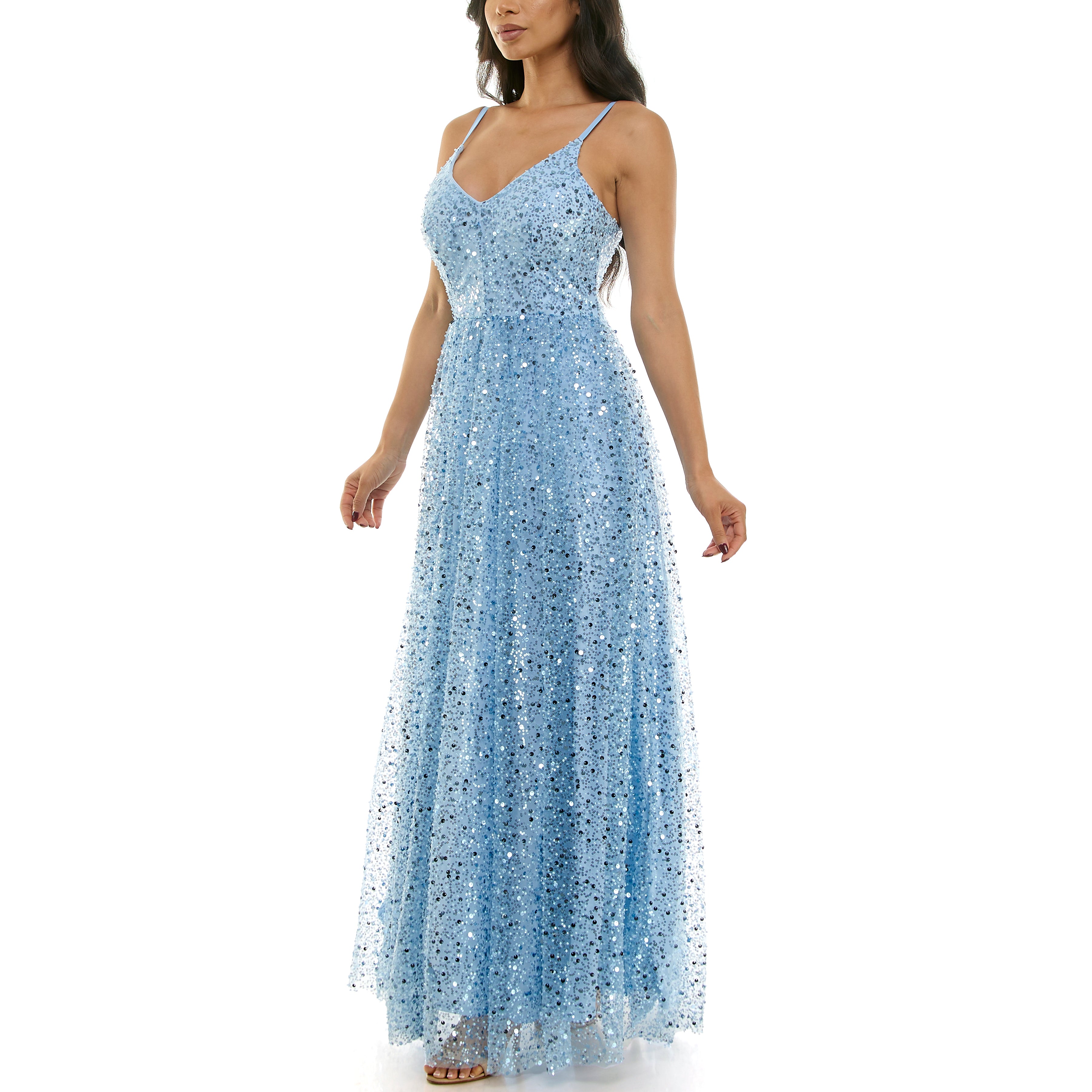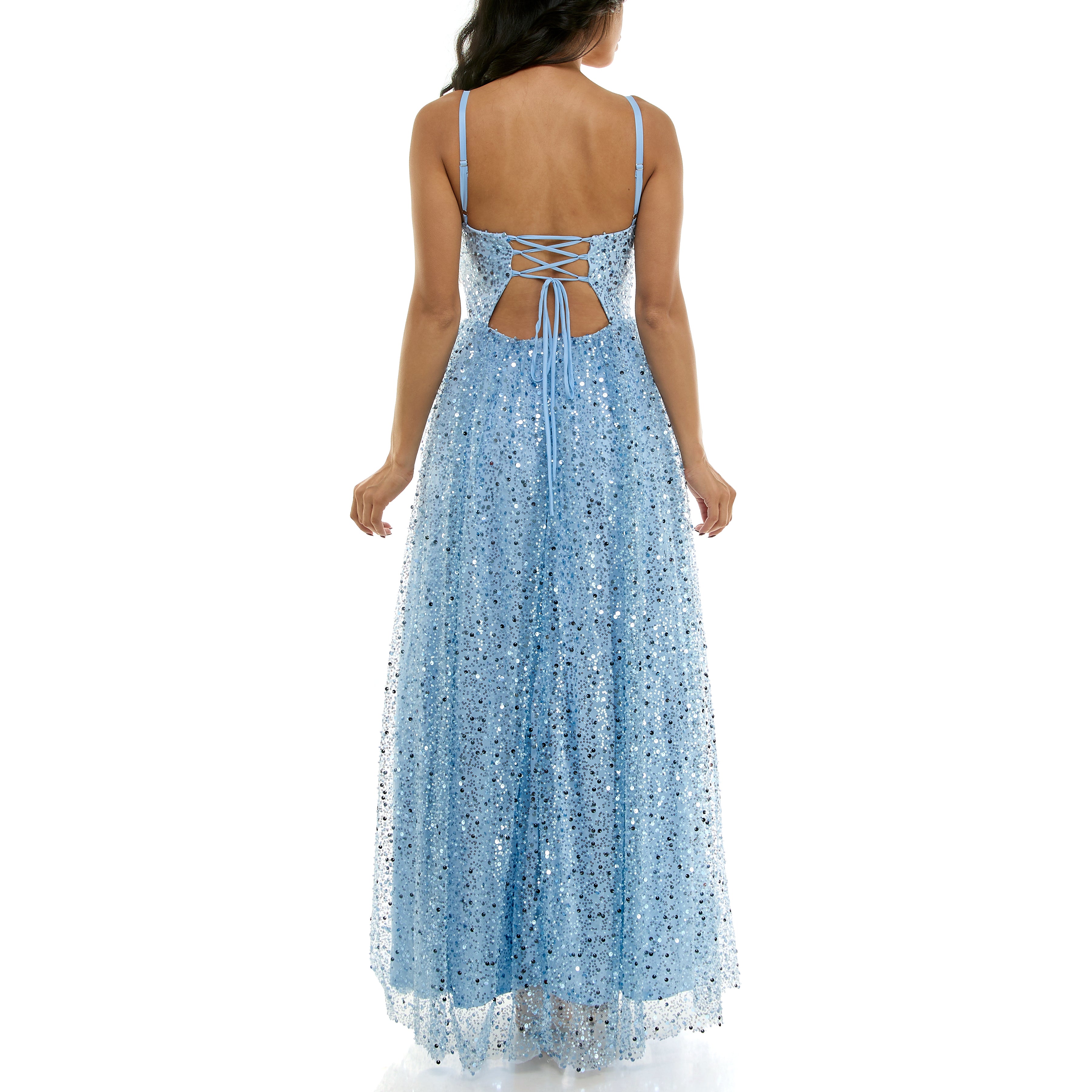 VIOLET WEEKEND JUNIORS' STRIPED SEQUIN LACE UP GOWN