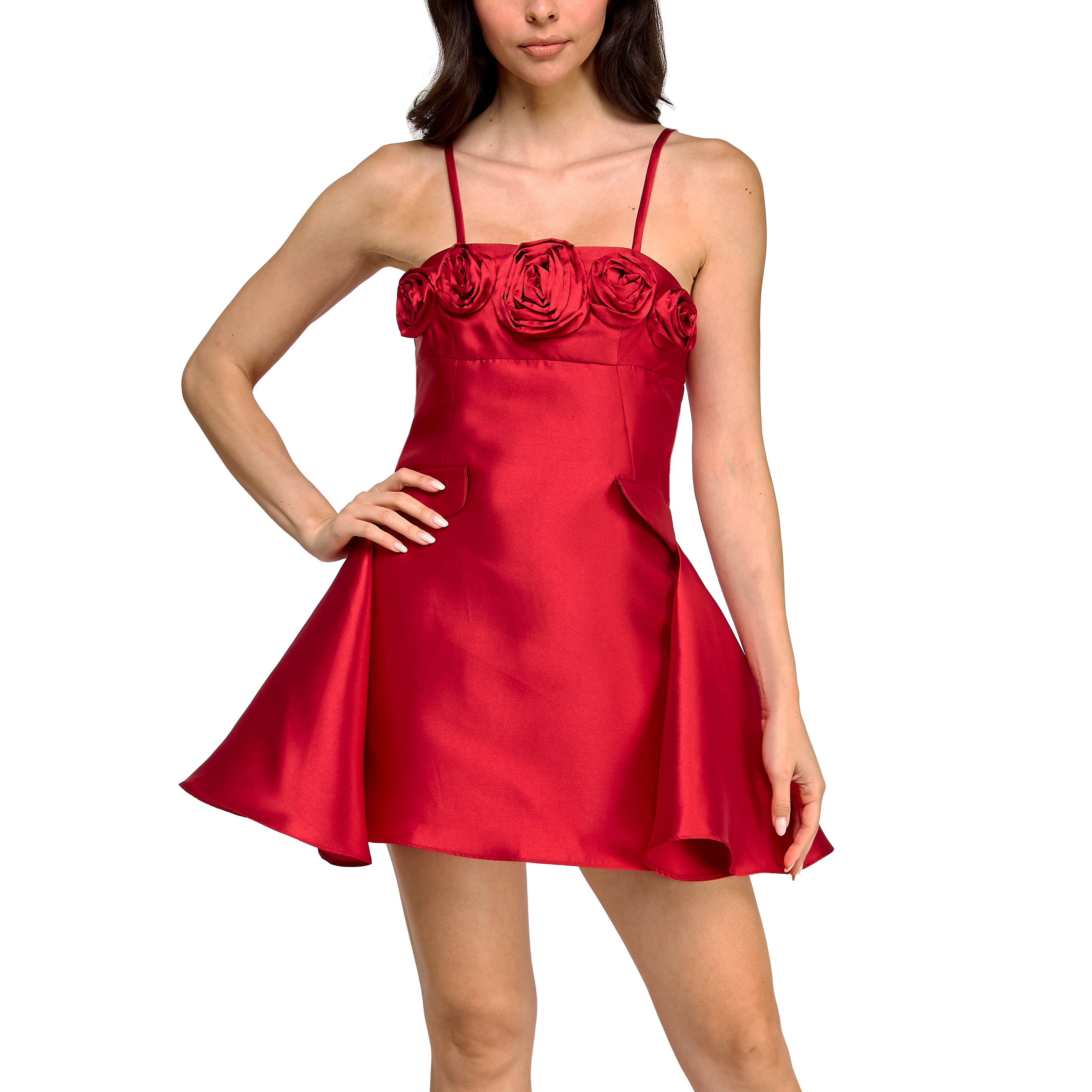 VIOLET WEEKEND JUNIORS' SPAGHETTI STRAP ROSETTE ACCENTED MINI DRESS