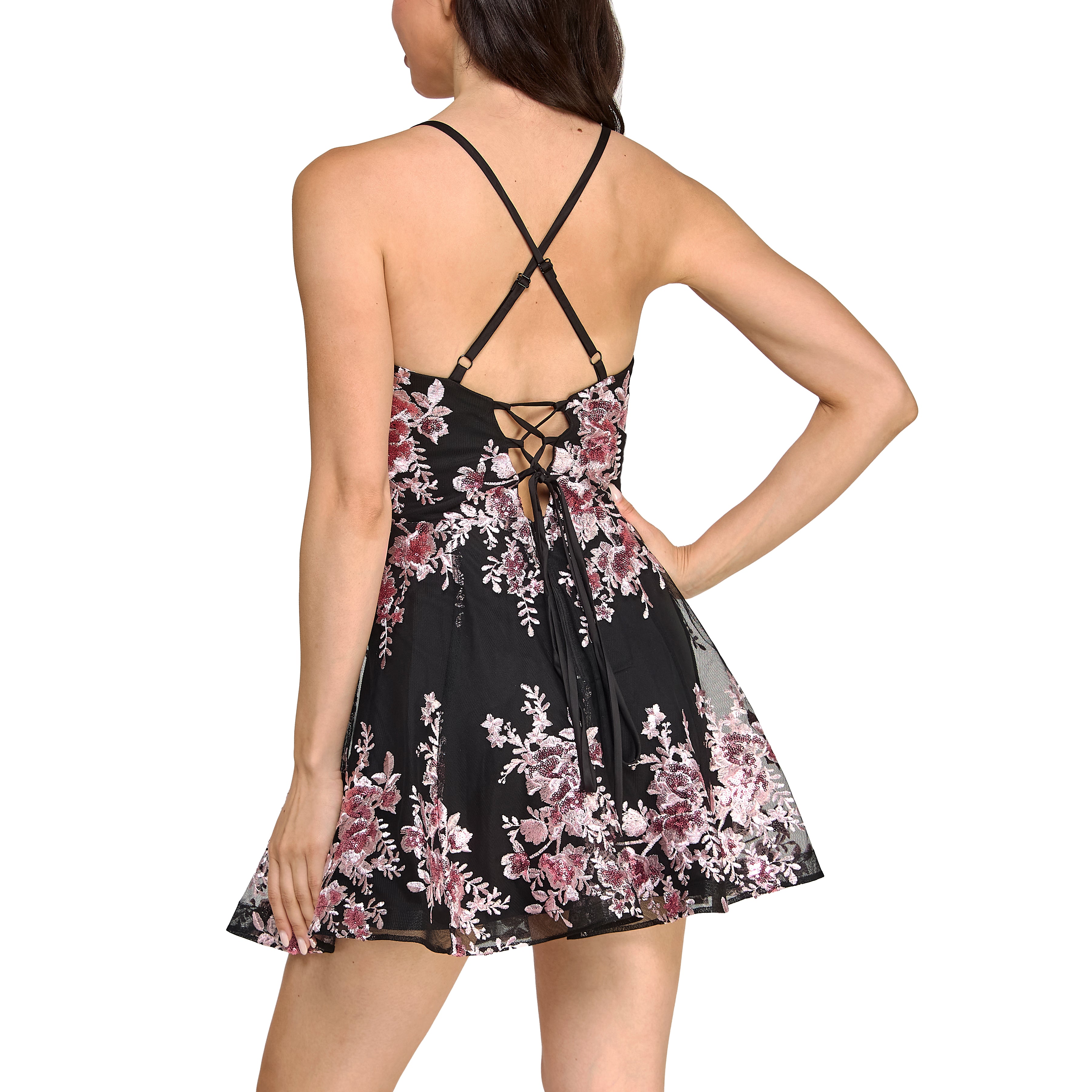 VIOLET WEEKEND JUNIORS' SEQUINED CURTAIN MINI DRESS - EXCHANGES ONLY