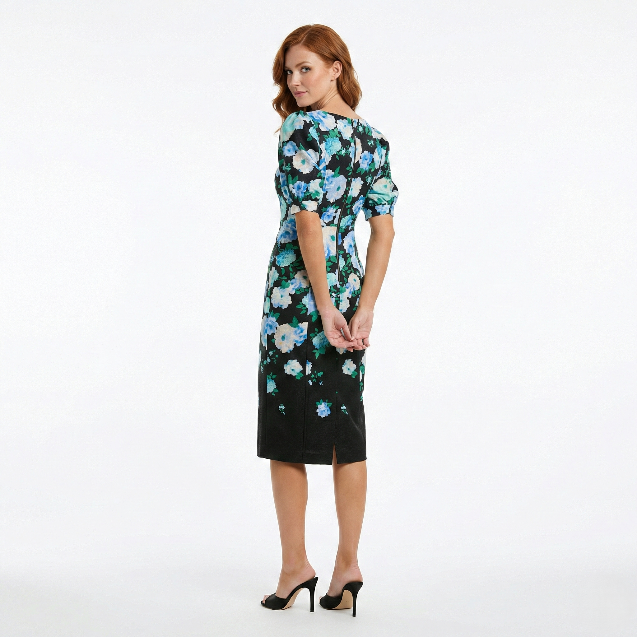 MAISON TARA UNLINED COOL FLORAL PRINT COLUMN DRESS - EXCHANGES ONLY