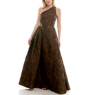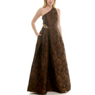 TAYLOR FLORAL BROCADE ONE SHOULDER BALL GOWN WITH POCKETS