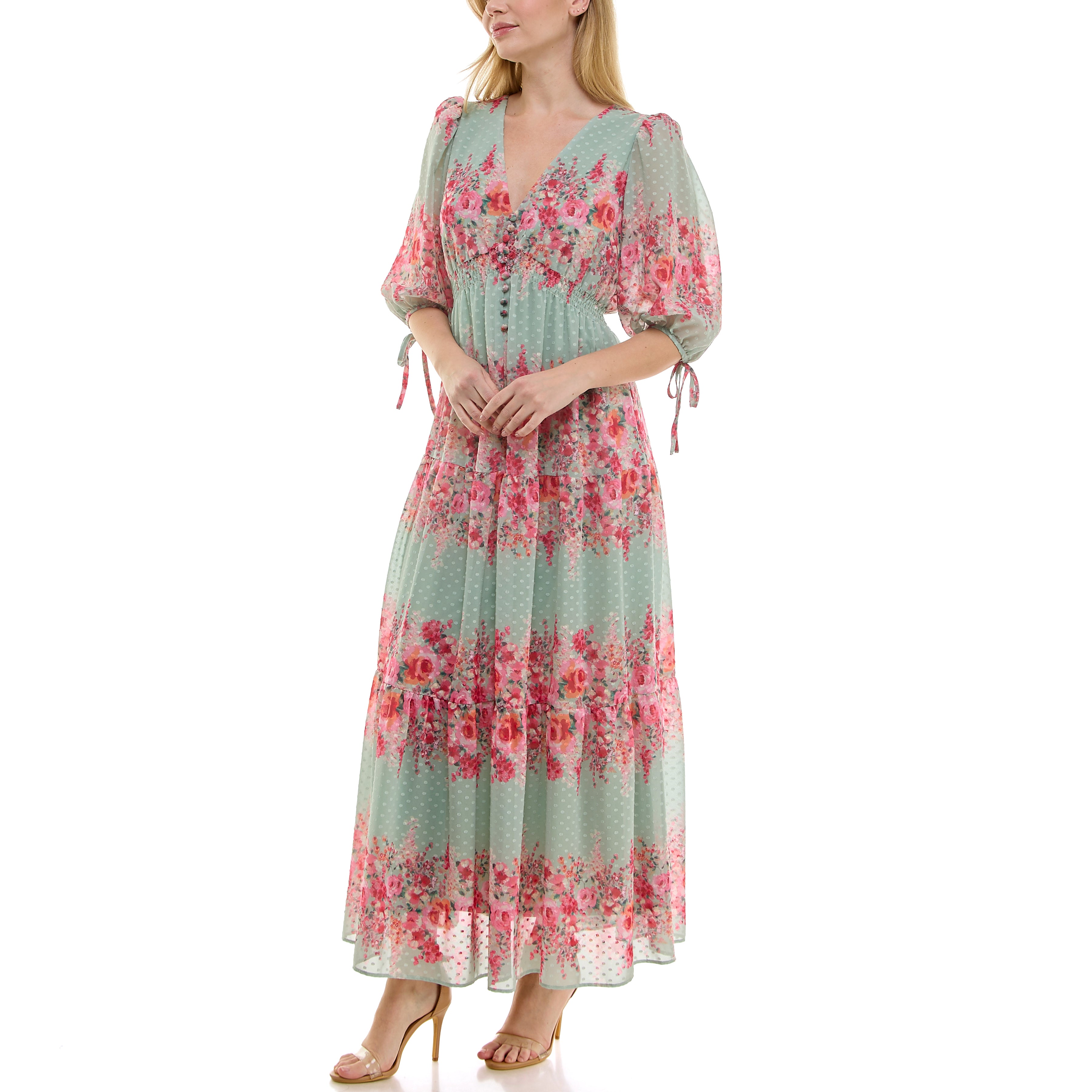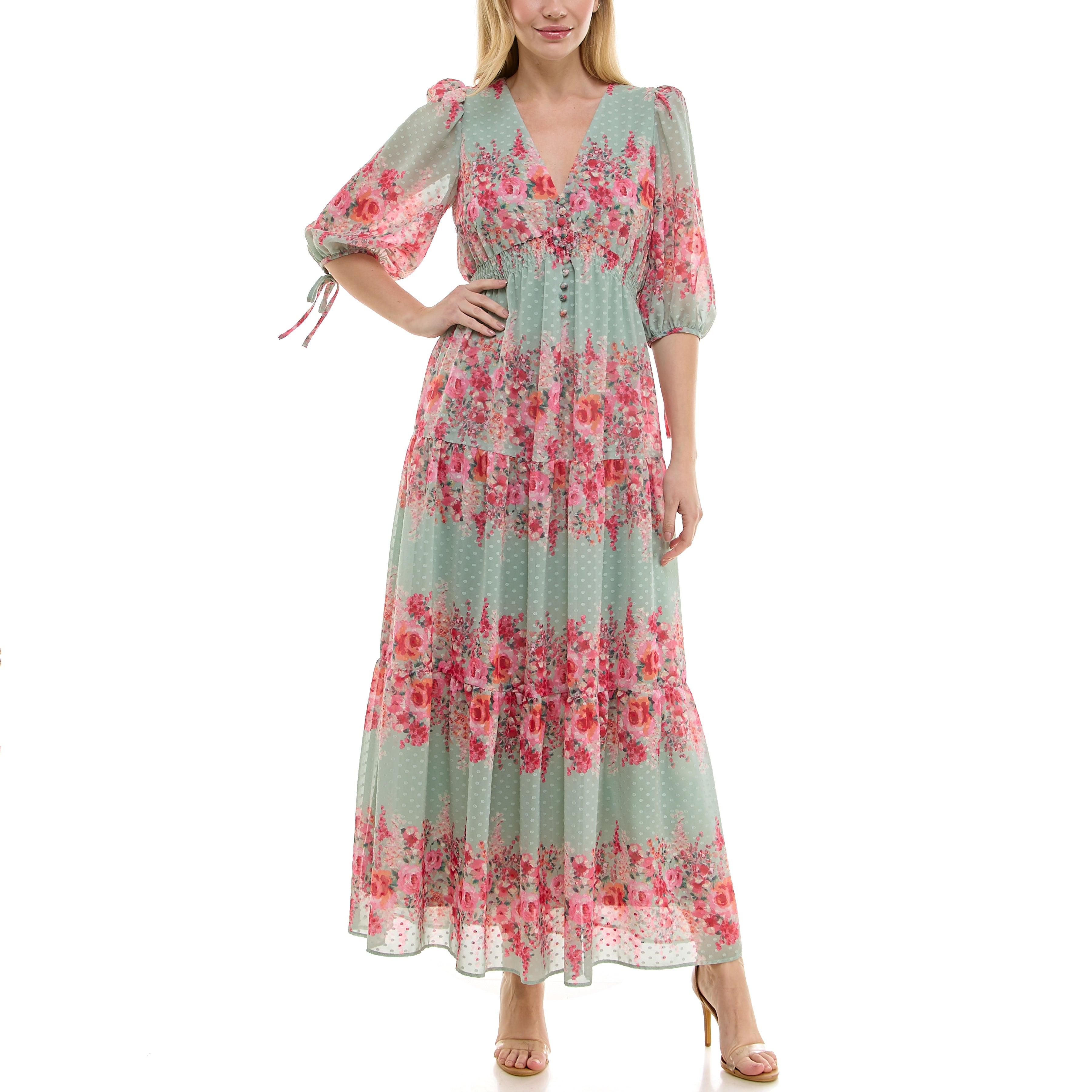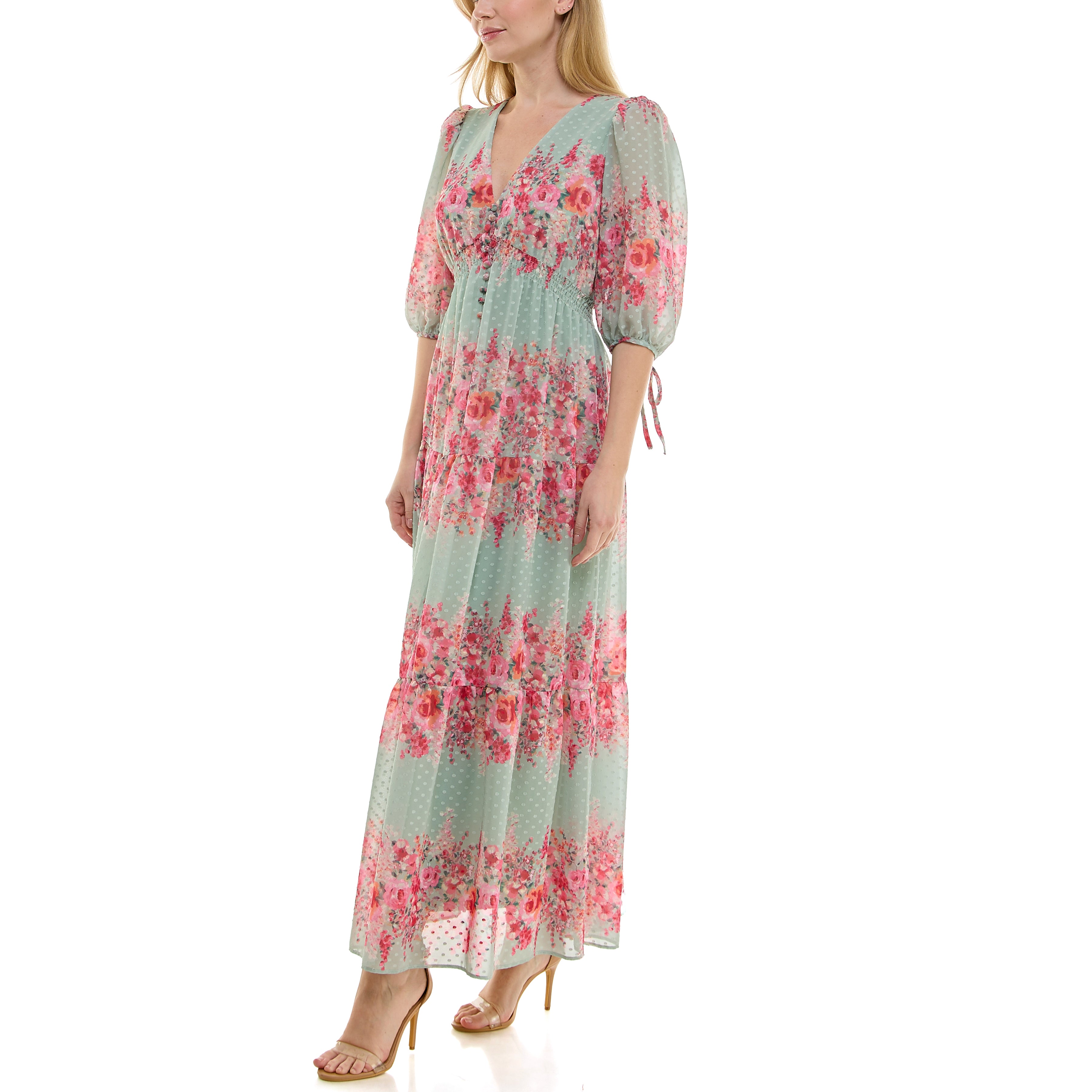 TAYLOR SMOCK WAIST FLORAL PRINT CHIFFON MAXI DRESS