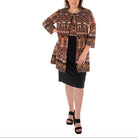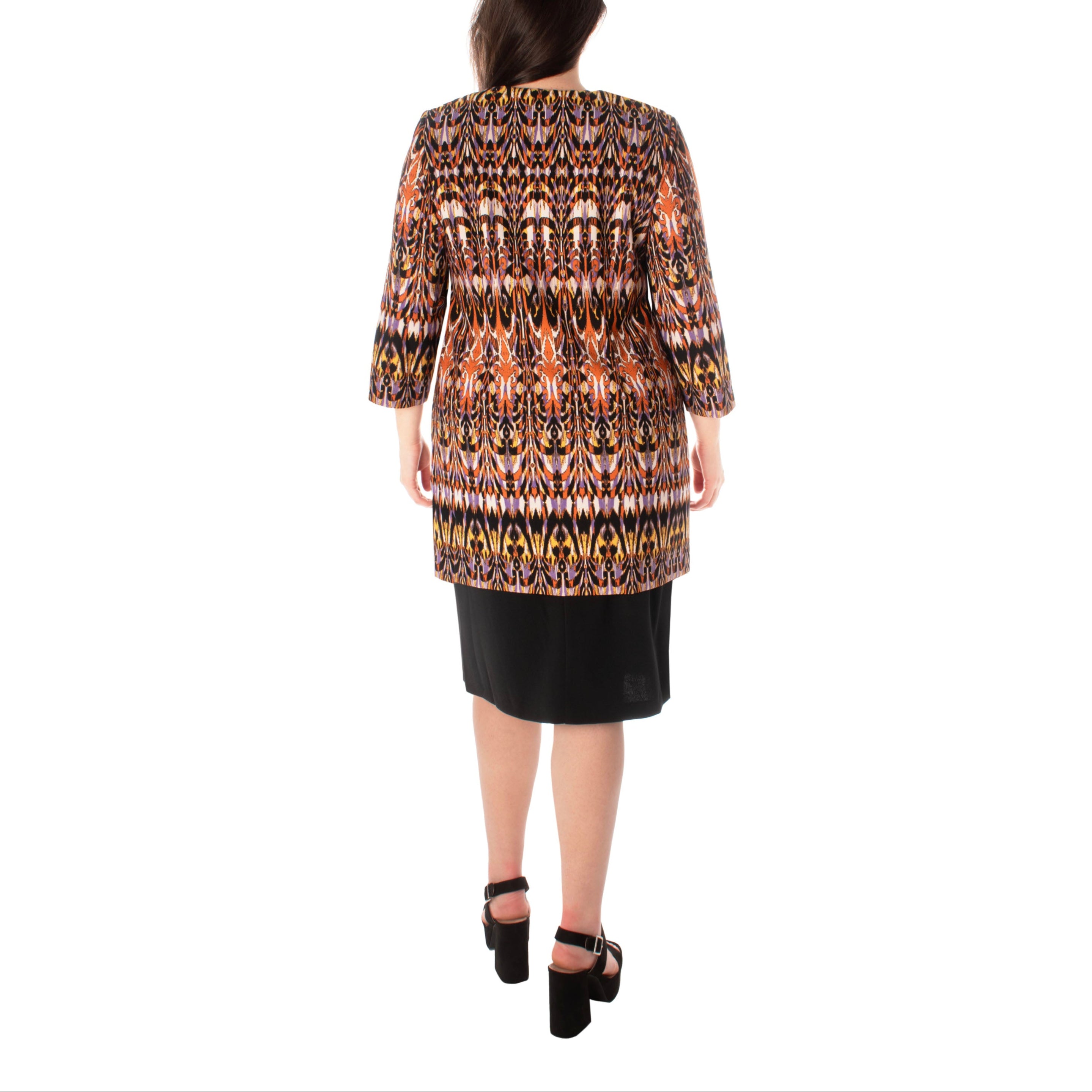 DANNY & NICOLE ONE BUTTON MULTICOLOR KALEIDOSCOPE PATTERN CURVE JACKET DRESS SET