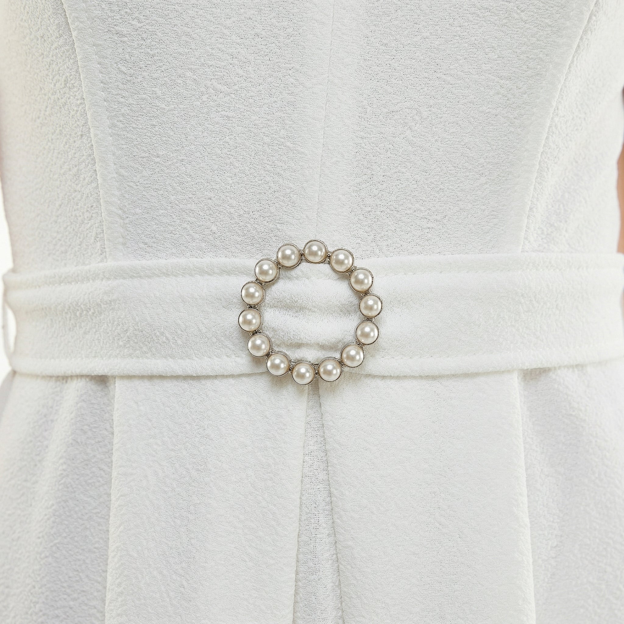 IVORY V-NECK MINI DRESS – CAP SLEEVE A-LINE BELTED PEARL BUCKLE ELEGANT DRESS