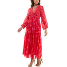 TAYLOR LONG SLEEVE V-NECK TIERED FLORAL PRINT CURVE MAXI DRESS WITH POCKETS