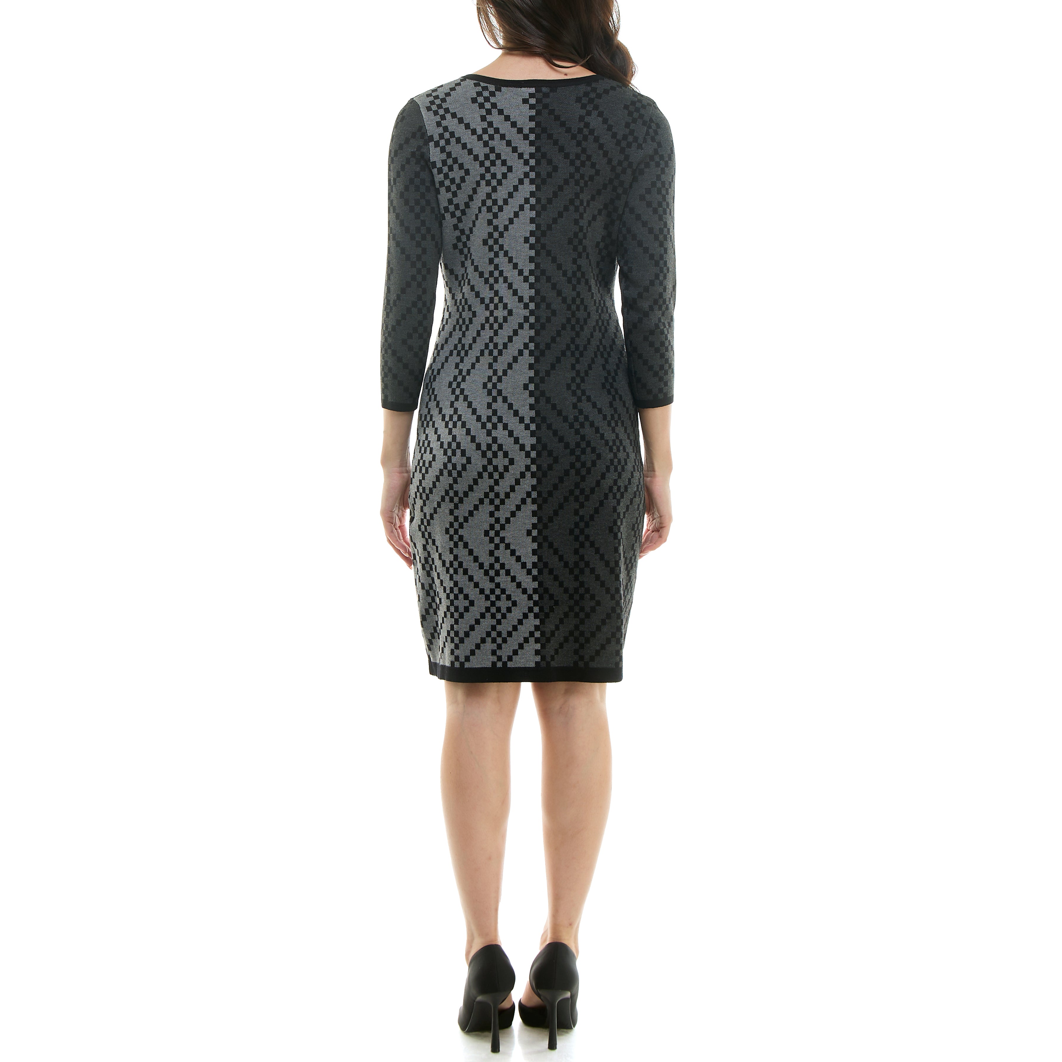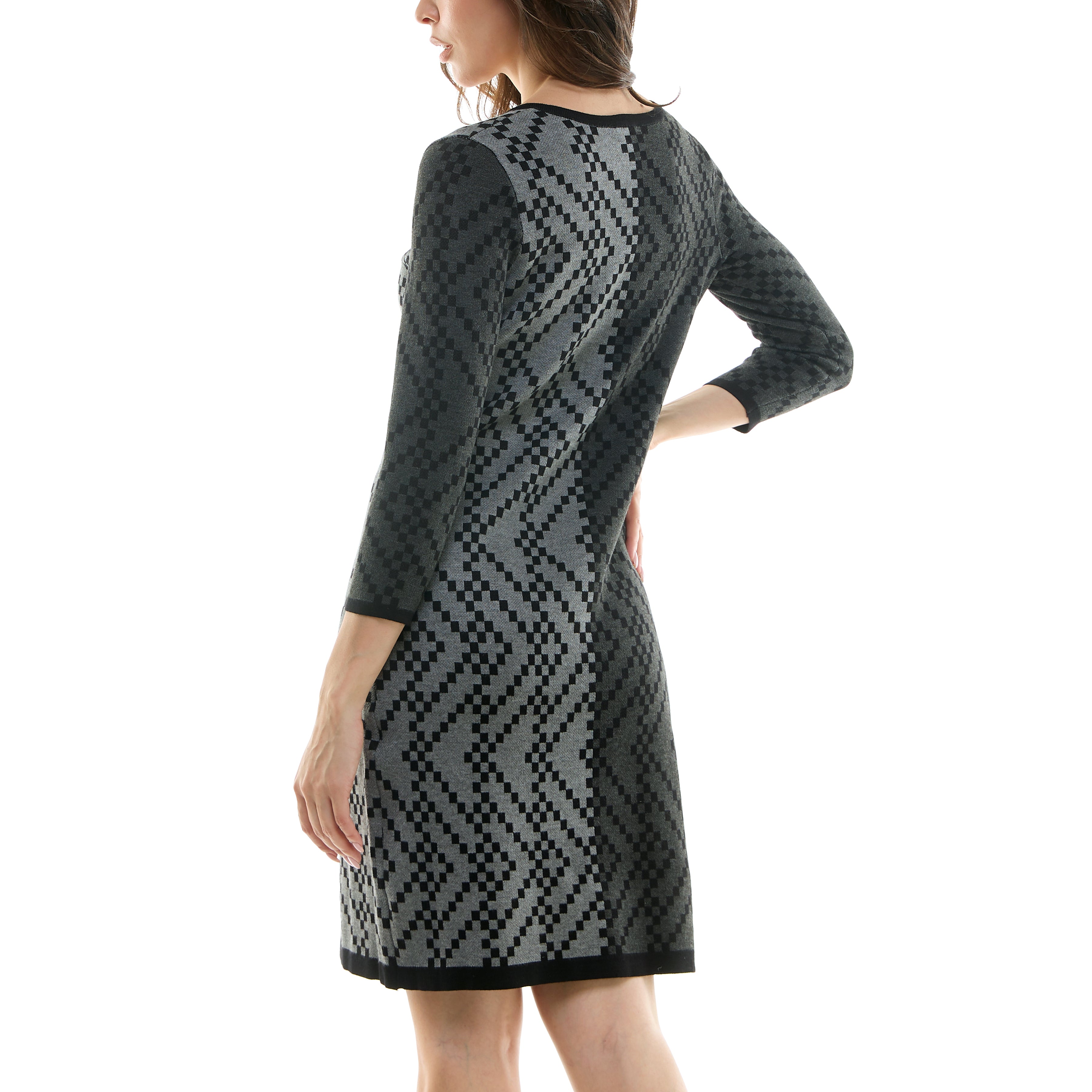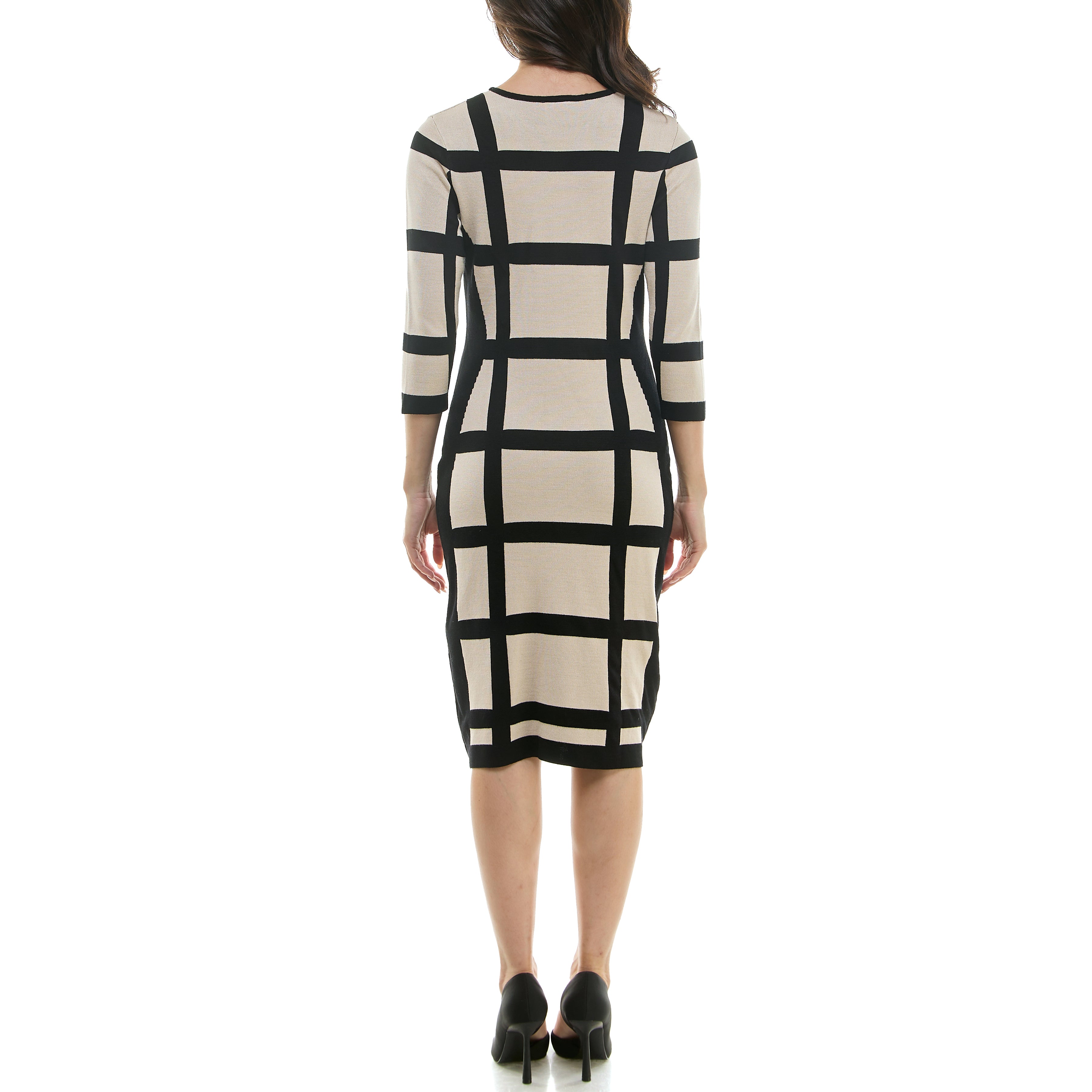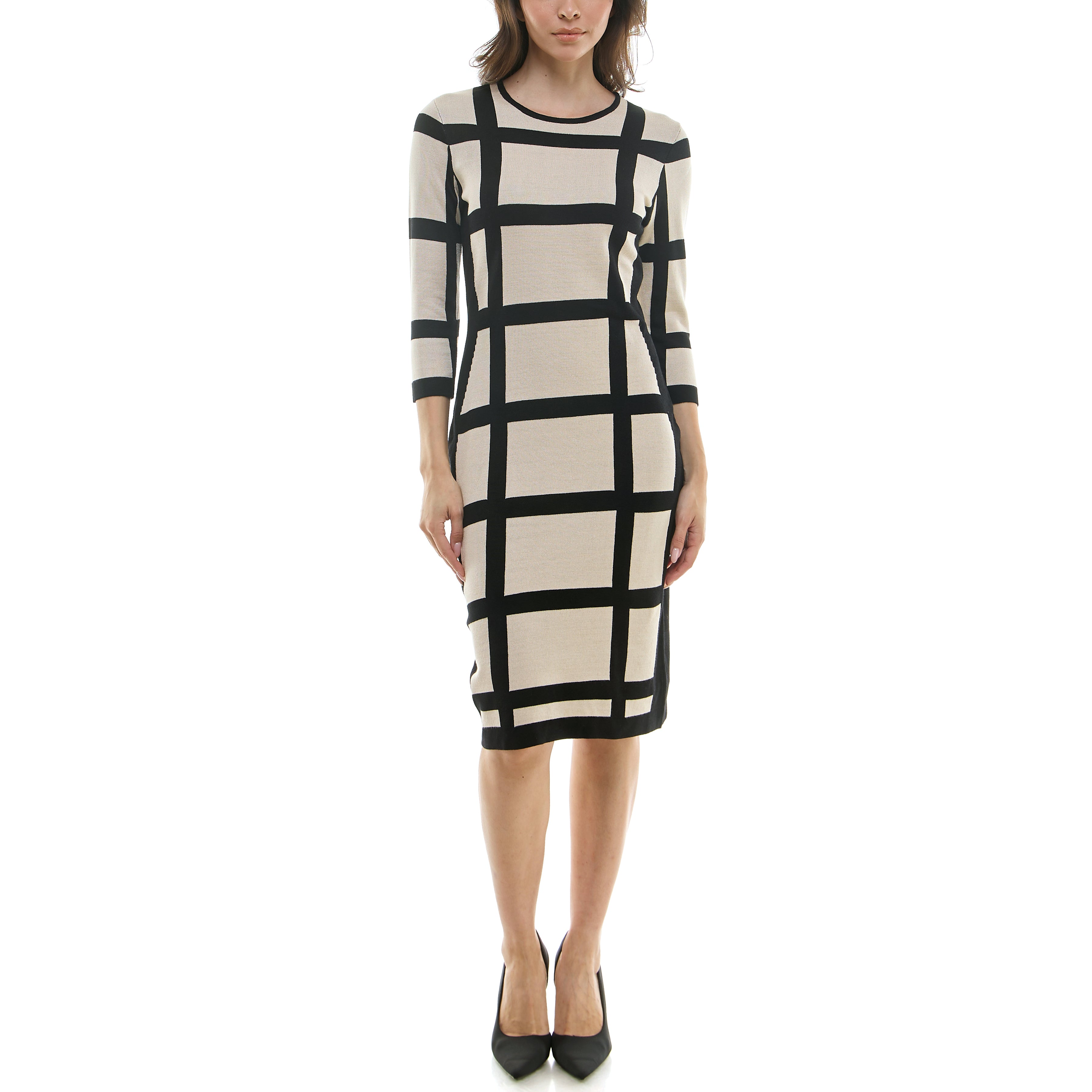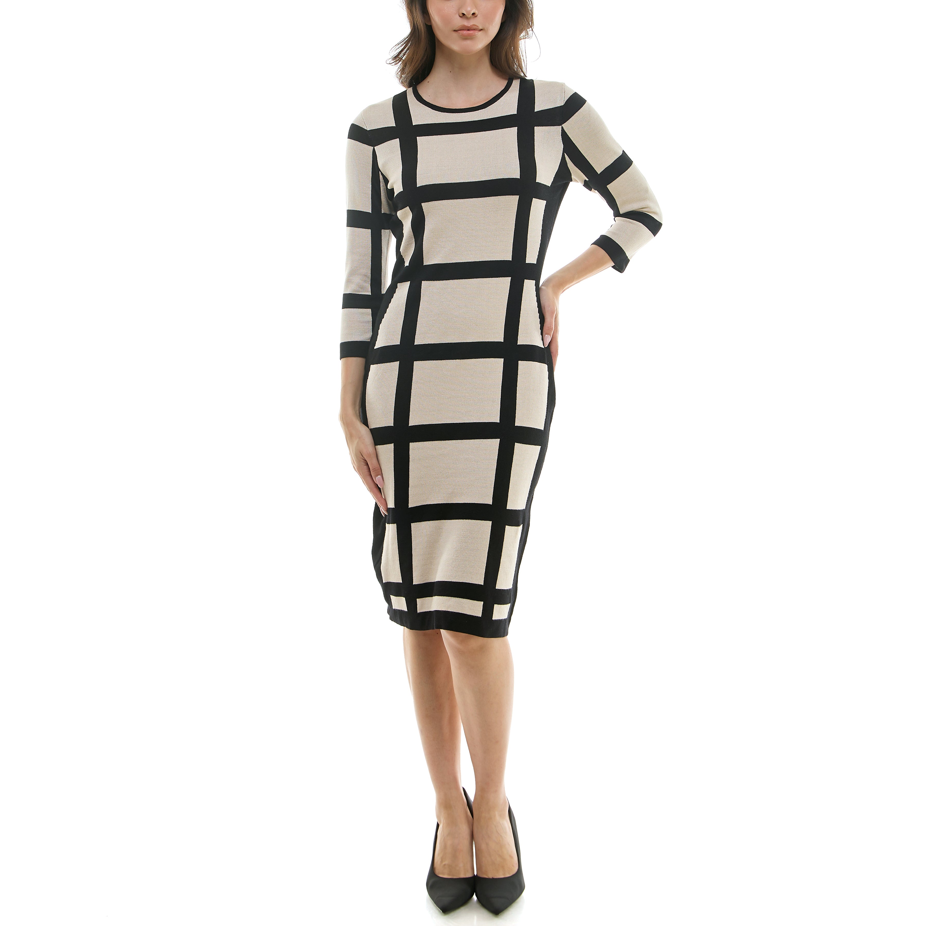 MAISON TARA WINDOWPANE PRINT MIDI SWEATER DRESS