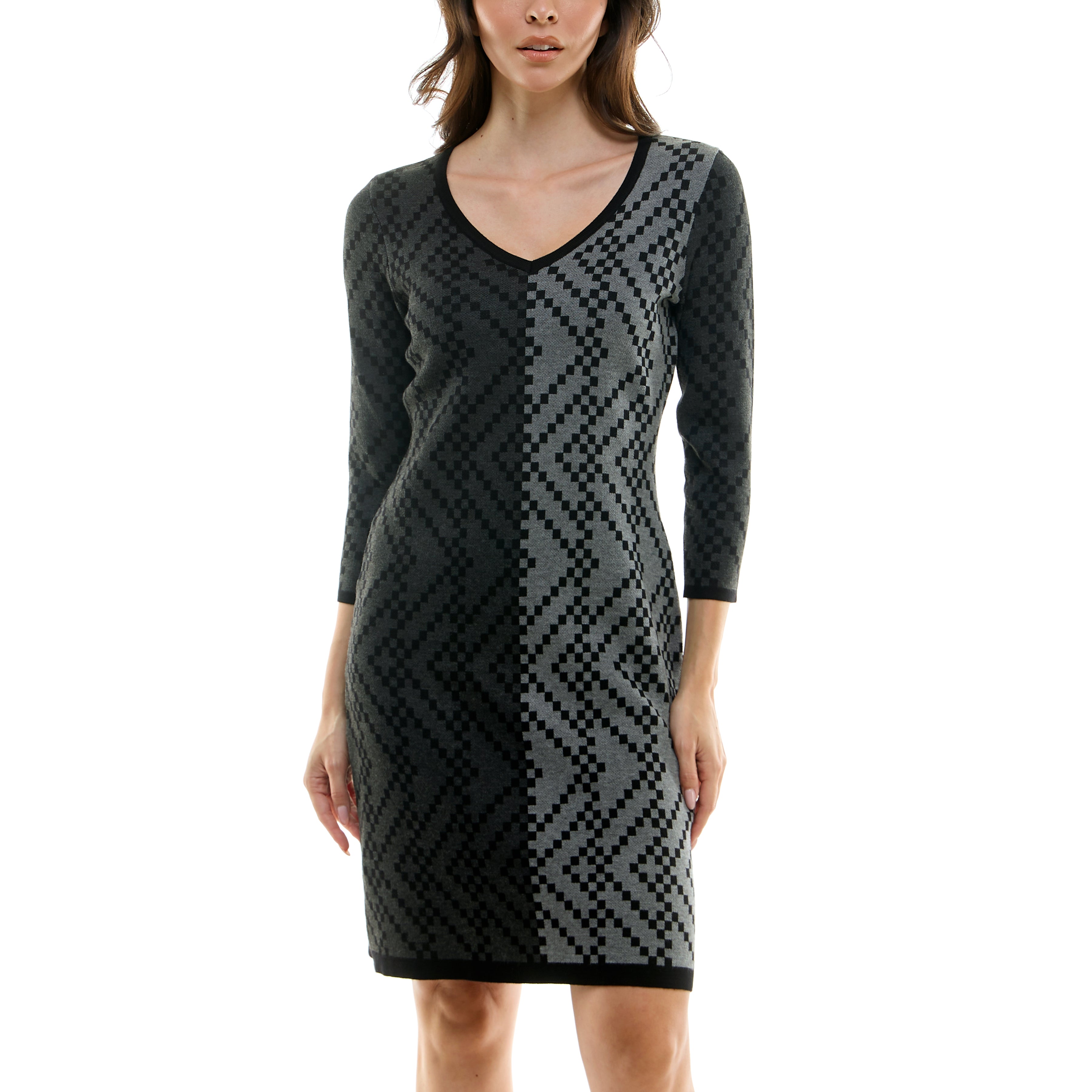 MAISON TARA TWO TONE CHEVRON PRINT MINI SWEATER DRESS
