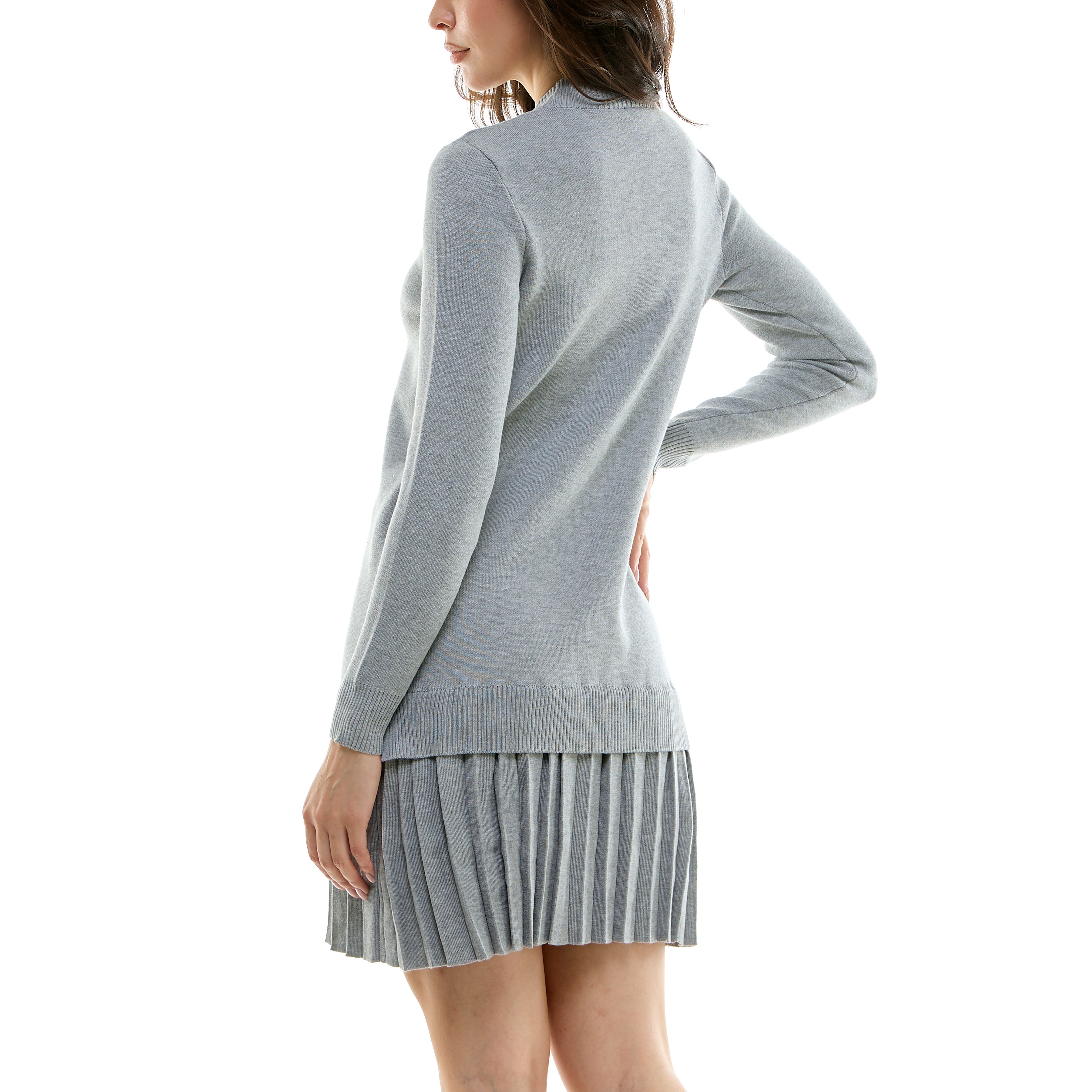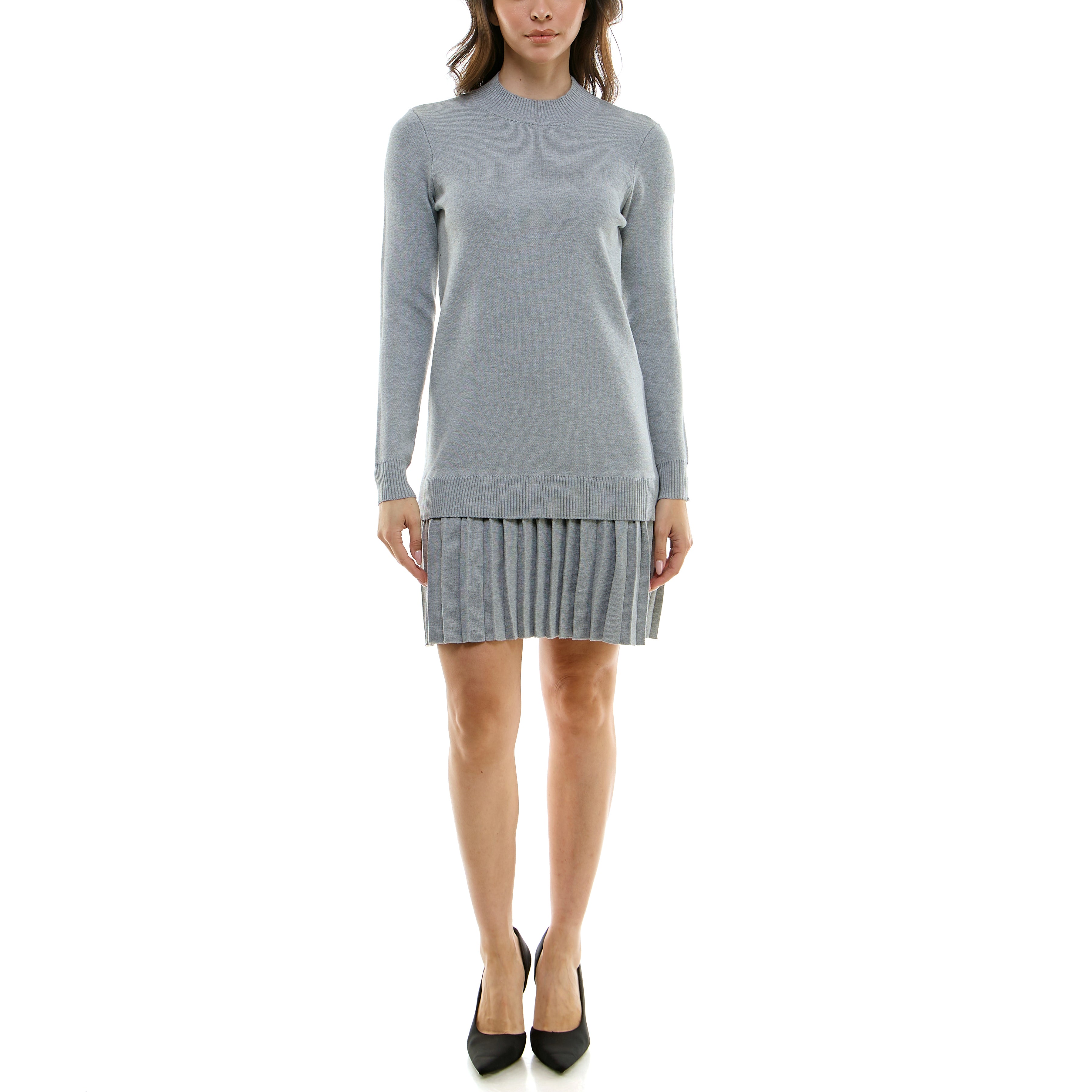 MAISON TARA TWO PIECE PLEATED KNIT TUNIC MINI SKATER DRESS