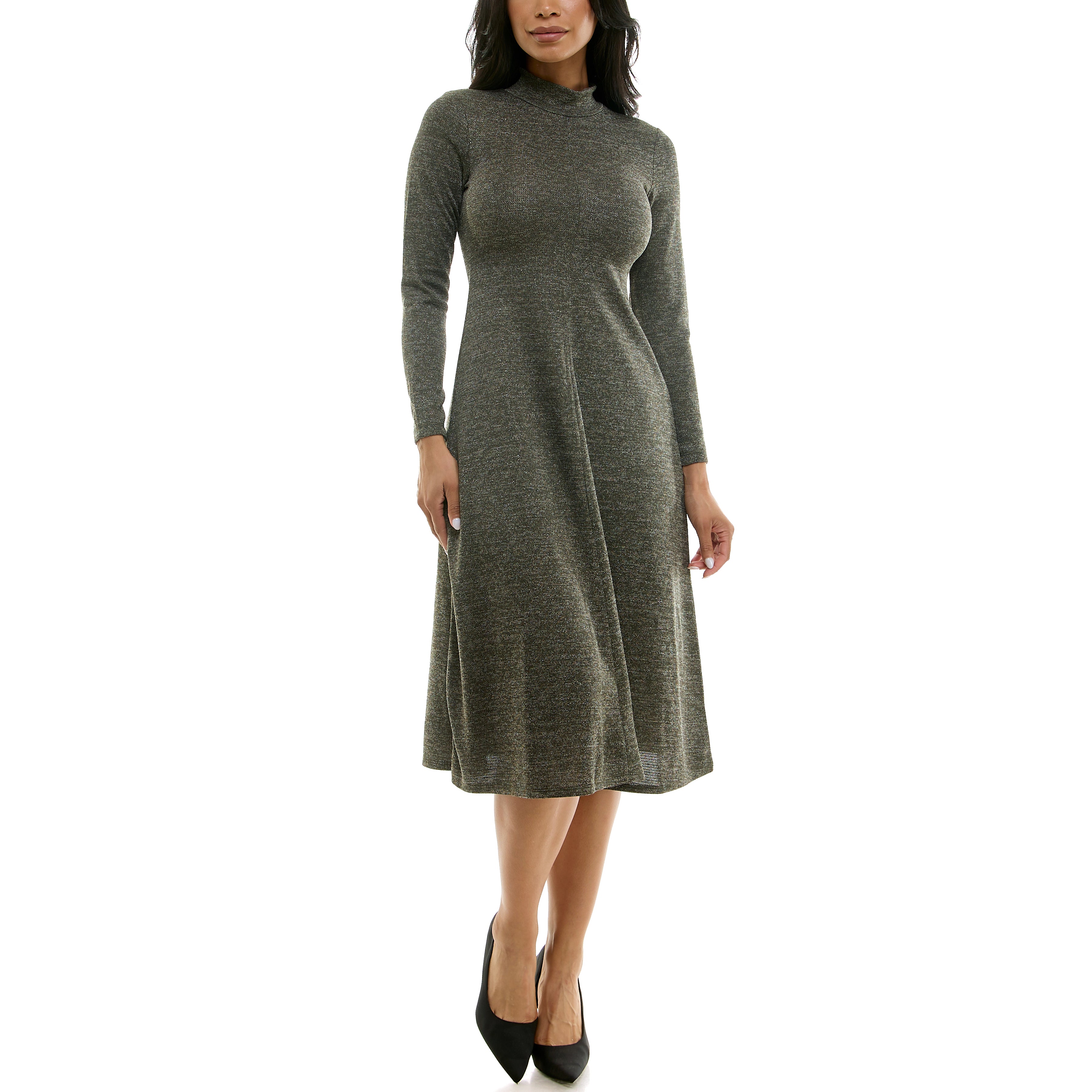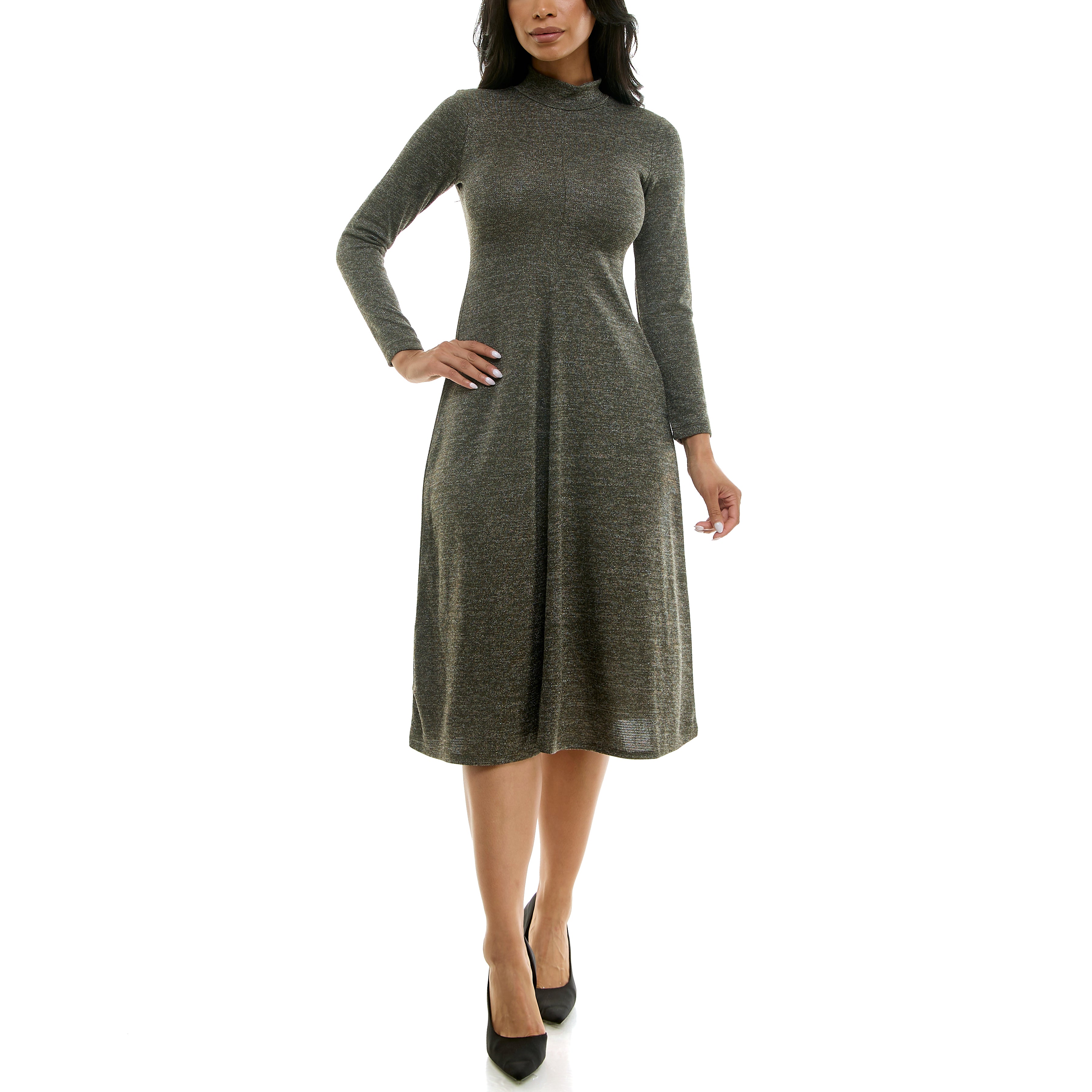 MAISON TARA MOCK NECK SPARKLING PASHMINA MIDI SWEATER DRESS