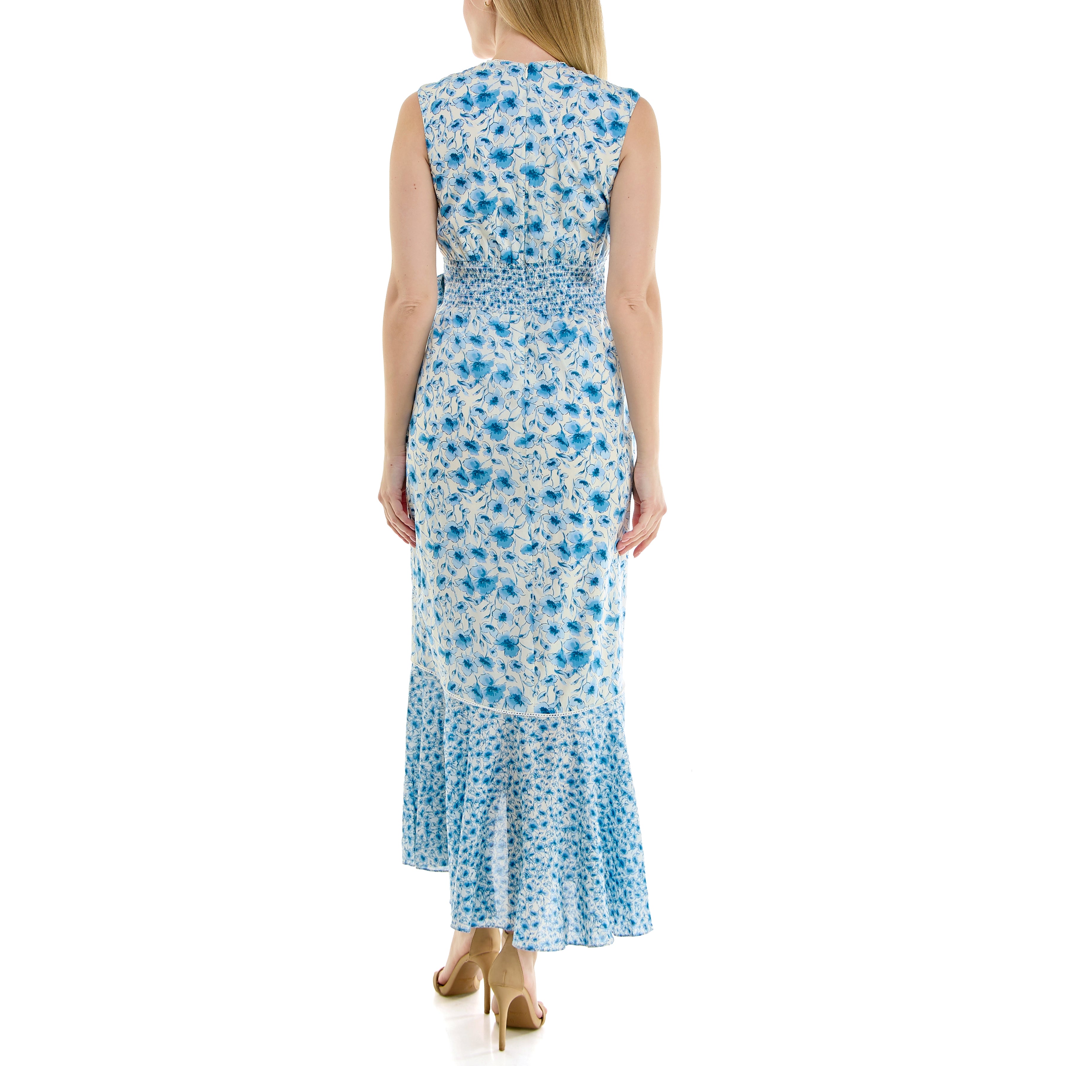 MAISON TARA SLEEVELESS MIXED BLUEBELL PRINT WRAP MAXI DRESS