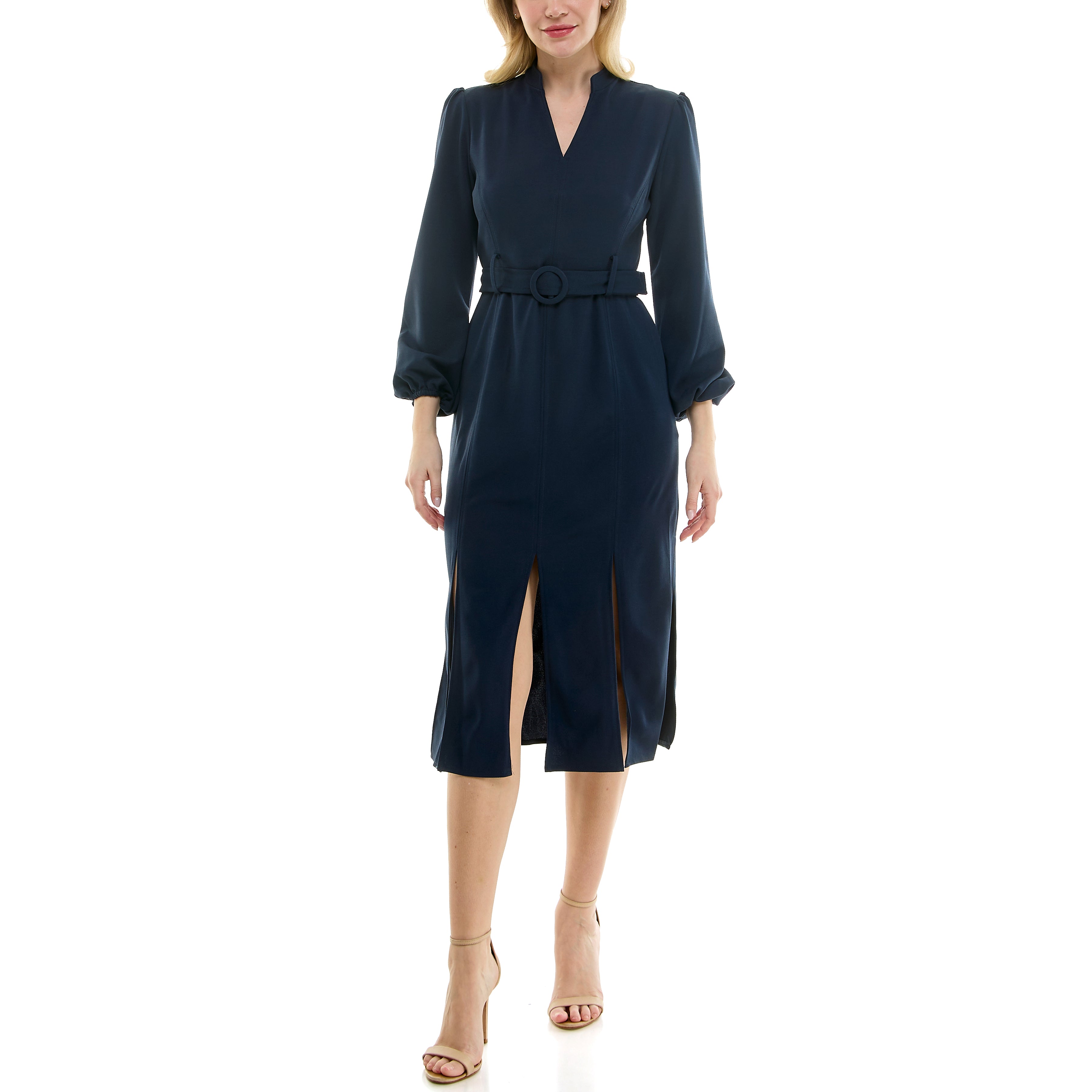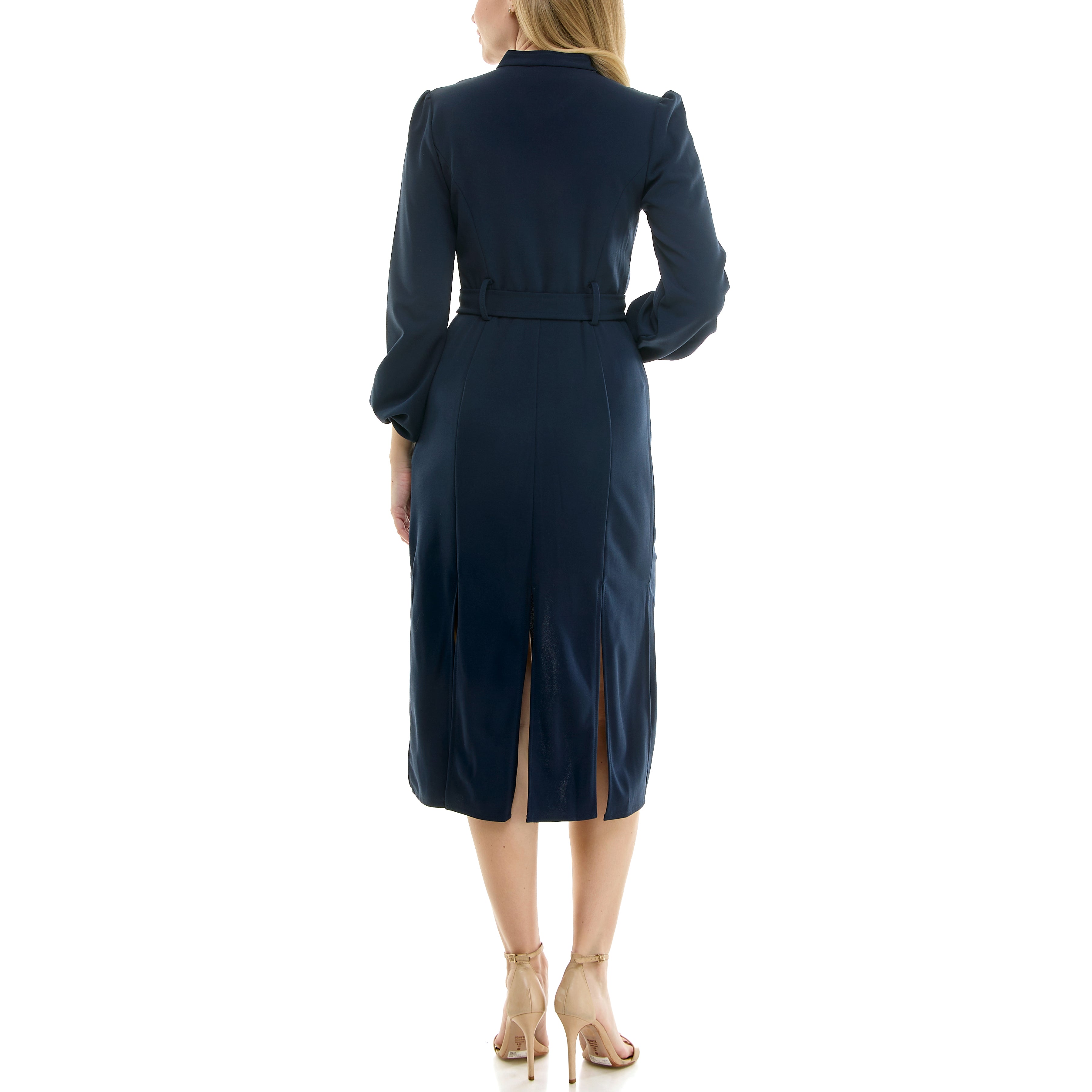 MAISON TARA BELTED CREPE CARWASH HEM MIDI DRESS