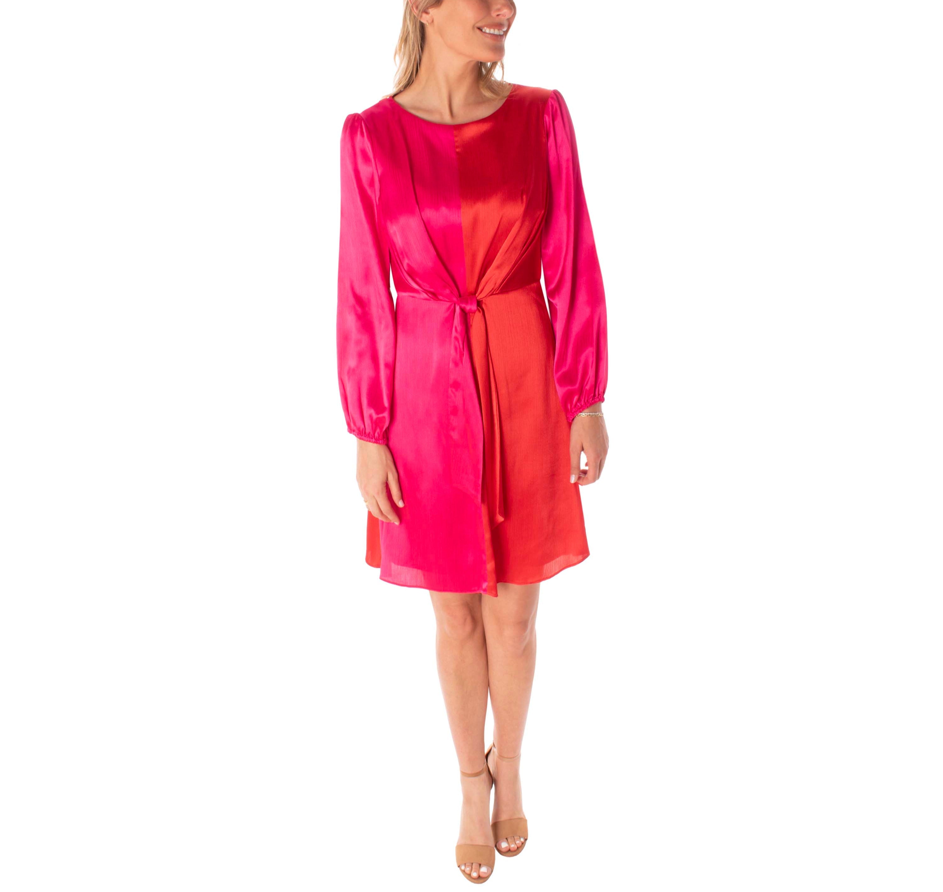 MAISON TARA SATIN COLOR BLOCK GATHERED WAIST MIDI DRESS