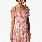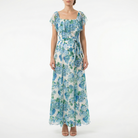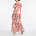 Floral Flutter Sleeve Maxi Dress with Ruffle Bodice and Tie Waist